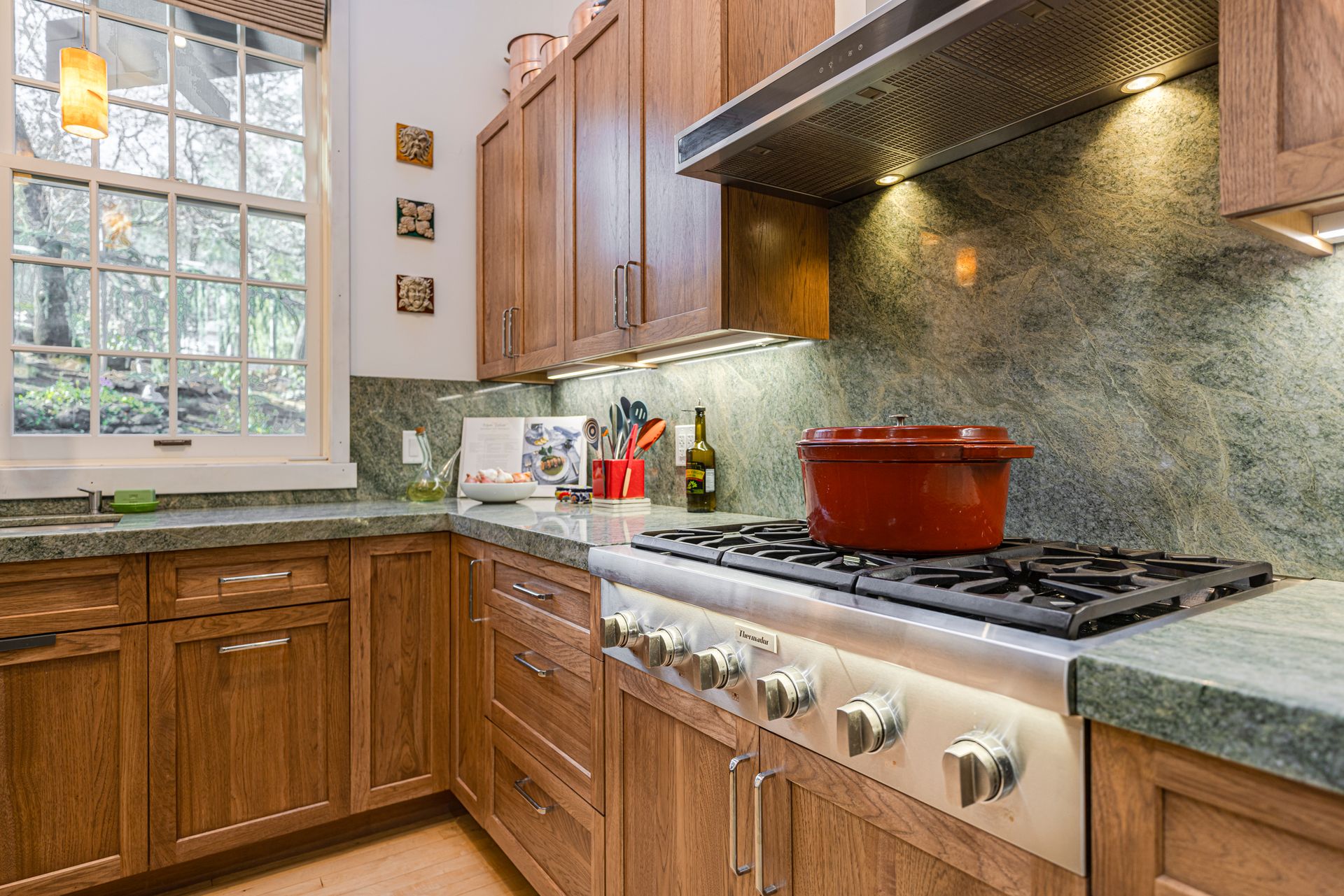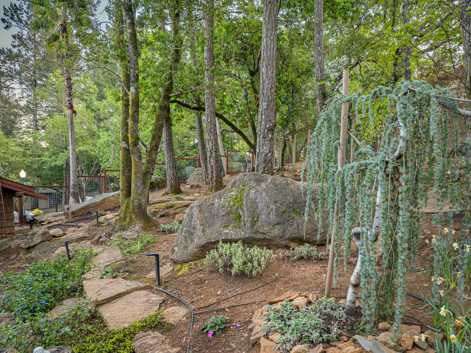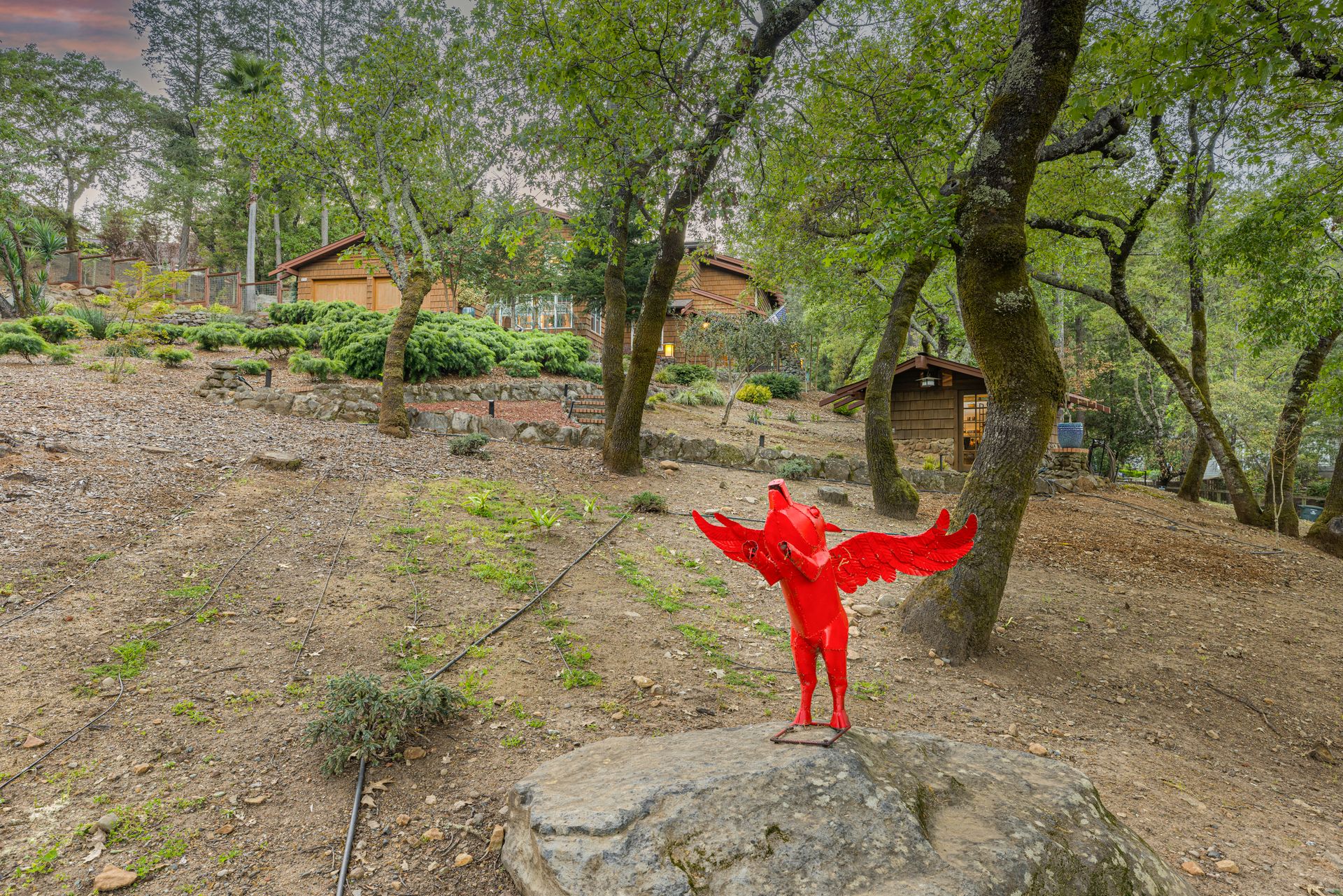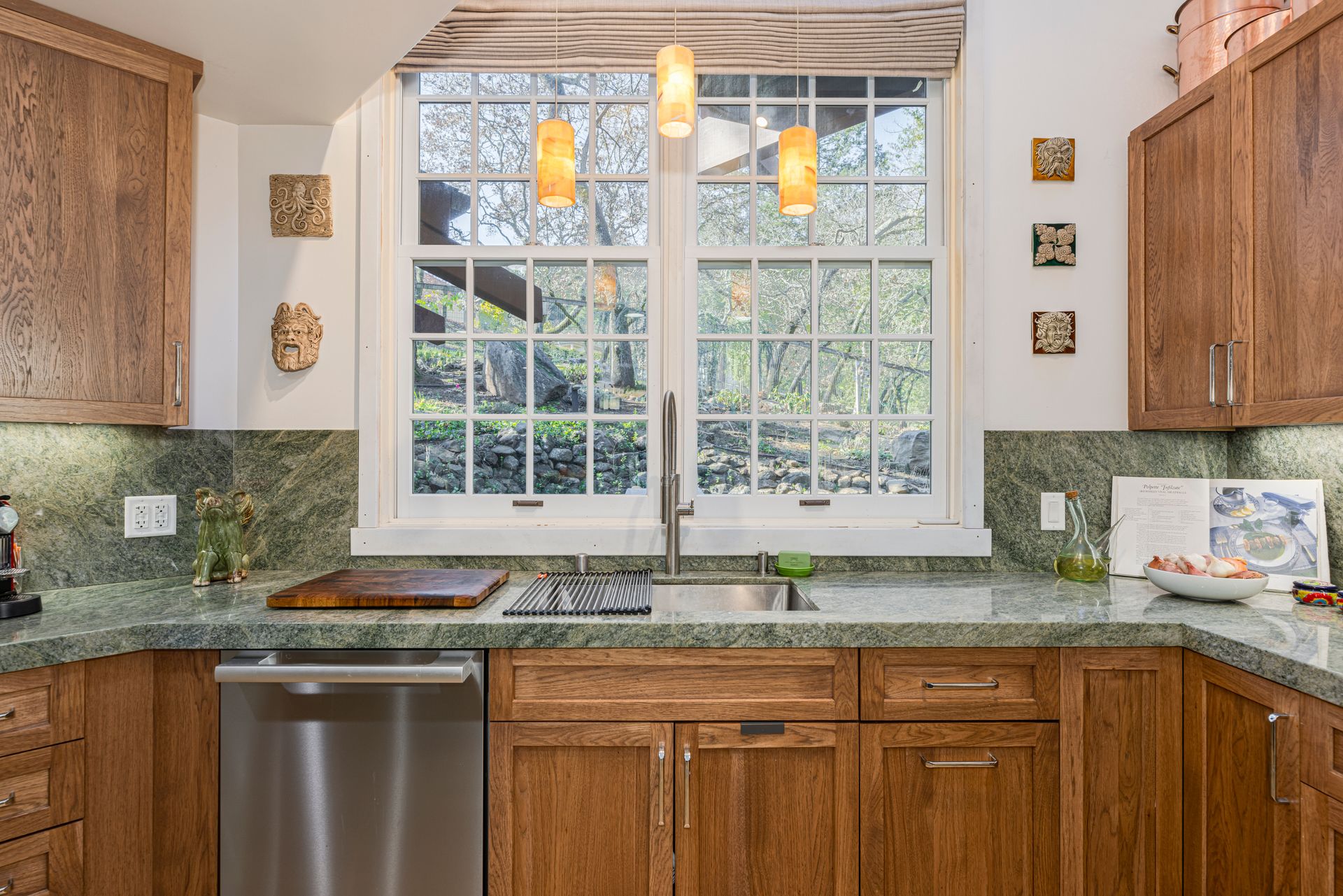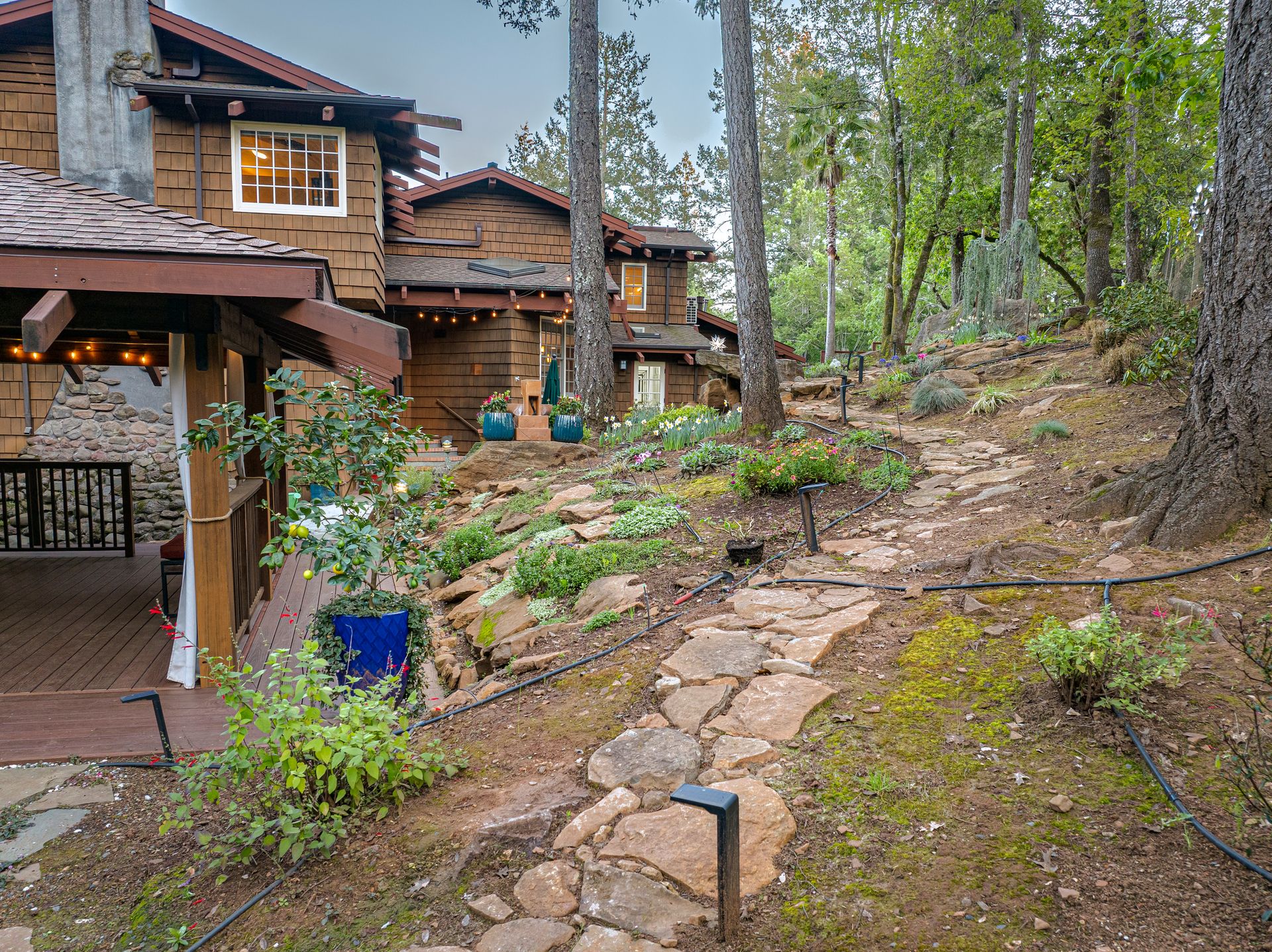 Nestled in Brush Creek’s Woodside Hills neighborhood, this timeless masterpiece is architecturally captivating and flooded w/natural light. Originally designed/built by a local architect, this home exudes quality craftsmanship and handsome woodwork w/custom themes. The artful interior is wrapped in peaceful surroundings w/3 bedrooms/3 full baths and 3,410 sq ft of living space. This stunning home includes a separate office cottage, renovated laundry room w/storage, high-end appliances, newer A/C/heating/owned solar system. Designed for entertaining, the inviting floor plan features a formal entry w/tile floor inlays that complement hardwood floors w/adjacent study/library. The renovated gourmet chef kitchen features high-end appliances: Thermador 6-burner gas cooktop w/stunning Italian Bertazzoni hood, custom cabinets w/soft pulls, two upper cabinets featuring glass w/copper inlays, wine cooler, Quartz counters, island w/storage drawers w/wood columns and bar seating. Complementing this impressive design is a wood-burning HearthStone stove w/brick tile floors, oversized windows above the sink w/pendant lighting and picturesque views of the forest-like backyard. Adjacent to the kitchen is a living area for relaxation w/built-in cabinets. The gorgeous living room features a tile-surround fireplace, concrete flooring, beautiful accent tiles and built-in cabinets lend a sense of elegance and comfort. French doors in the living room open to a balcony and give access to the back patio/garden. The mature landscape features irrigation, citrus trees, deer fences, stone/slate walkways w/lighting, fountain and 20’x20’ pergola w/hot tub. Enjoy outdoor entertainment in the tranquil park-like setting offered by this once-in-a-lifetime legacy property. This artfully crafted home is conveniently located near Oliver’s Market, Montgomery Village shopping, parks and schools. Enjoy the relaxing lifestyle and natural beauty that a stunning Sonoma County wine country residence provides!