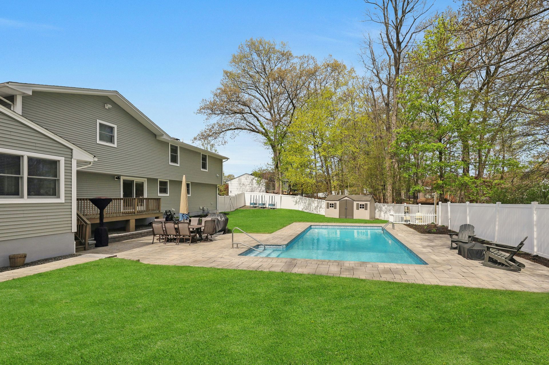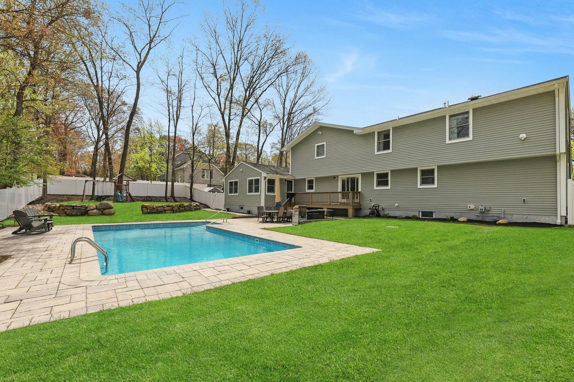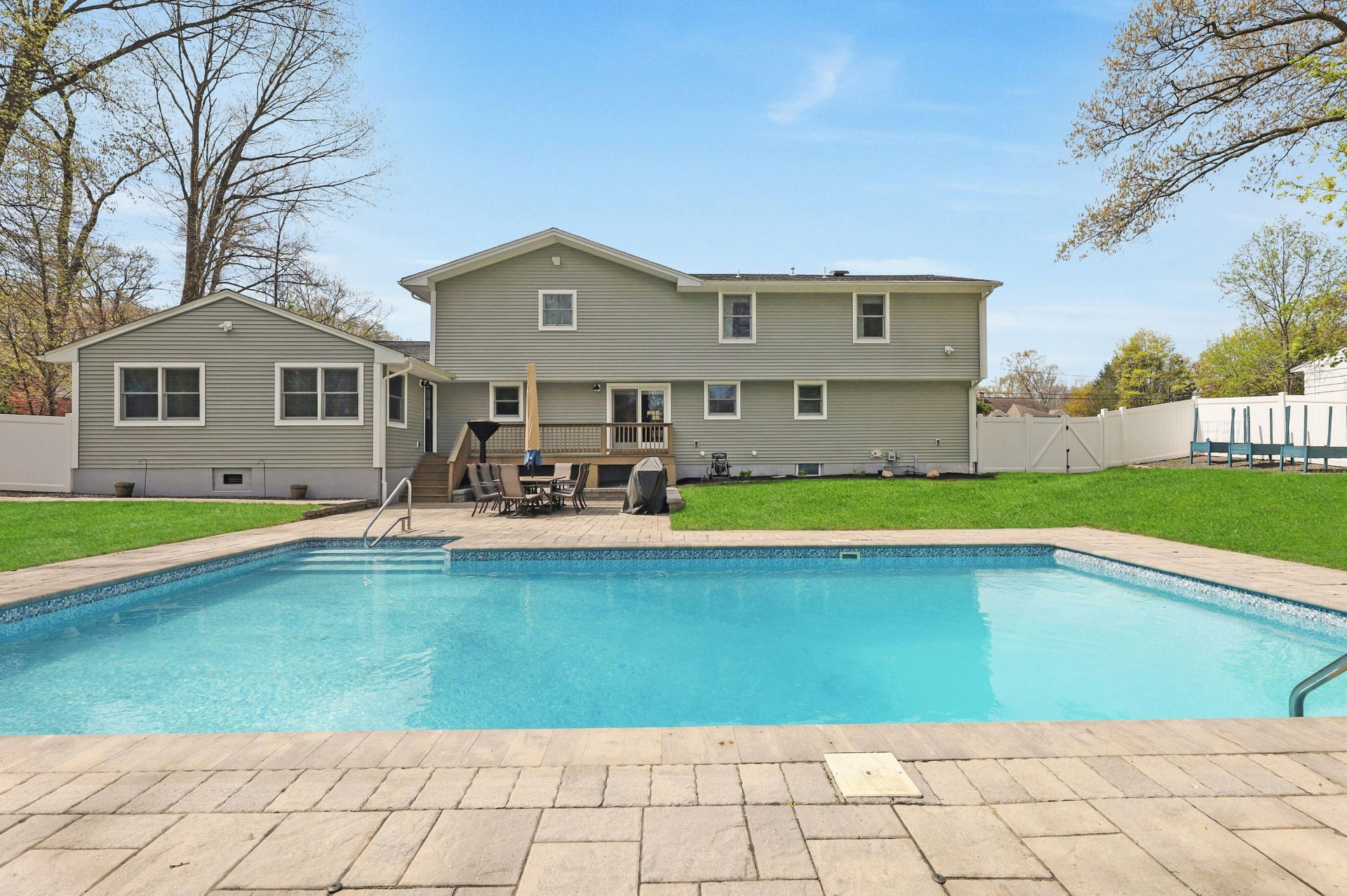 Welcome to your dream home! This recently renovated five-bedroom, three and one half-bath residence blends modern elegance with comfortable living. Step inside to discover a spacious layout that invites warmth and togetherness. The large kitchen, complete with a beautiful island, is perfect for both culinary adventures and casual gatherings with guests. Imagine hosting summer barbecues or relaxing evenings by the inground pool, which is nestled alongside a charming patio, ideal for outdoor entertaining or peaceful afternoons soaking in the sun. Convenience is key in this home, highlighted by a generously sized mudroom and laundry area featuring a pocket door, providing an organized and functional space right on the first floor. With two primary suites, this home offers flexibility and comfort, accommodating guests with ease. Central air ensures you stay cool throughout those warm summer months, while the expansive two-car garage offers plenty of room for vehicles and storage. The full, partially finished basement presents endless possibilities, whether you envision a home gym, game room, or extra storage space—let your imagination run wild! This property truly embodies the perfect blend of style, comfort and practicality. Don’t miss your chance to make this stunning home your own!
