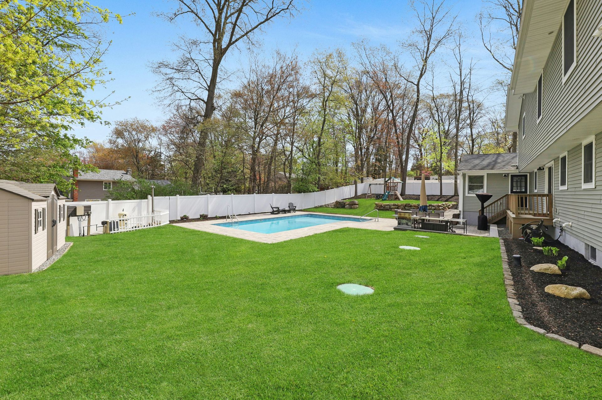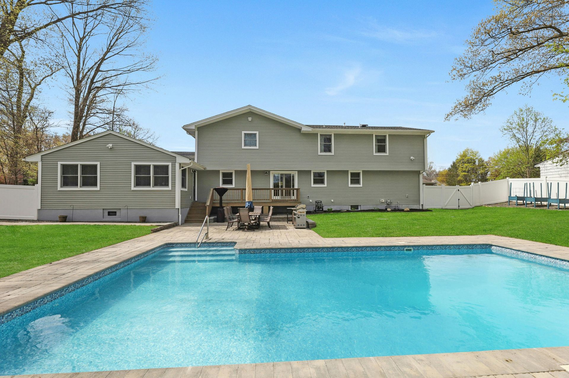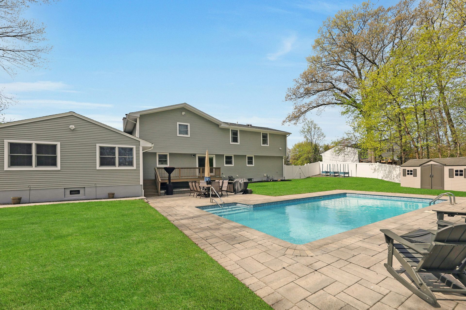 Welcome to your dream home! This recently renovated five-bedroom, three and one half-bath residence blends modern elegance with comfortable living. Step inside to discover a spacious layout that invites warmth and togetherness. The large kitchen, complete with a beautiful island, is perfect for both culinary adventures and casual gatherings with guests. Imagine hosting summer barbecues or relaxing evenings by the inground pool, which is nestled alongside a charming patio, ideal for outdoor entertaining or peaceful afternoons soaking in the sun. Convenience is key in this home, highlighted by a generously sized mudroom and laundry area featuring a pocket door, providing an organized and functional space right on the first floor. With two primary suites, this home offers flexibility and comfort, accommodating guests with ease. Central air ensures you stay cool throughout those warm summer months, while the expansive two-car garage offers plenty of room for vehicles and storage. The full, partially finished basement presents endless possibilities, whether you envision a home gym, game room, or extra storage space—let your imagination run wild! This property truly embodies the perfect blend of style, comfort and practicality. Don’t miss your chance to make this stunning home your own!