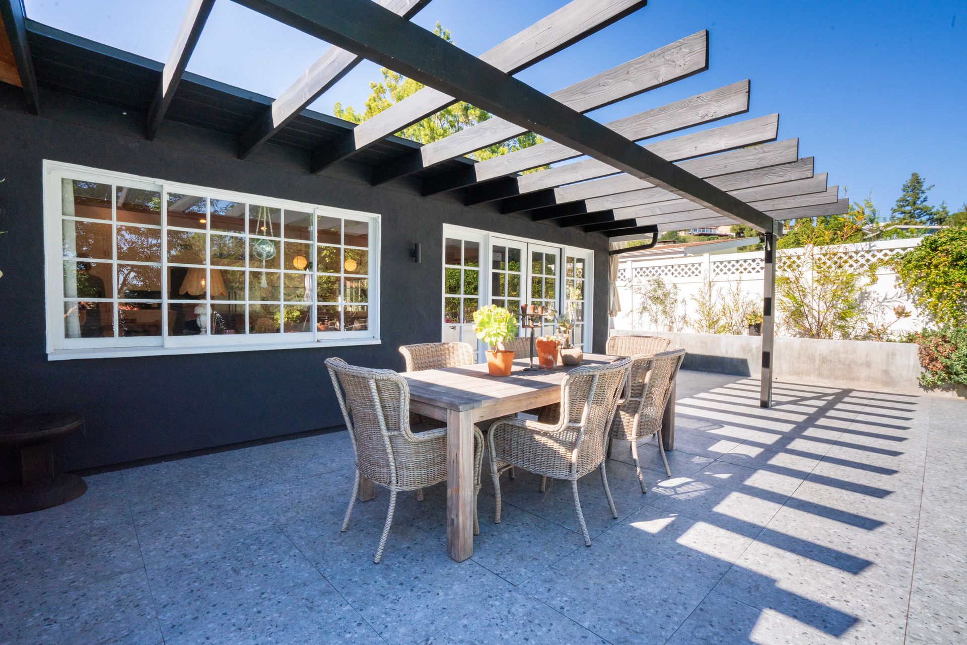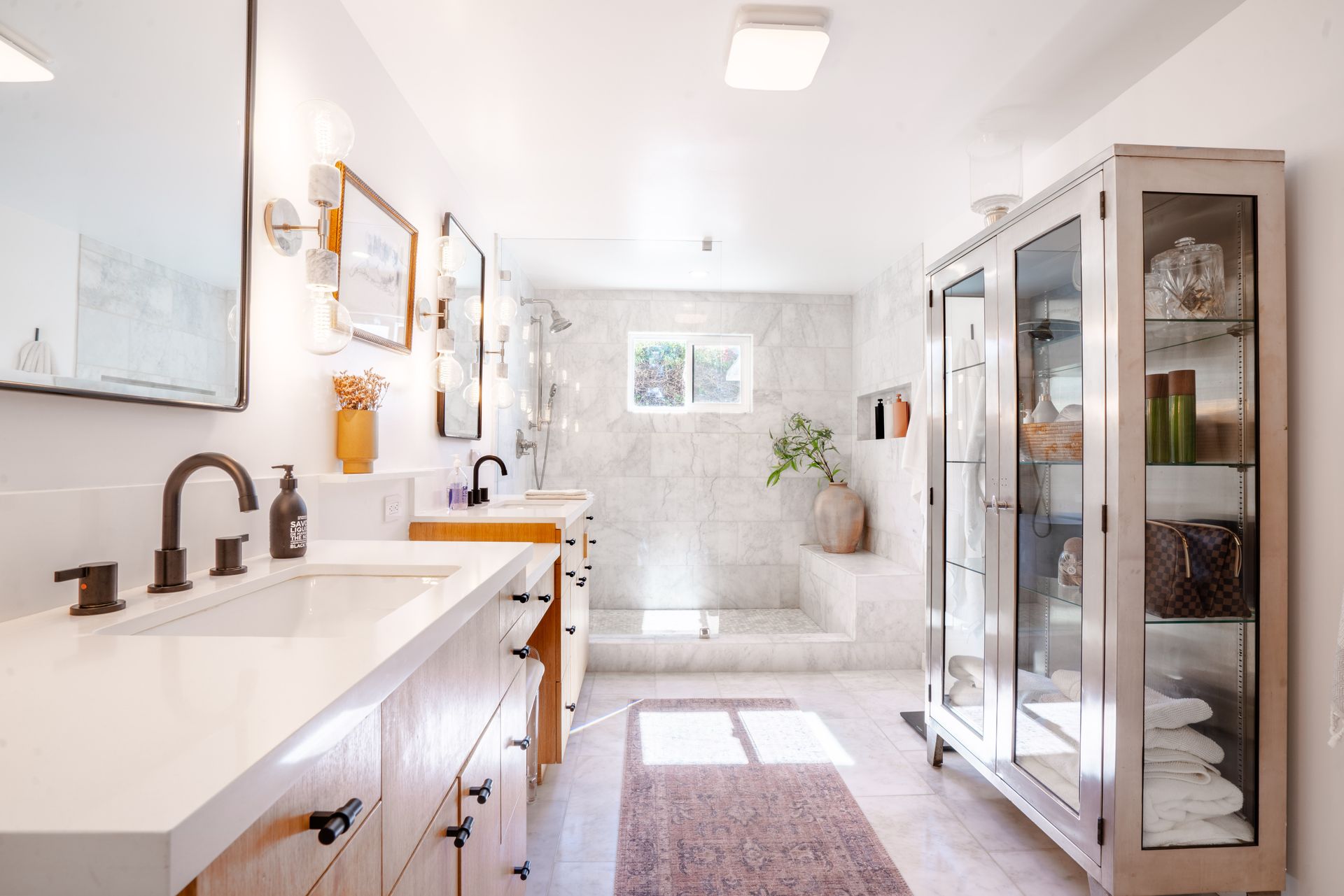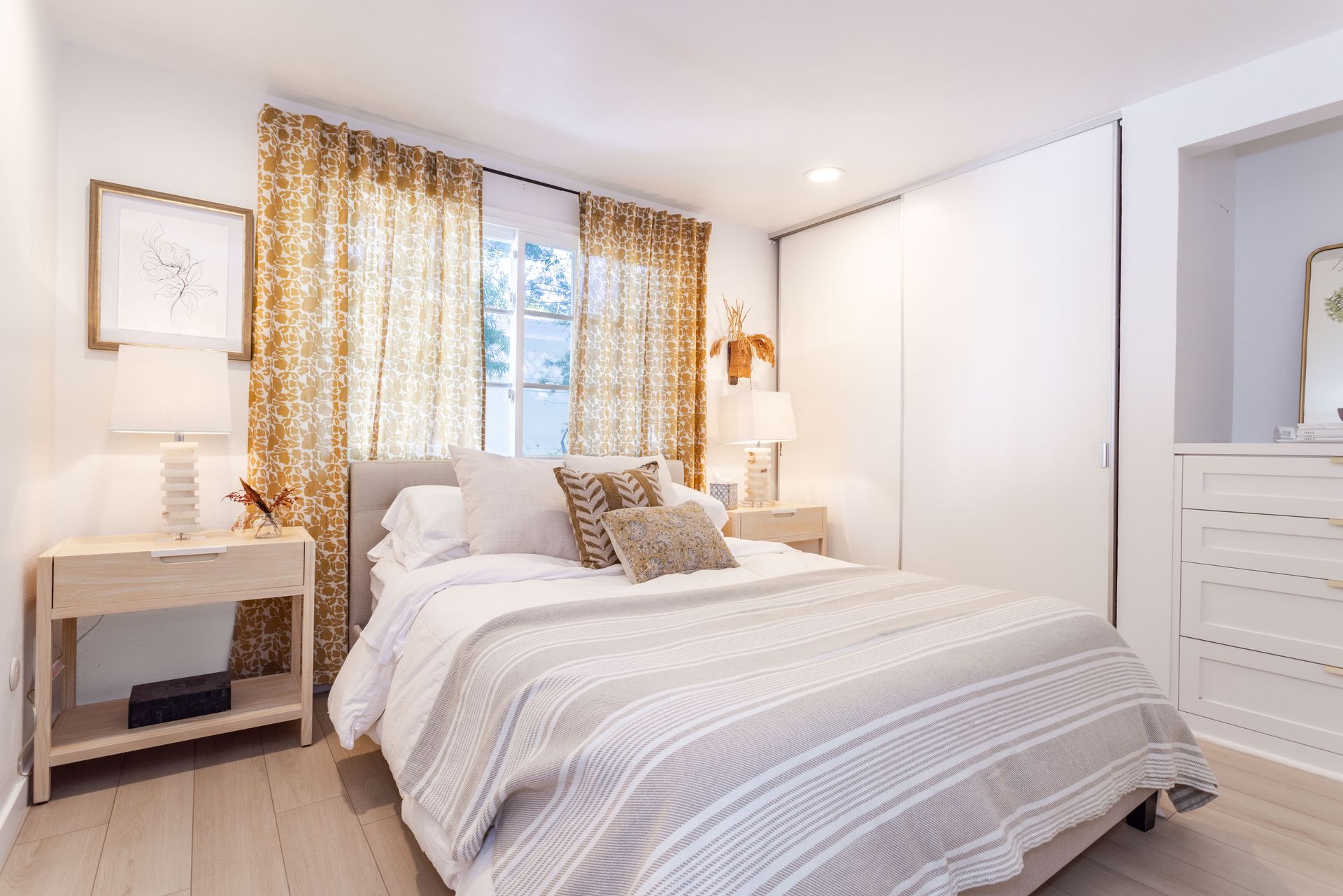 Stunning Mid-Century one-story ranch seamlessly blends timeless charm with modern elegance. This is an interior designer’s home; every detail of this home has been carefully curated for style and functionality. A beautifully landscaped front yard sets a serene tone as you approach this approximately 3,080-square-foot home, situated on an expansive almost 11,286-square-foot lot. Offering five bedrooms and four bathrooms, the layout is both spacious and versatile. The fifth bedroom and bath are apart from the others, making it ideal for guests.