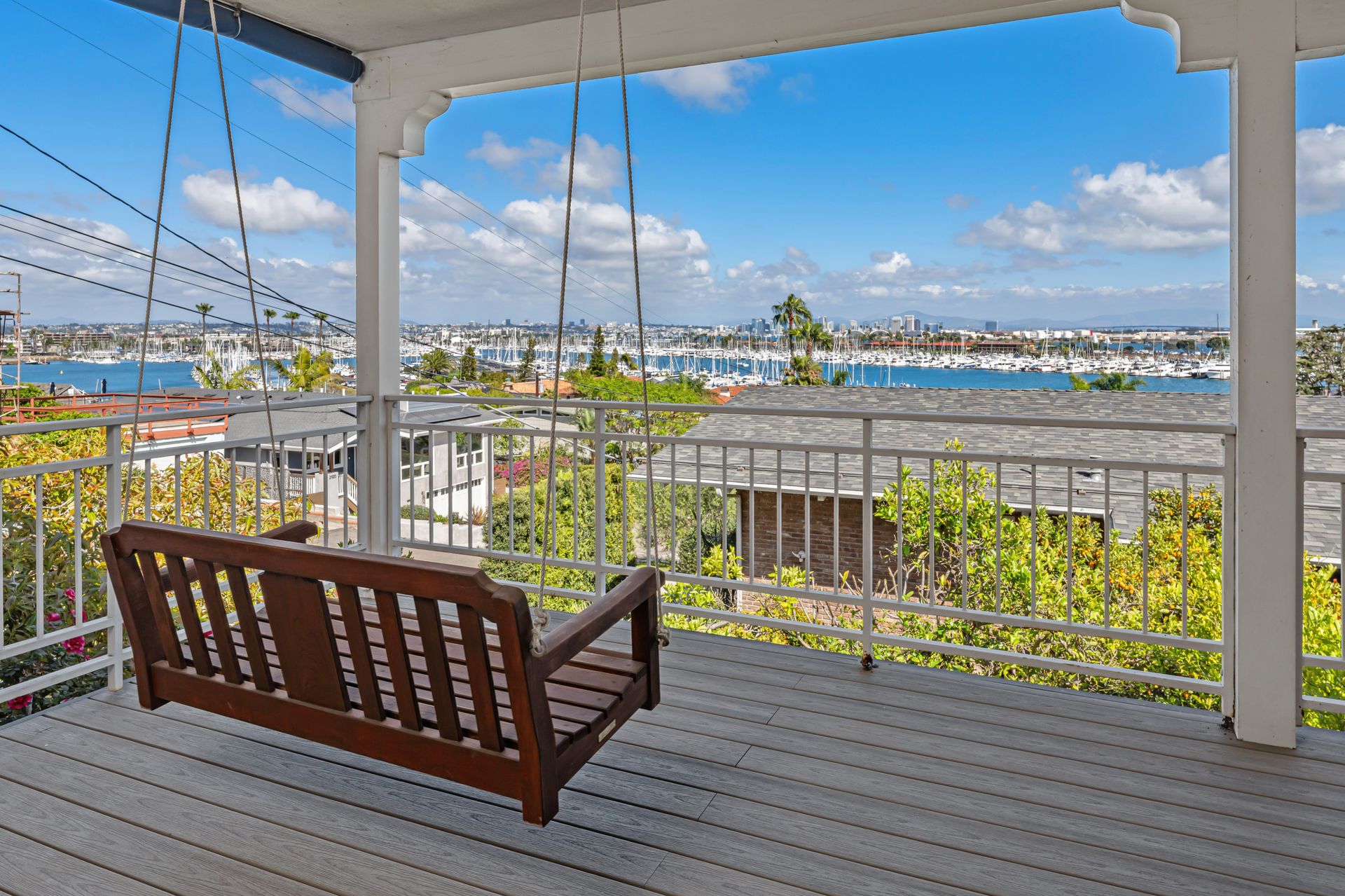 Located in the prestigious La Playa neighborhood of Point Loma, this wonderful home offers an opportunity to own in one of Point Loma's most coveted coastal enclaves. Set on an elevated lot, the home captures unobstructed, panoramic views of San Diego Bay, the downtown skyline, Coronado Island and the iconic Coronado Bridge—along with a dynamic, ever-changing backdrop of marina activity and sailboats on the water. This charming 4-bedroom, 2.5-bath home blends timeless character with thoughtful design. Remodeled in 1993 and lovingly maintained, it features an open floor plan filled with warmth and natural light. Highlights include two fireplaces, hardwood floors, elegant coffered ceilings, and extensive built-ins throughout. Expansive windows and both upper and lower view decks provide the perfect vantage points to soak in the stunning coastal scenery. An attached two-car garage offers convenient direct access, while a spacious 19x17 lower-level storage room provides exceptional flexibility for hobbies, storage, or future customization. With no neighbor on one side, the property enjoys added privacy and direct backyard access to Perry Street. Ideally located just moments from yacht clubs, the scenic Bessemer Trail, and Kellogg’s Beach, this home also benefits from a recorded view easement on two lower Perry Street properties—helping to preserve the remarkable vistas for years to come. Enjoy close proximity to Shelter Island, La Playa Village’s charming shops and restaurants, Liberty Station, and all that Point Loma has to offer. This is coastal living at its finest.