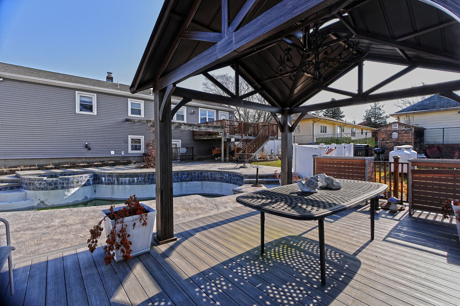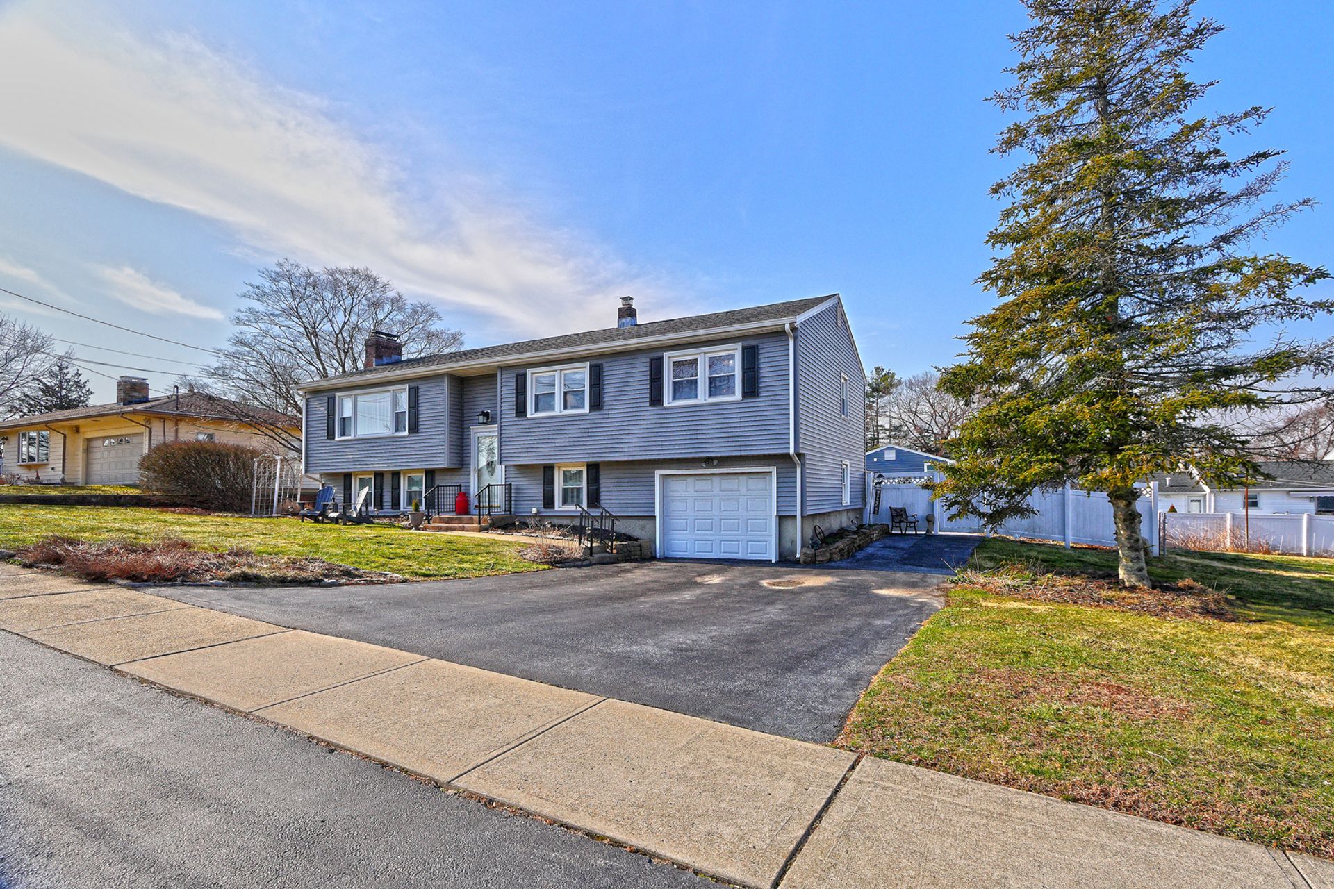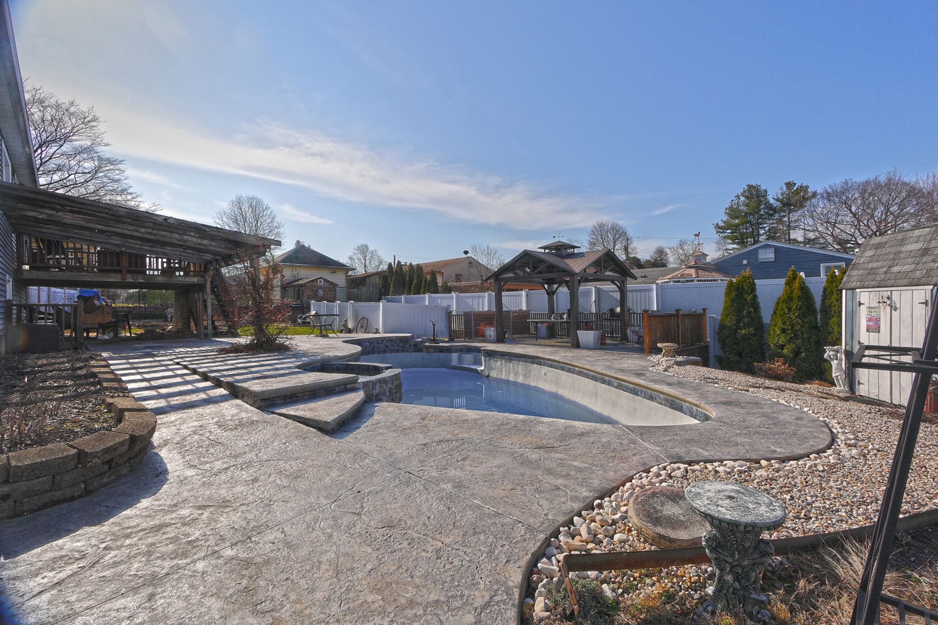 This thoughtfully designed backyard is sure to wow. Step outside to your private oasis featuring an inground gunite pool with built-in jacuzzi, a sprawling cement patio with gazebo, and a beautifully situated upper garden area for your seasonal plantings. Inside, you will find a classically charming, raised ranch with a functional layout ideal for growing families. The main level features a bright and spacious living room with a wood-burning stone fireplace. Just off the living area, the open dining room and eat-in kitchen provide ample cabinetry, generous counter space, and direct access to a spacious deck with views of the beautiful backyard. Down the hall, you'll find the spacious primary bedroom offering double closet space, along with two generously sized bedrooms, each providing great closet storage and a peaceful retreat at the end of the day. A full bathroom with walk-in shower, ceramic tile flooring, and granite vanity is conveniently located for easy access from all bedrooms. The walk-out lower level adds tremendous value and additional living space, perfect for a family or entertainment area, featuring a full bath, laundry room, storage areas, and an additional bonus room ideal for an extra bedroom or office. Smart layout, comfortable living, a show-stopping backyard, and perfectly located in a quiet, desirable West Haven neighborhood-just a short ride to beautiful beaches, vibrant downtown, and West Haven train station.
