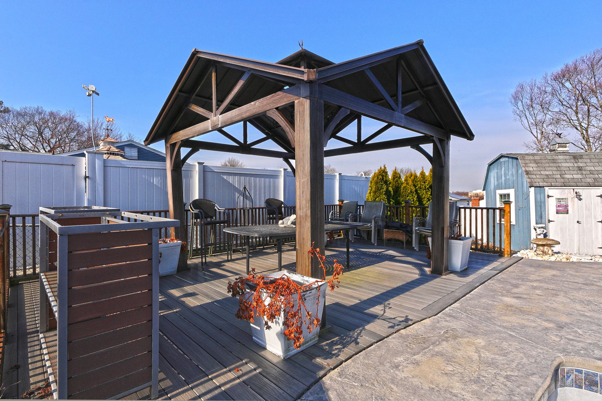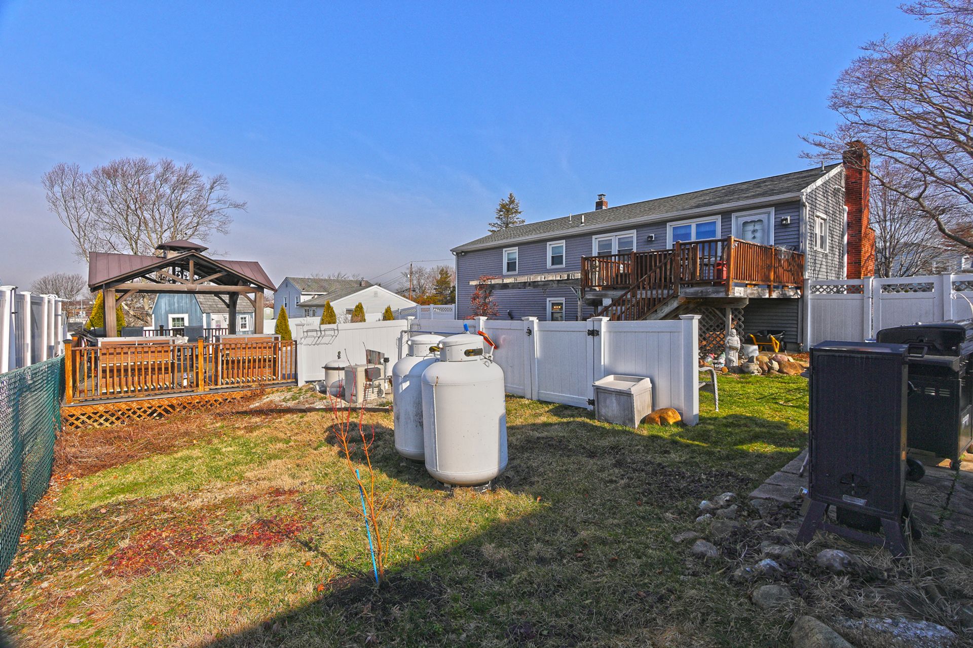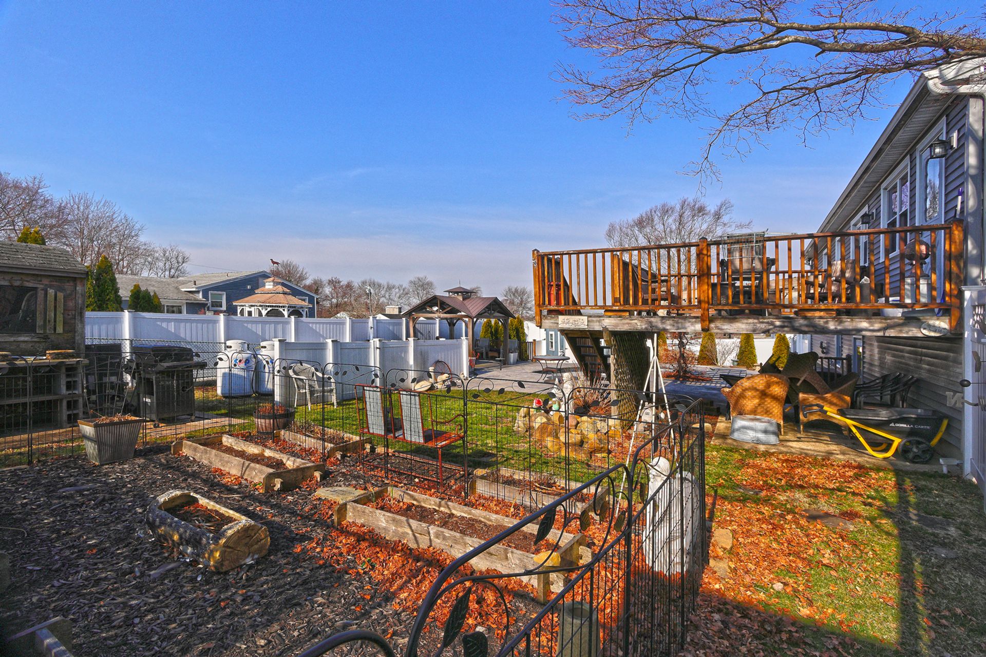 This thoughtfully designed backyard is sure to wow. Step outside to your private oasis featuring an inground gunite pool with built-in jacuzzi, a sprawling cement patio with gazebo, and a beautifully situated upper garden area for your seasonal plantings. Inside, you will find a classically charming, raised ranch with a functional layout ideal for growing families. The main level features a bright and spacious living room with a wood-burning stone fireplace. Just off the living area, the open dining room and eat-in kitchen provide ample cabinetry, generous counter space, and direct access to a spacious deck with views of the beautiful backyard. Down the hall, you'll find the spacious primary bedroom offering double closet space, along with two generously sized bedrooms, each providing great closet storage and a peaceful retreat at the end of the day. A full bathroom with walk-in shower, ceramic tile flooring, and granite vanity is conveniently located for easy access from all bedrooms. The walk-out lower level adds tremendous value and additional living space, perfect for a family or entertainment area, featuring a full bath, laundry room, storage areas, and an additional bonus room ideal for an extra bedroom or office. Smart layout, comfortable living, a show-stopping backyard, and perfectly located in a quiet, desirable West Haven neighborhood-just a short ride to beautiful beaches, vibrant downtown, and West Haven train station.