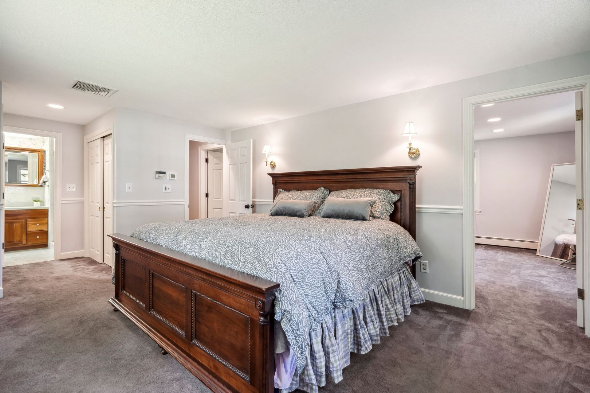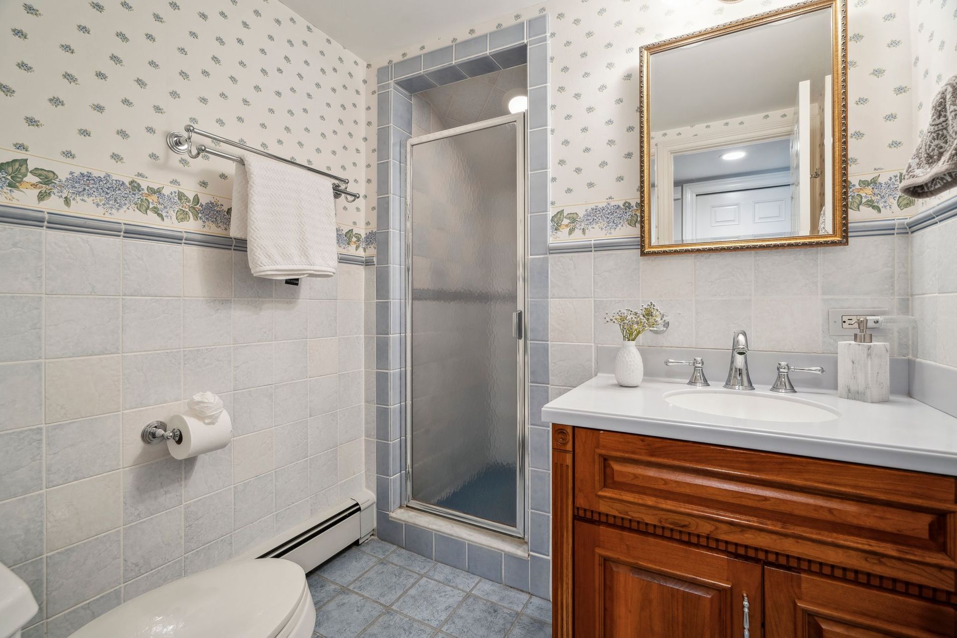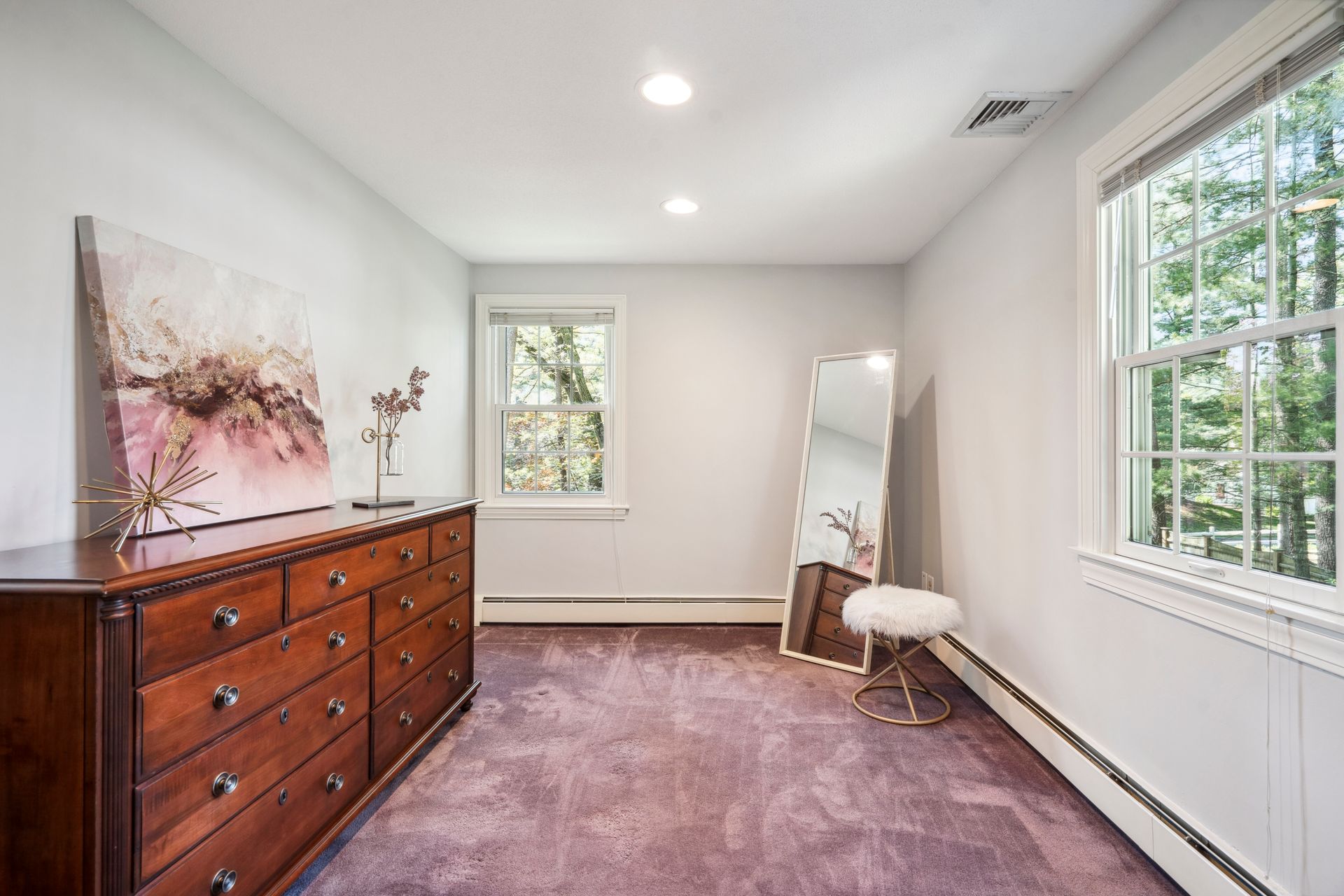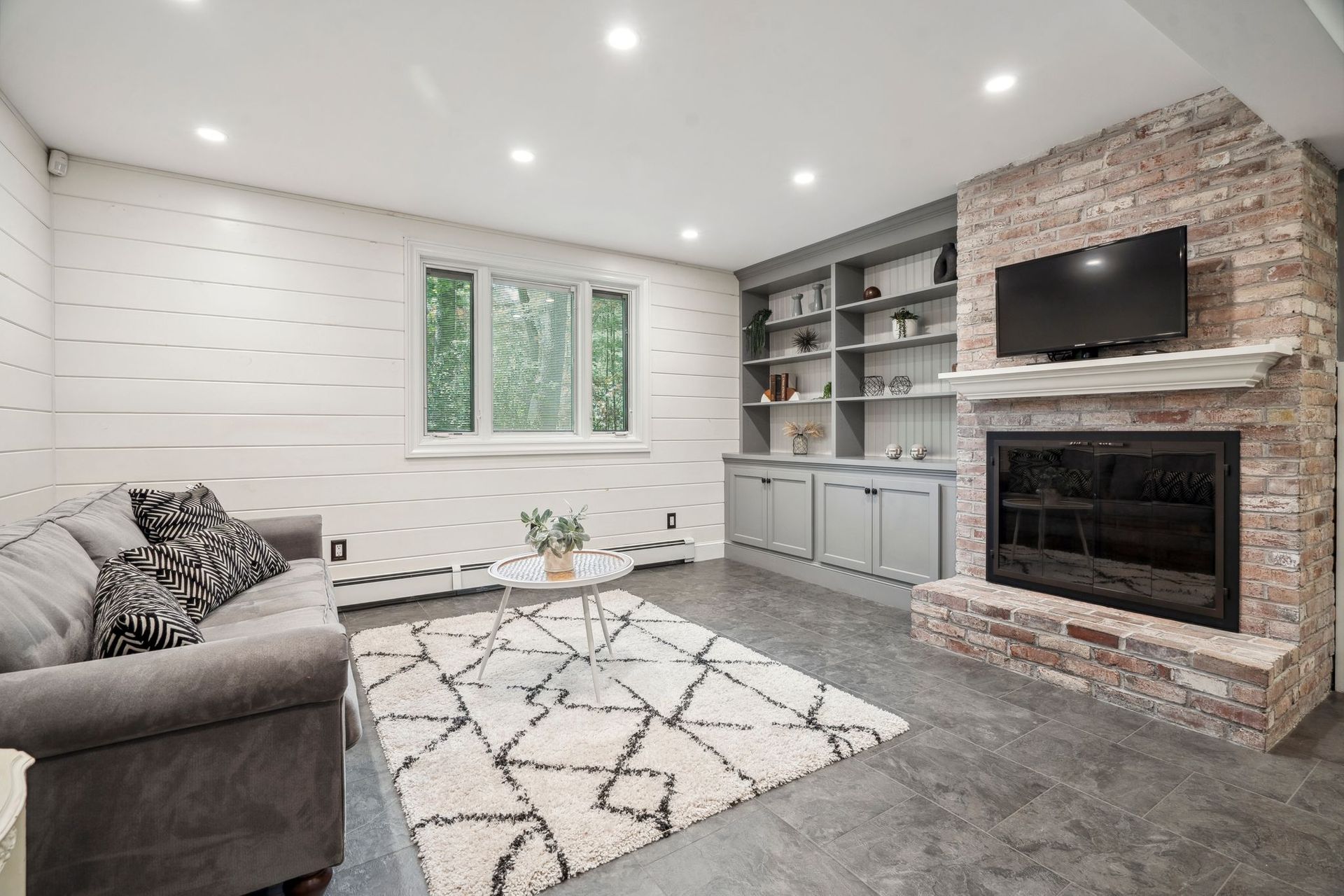 On the second floor, the private primary suite boasts an ensuite bathroom and bonus room, perfect for a walk-in closet or office. Four additional generously sized bedrooms and two well-appointed guest baths complete the upper levels. The lower level features a stylishly updated family room with shiplap walls and custom built-ins, along with a convenient updated 1/2 bathroom, laundry area with custom cabinetry, and two car garage. A sizable basement provides extensive storage and Buderus heating system. Close to major routes & shopping and dining at Market Street!