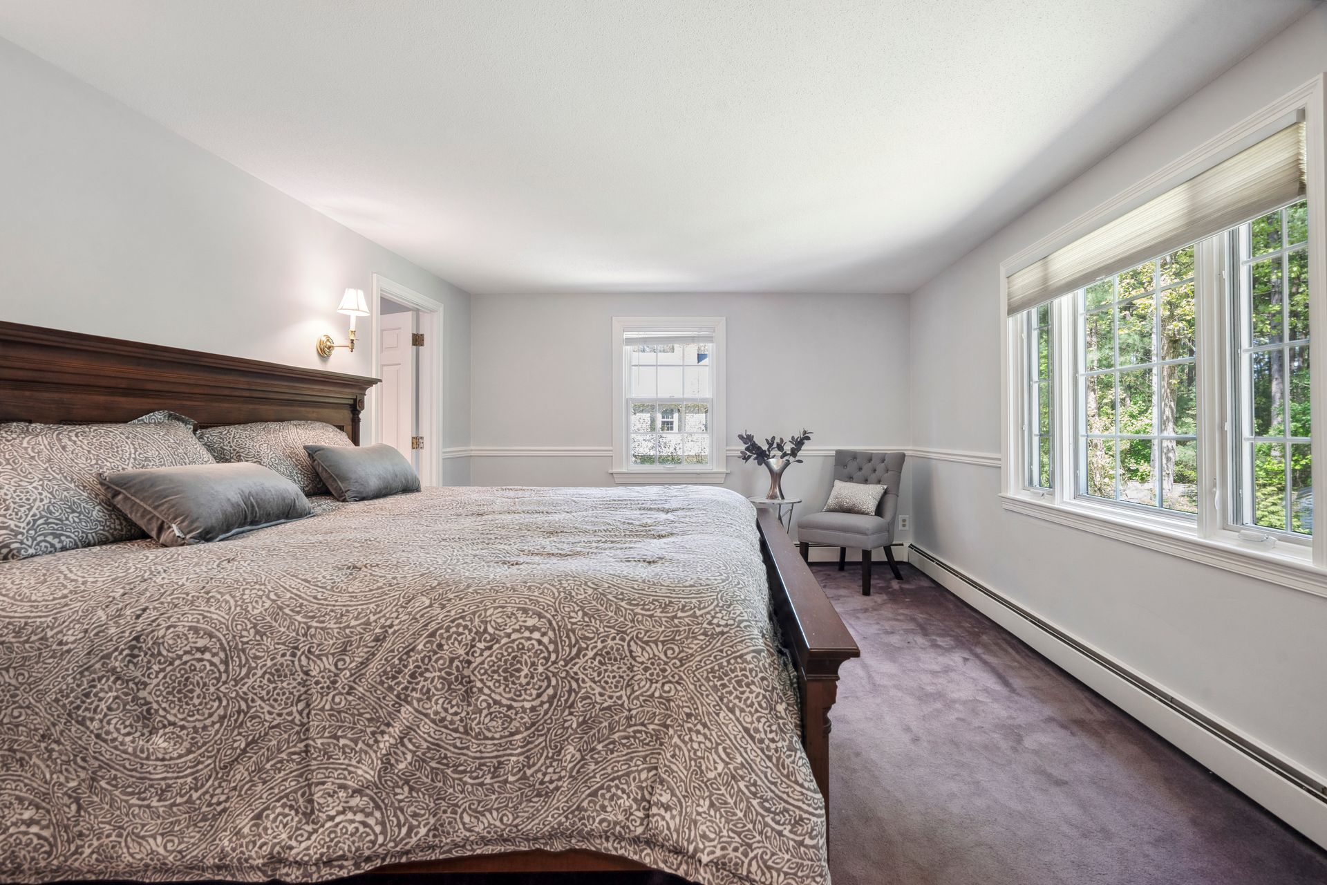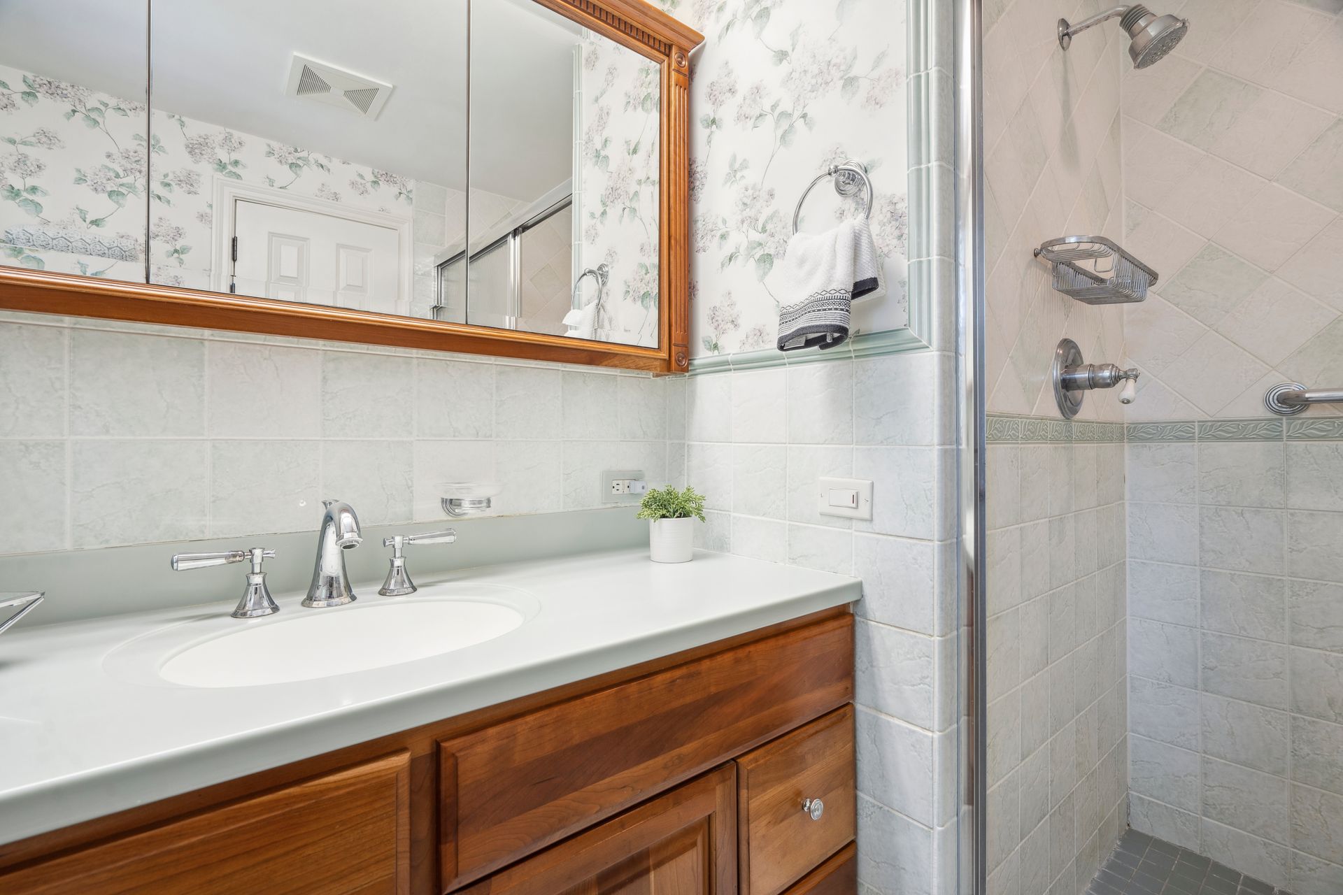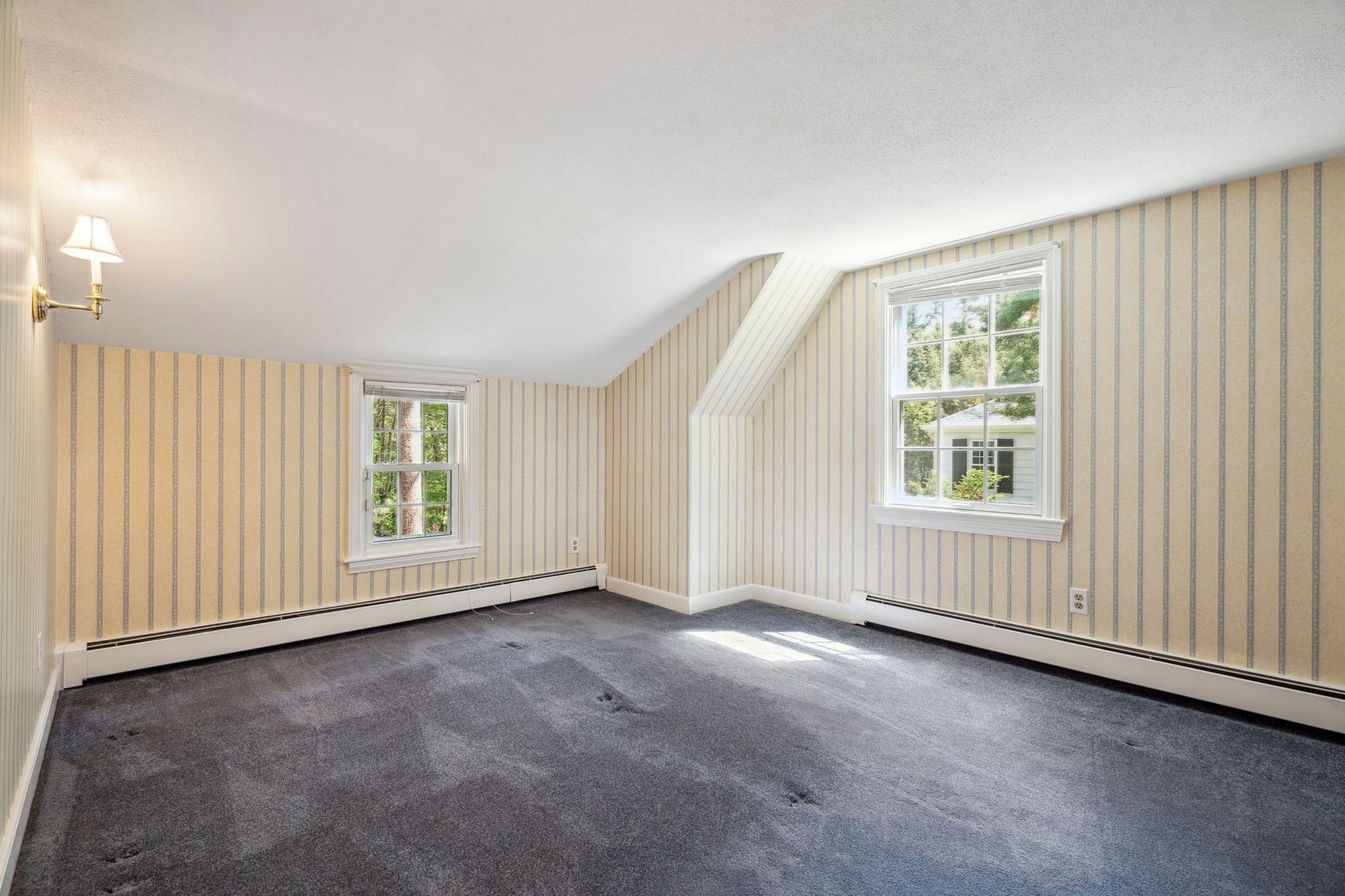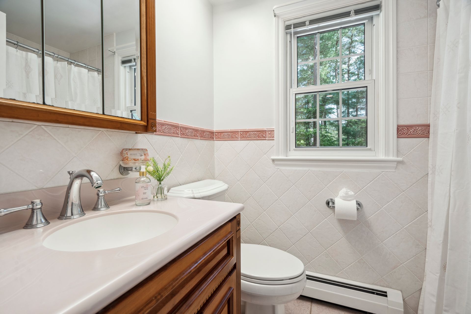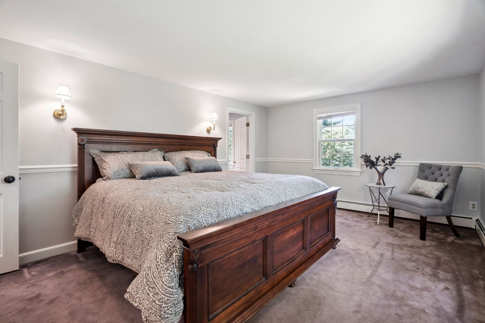 On the second floor, the private primary suite boasts an ensuite bathroom and bonus room, perfect for a walk-in closet or office. Four additional generously sized bedrooms and two well-appointed guest baths complete the upper levels. The lower level features a stylishly updated family room with shiplap walls and custom built-ins, along with a convenient updated 1/2 bathroom, laundry area with custom cabinetry, and two car garage. A sizable basement provides extensive storage and Buderus heating system. Close to major routes & shopping and dining at Market Street!