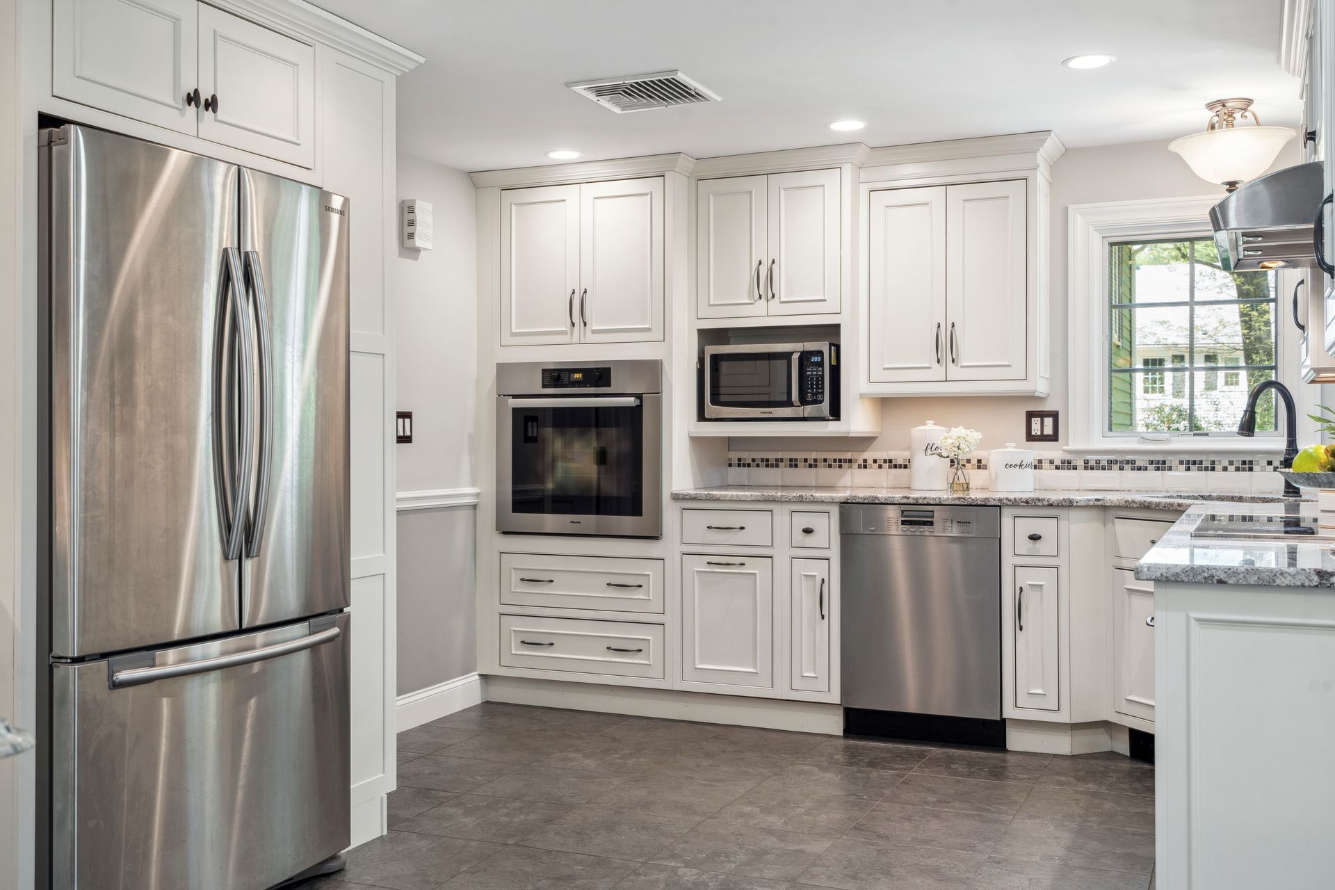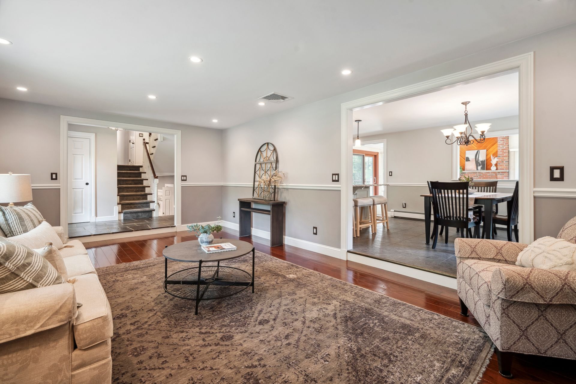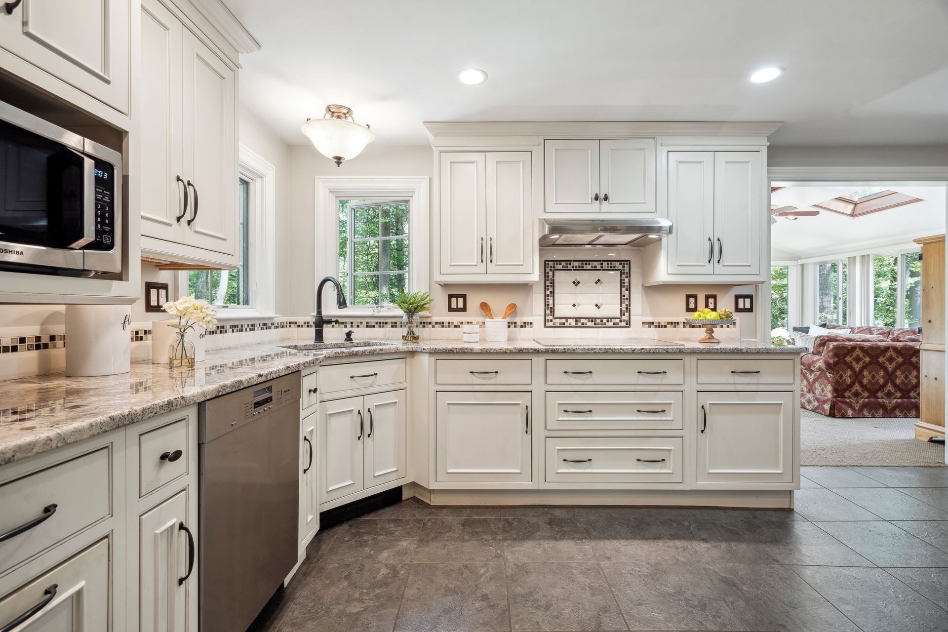 Nestled on a cul-de-sac, this exceptional multilevel home offers five bedrooms and 3.5 baths, thoughtfully designed for comfort and entertaining. The open-concept first floor welcomes you with a formal living room featuring a cozy fireplace, leading into a stunning eat-in chef’s kitchen equipped with high-end appliances, custom white cabinetry, prep sink and granite countertops. The kitchen seamlessly flows into a vaulted-ceiling family room, offering access to a spacious composite deck and serene backyard—an ideal space for gatherings and outdoor enjoyment.