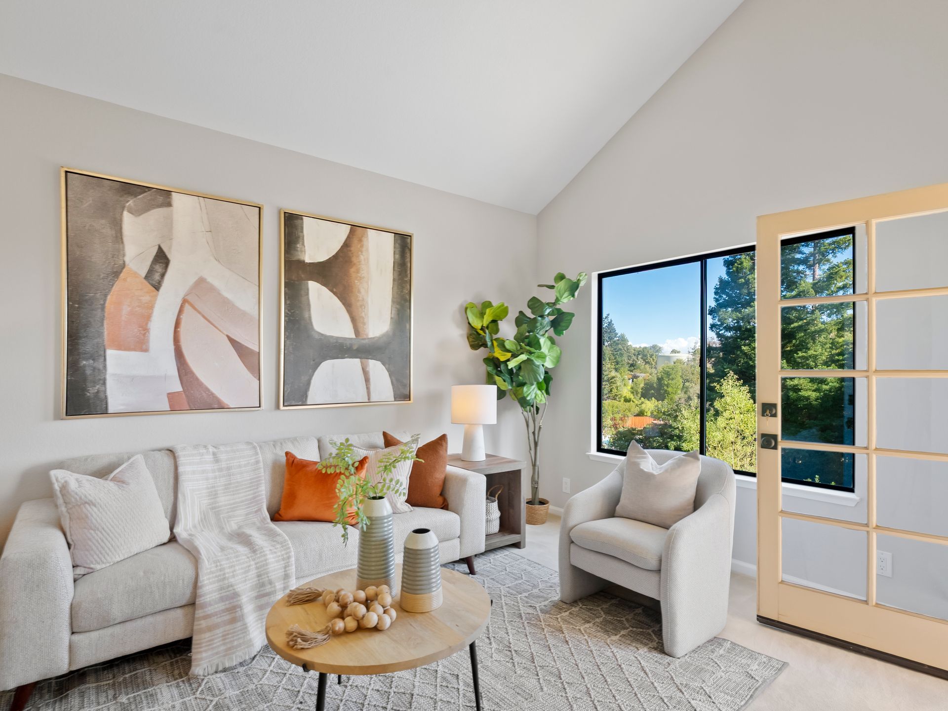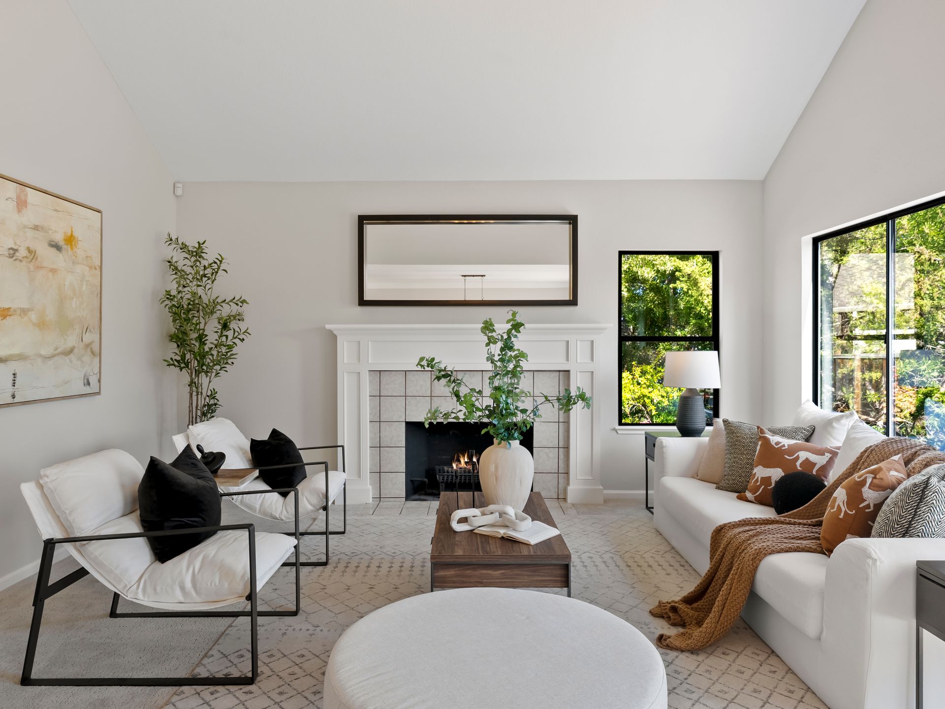 Step through the intimate courtyard through double doors to the foyer, where soaring ceilings and natural light create an immediate sense of openness. The home unfolds into a living room with fireplace and integrated dining room, wet bar, and large picture windows that frame serene backyard views.