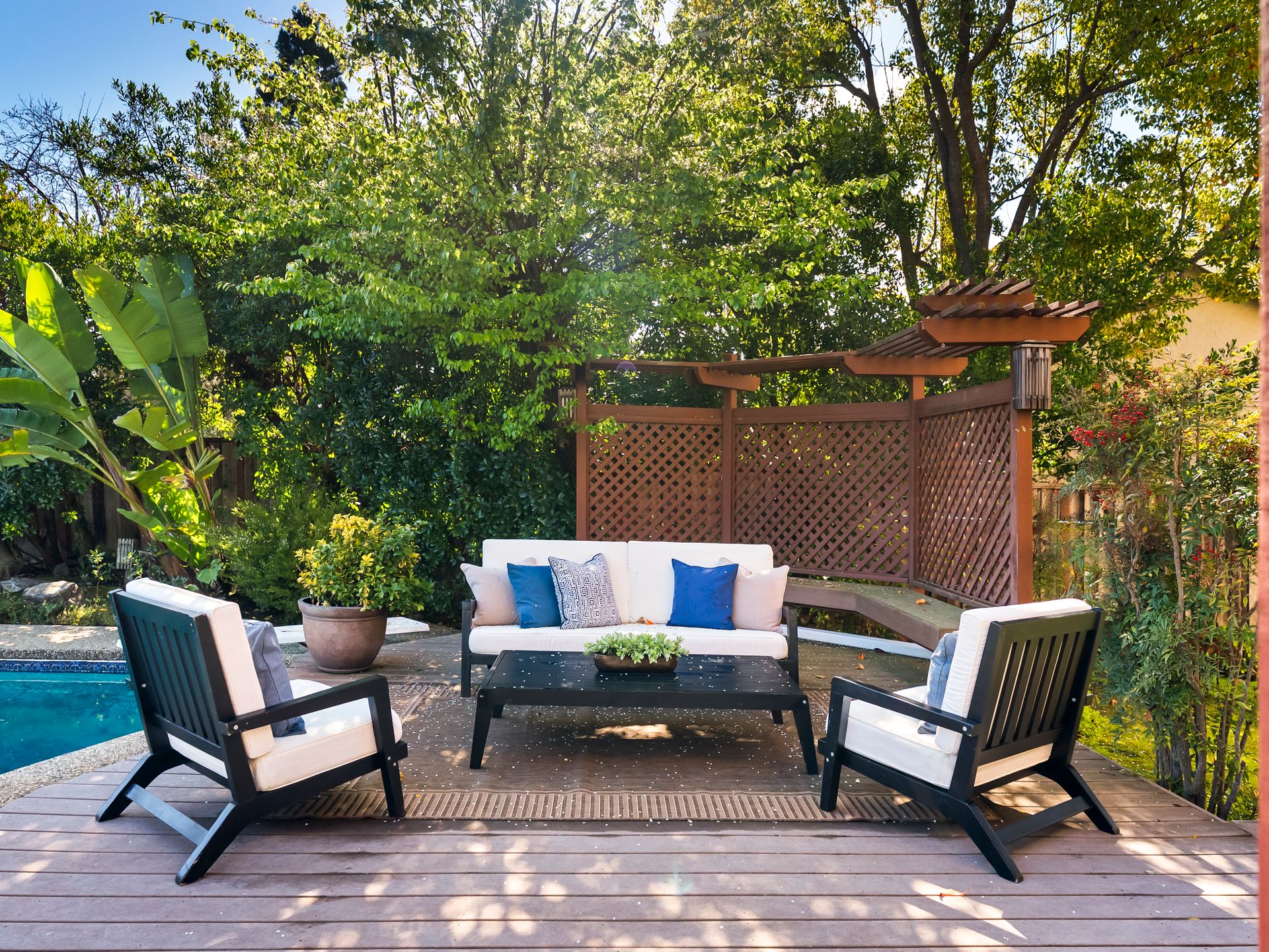 The floor plan flows into the kitchen overlooking the backyard and pool. Finished with an antique accent, granite countertops, stainless steel appliances, gas cooktop, plenty of upper and lower cabinetry and adjacent informal dining.