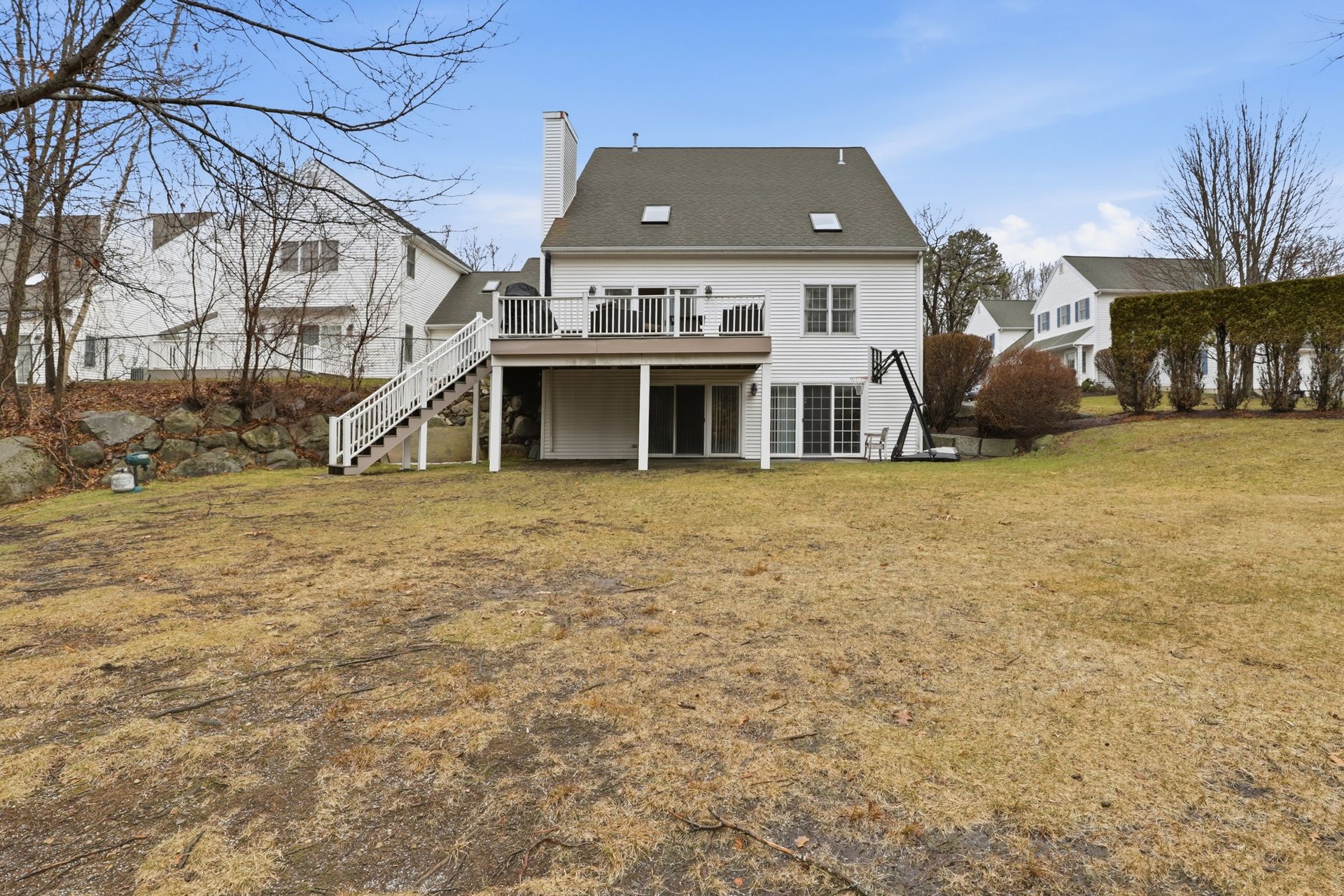 Step into refined luxury in this premier end‑unit townhome in the exclusive Braintree Hills community, offering 3,679 sq. ft of sun drenched, beautifully proportioned living space. Crafted for those who value elegance and privacy, this residence lives like a sophisticated single family home without the demands of maintenance. The dramatic great room, framed by cathedral ceilings, cascading skylights, and a striking gas fireplace creates a breathtaking centerpiece, opening through oversized sliders to a serene deck embraced by greenery. The first floor primary suite feels indulgently private, complete with a spa inspired jacuzzi bath and calming ambiance. A polished eat in kitchen features a radiant breakfast nook and generous pantry space. Upstairs, two spacious bedrooms and a lofted gallery overlook the grand main level with artful dimension. The expansive walkout lower level, with full bath, laundry, and flexible living areas, invites possibilities for an upscale in law suite, executive workspace, gym, or media lounge. A two car garage and effortless access to Boston complete this rare, distinguished offering.