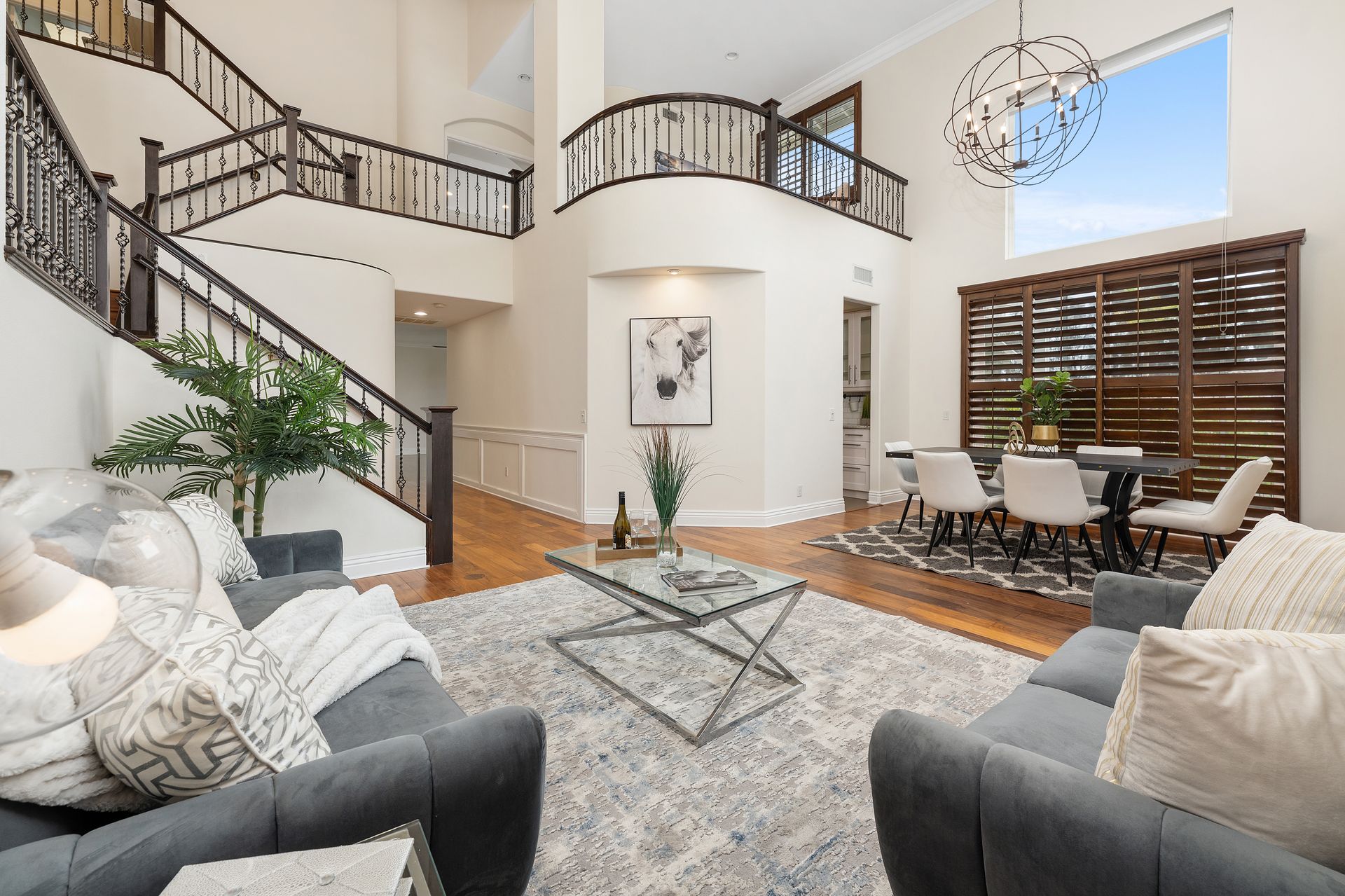 Discover a home where elegance, scale and thoughtful upgrades come together in harmony. Set within RIDGEGATE, one of La Jolla’s most coveted gated communities, this residence features one of the most desirable and rarely available floor plans. A dramatic entry welcomes you with soaring 20-foot ceilings, Italian marble flooring, crystal chandelier and a custom wrought-iron staircase. The formal living and dining rooms are ideal for gatherings, enhanced by abundant natural light and architectural details. The kitchen showcases stainless appliances, generous storage and an impressive center island perfect for entertaining ...all opening to an oversized family room. The primary suite offers ultimate comfort with dual walk-in closets, beautifully remodeled marble bath, cozy fireplace and private deck. A ground-floor en-suite bedroom provides ideal guest accommodation. Two additional upstairs bedrooms and a full bath complete the upper level. This meticulously maintained home includes brand-new HVAC systems, Rheem water heater, two reverse osmosis filtration systems, Sun Trek solar film, 22 fully owned solar panels and garage with built-in storage and RV charging readiness. RIDGEGATE offers a secure, serene environment with a pool/spa, clubhouse, sports court, BBQ area and private park. Enjoy living in one of San Diego’s top-rated school districts. Make this the home where your memories are made, tour it today!