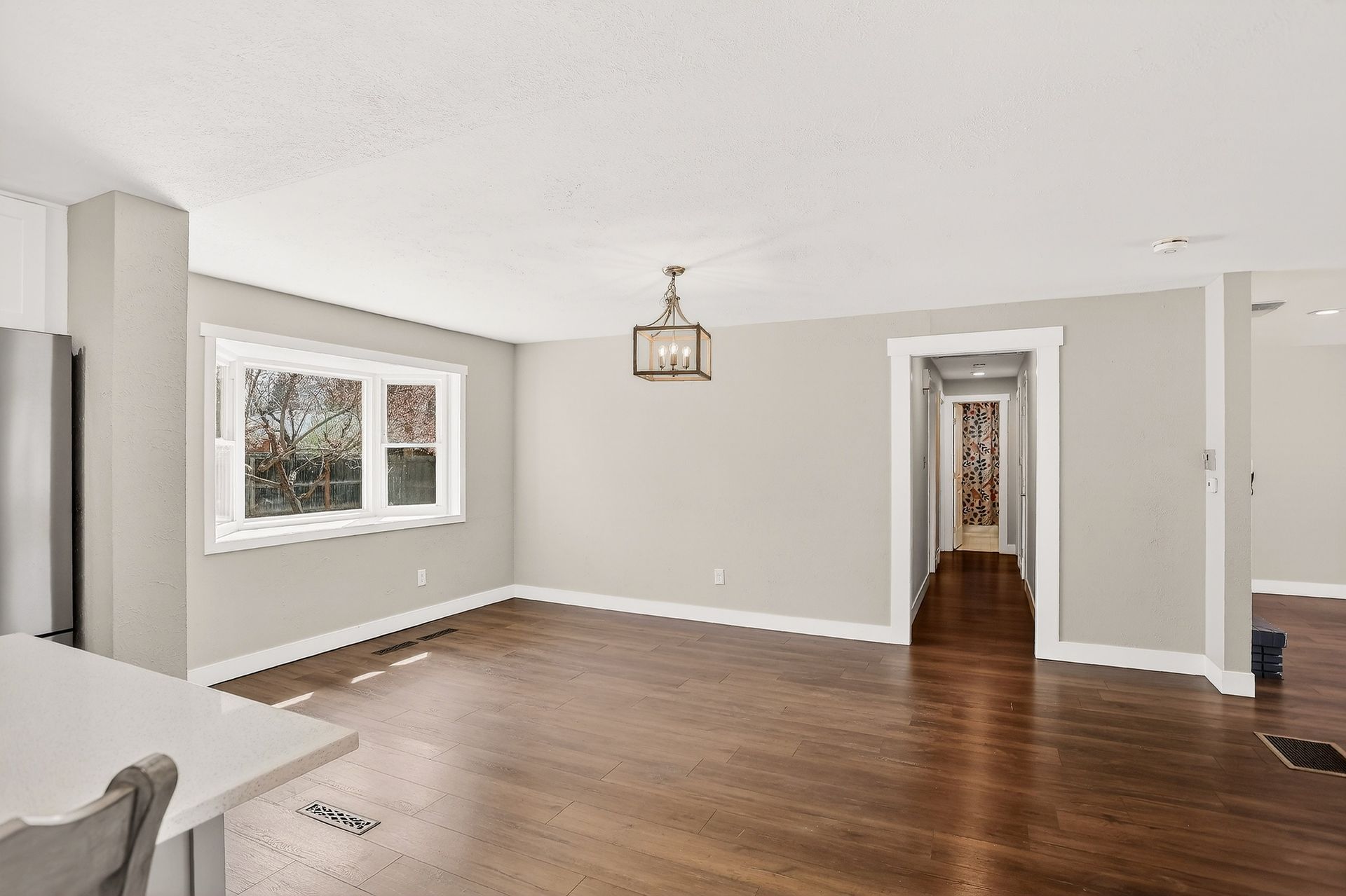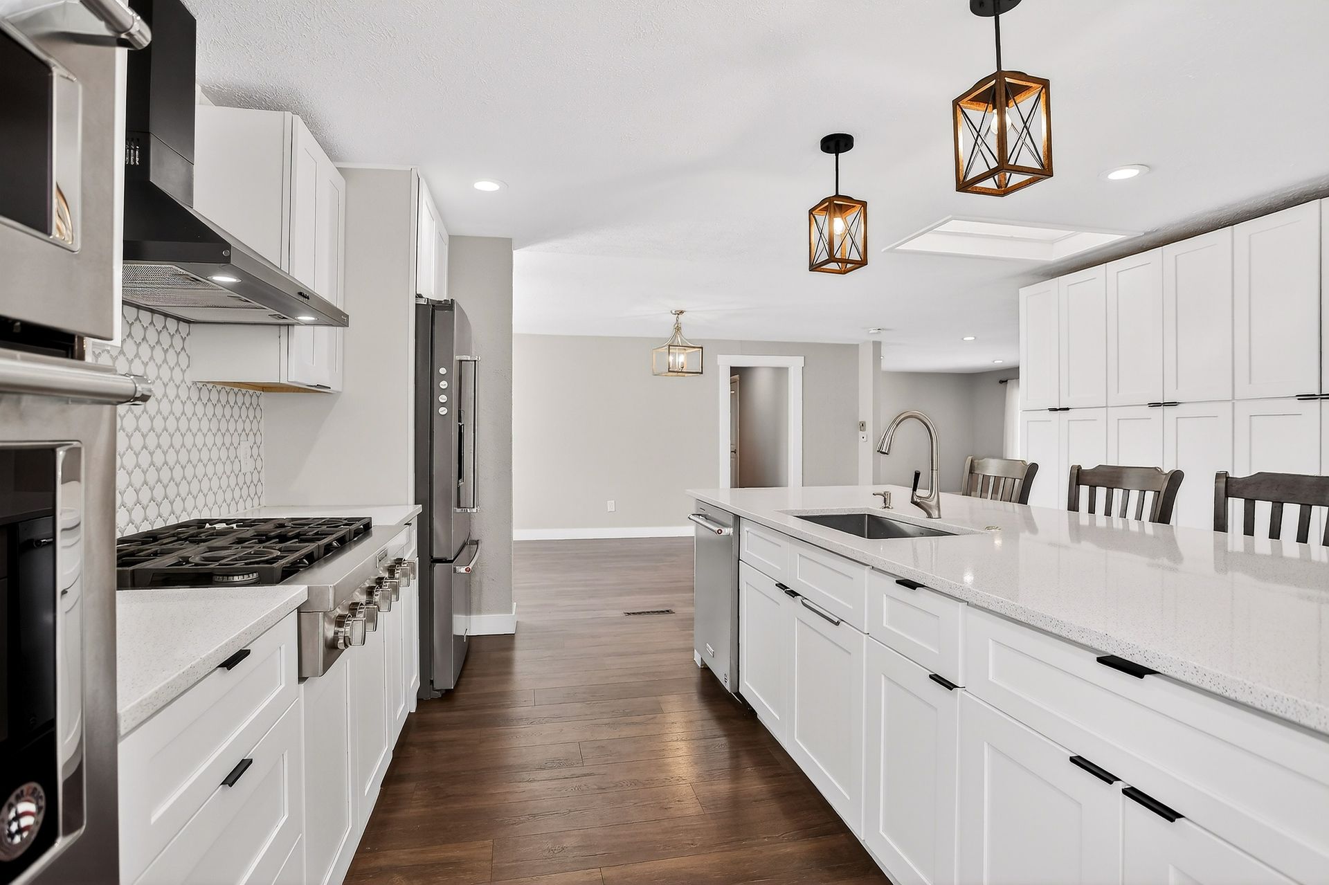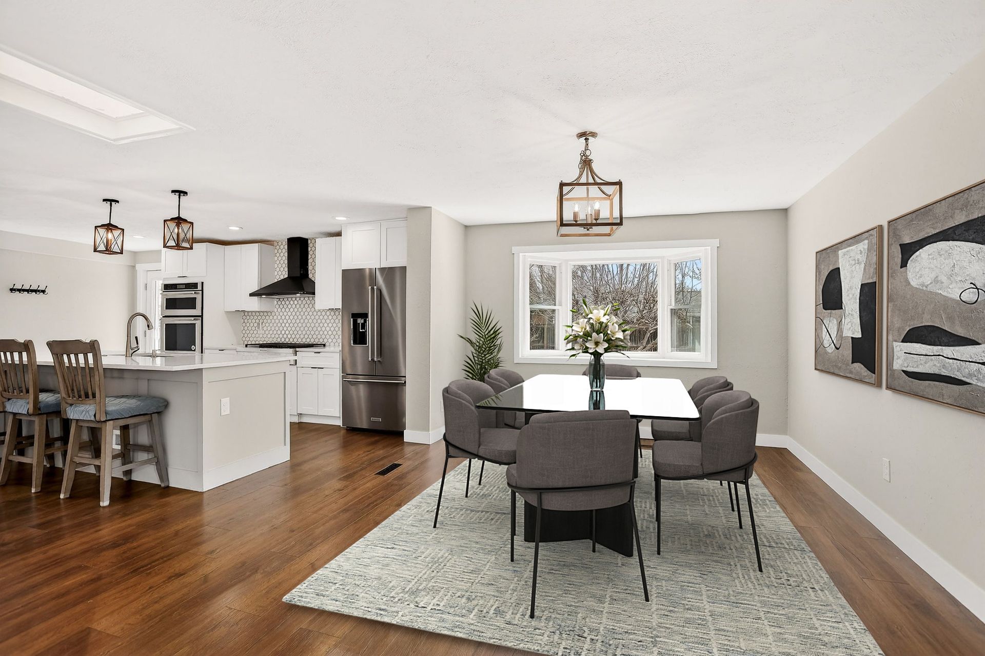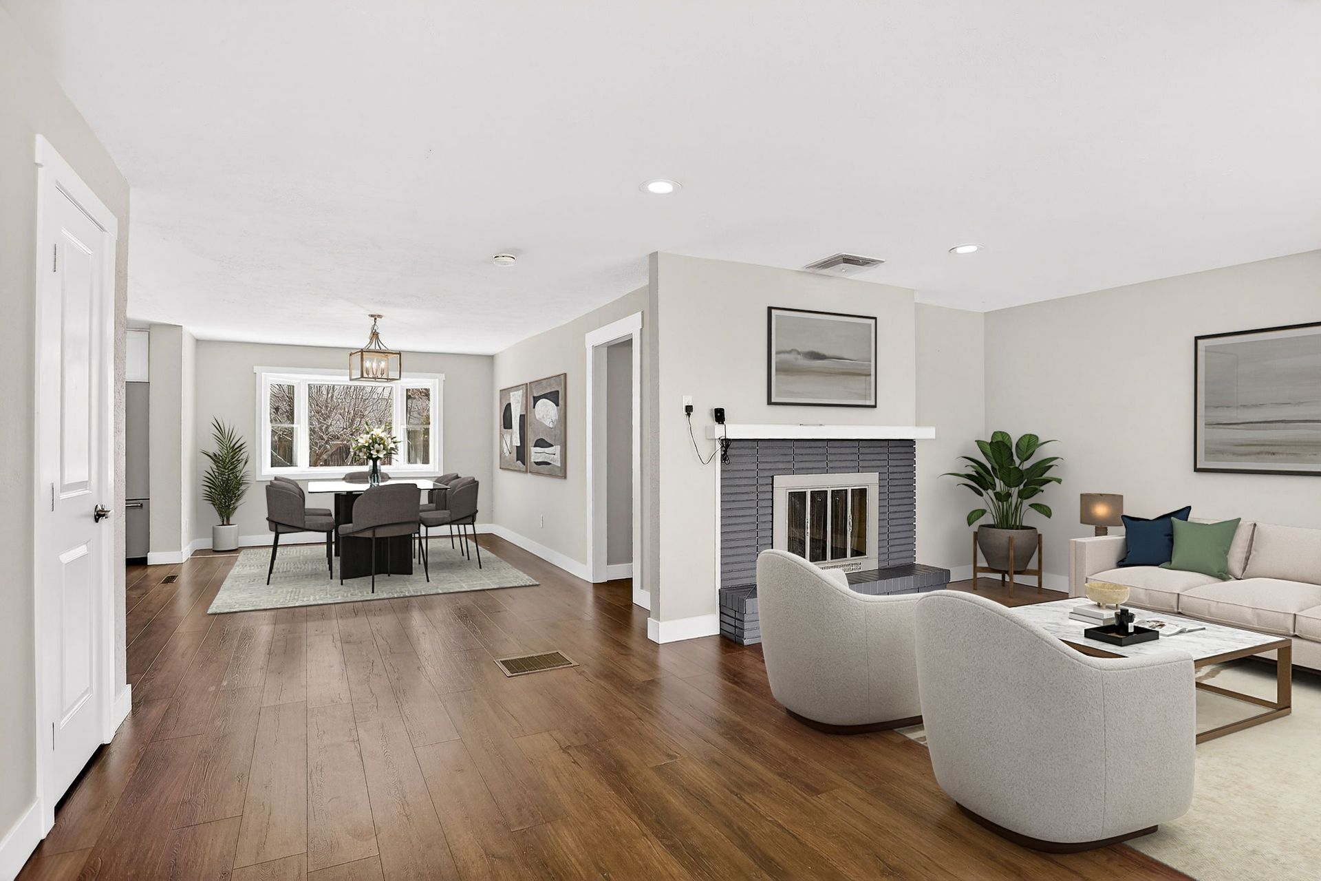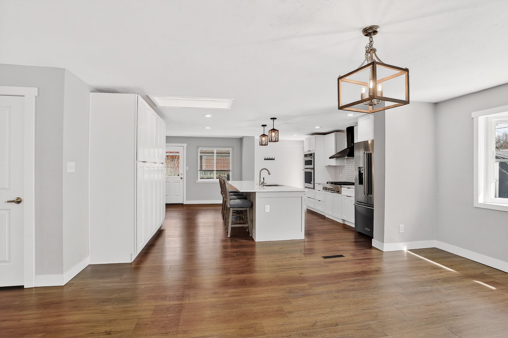 Welcome to this warm and sunny ranch-style home with plenty of windows to experience all the natural light! Enjoy the updates to this immaculately maintained five-bedroom, three-bathroom home! The wonderful open floor plan is spacious and includes a beautifully updated gourmet kitchen with an 11’ custom-built island, semi-custom soft-close cabinets with modern cabinet pulls, quartz countertops, stainless steel KitchenAid appliances, including a 36” six-burner gas stove-top, side-by-side refrigerator, dishwasher, double convection/microwave ovens, and a wine/coffee bar with beverage refrigerator. The cozy family room has newer luxury plank floors and wood burning fireplace. The home also has newer vinyl windows and updated overhead fans and light fixtures throughout the home. The large primary bedroom includes a spacious closet and an ensuite updated bathroom; this home also includes a second updated main floor full bathroom and two additional bedrooms. If that wasn’t enough! The finished basement includes a large great room with a fireplace, two more bedrooms with egress windows, an updated third bathroom, and a large laundry room. This home also has a newer furnace and A/C unit (2022), the oversized garage includes a newer garage door (2024), and a side door to the backyard. The exterior includes a welcoming stamped concrete front porch, a large backyard with a stamped concrete patio for entertaining, fruit trees, perennial floor beds, new Tuff shed, newer roof (2024), newer gutters, and newer solar panels for energy savings. There are so many more additions to this terrific home to list. Come see this great home, you will love it!