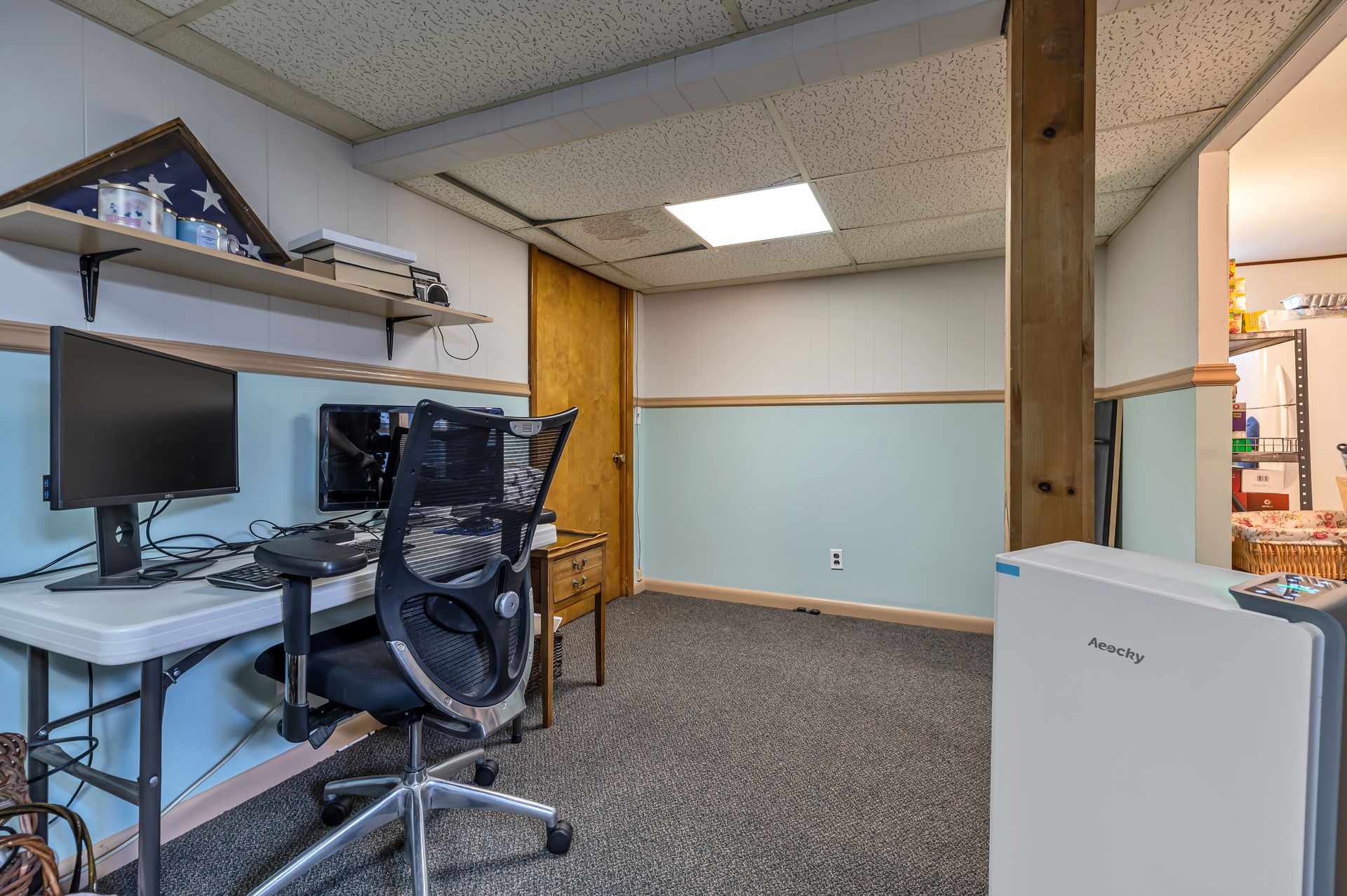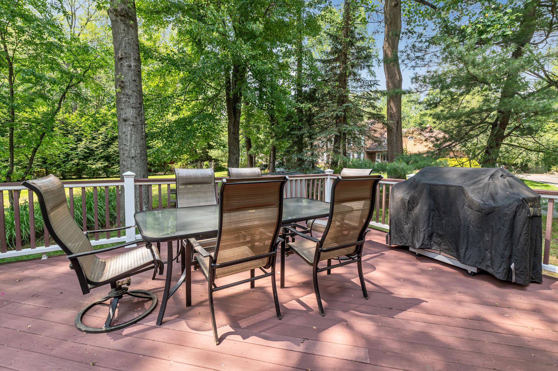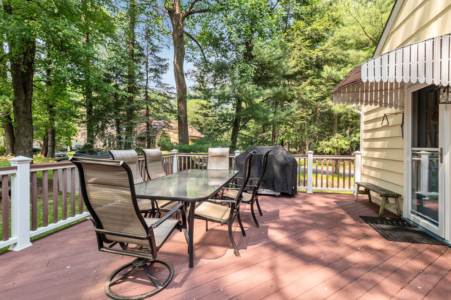Envision yourself in this beautiful, well-maintained Cape Cod nestled in a desirable Allendale neighborhood. You are greeted by a large inviting living room featuring a wood-burning fireplace with exposed brick. The dining room provides access to our very own maintenance-free deck. The kitchen includes stainless steel appliances and an abundance of cabinets. The first floor is completed by a spacious, primary bedroom with two closets and a full bath with a stall shower.