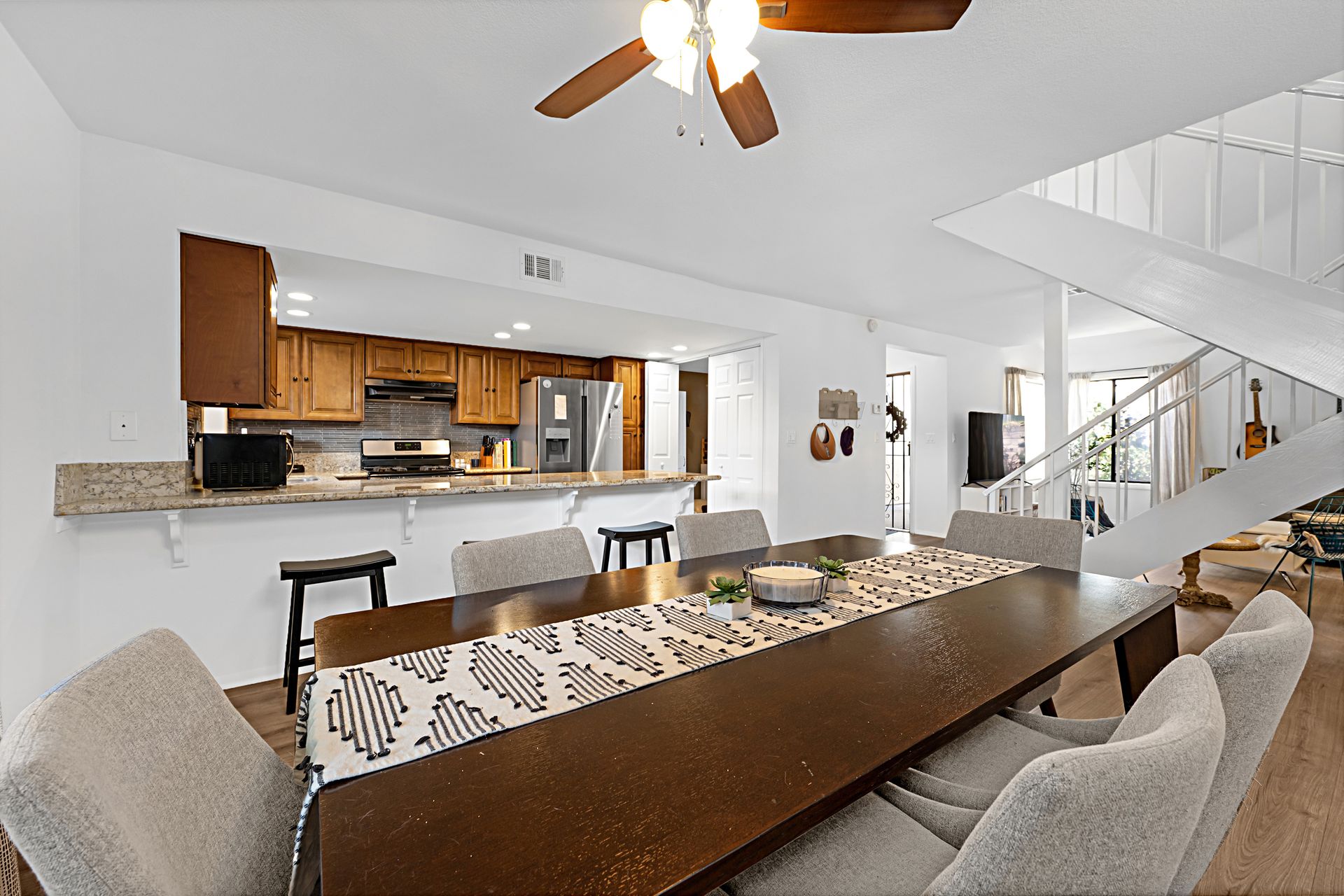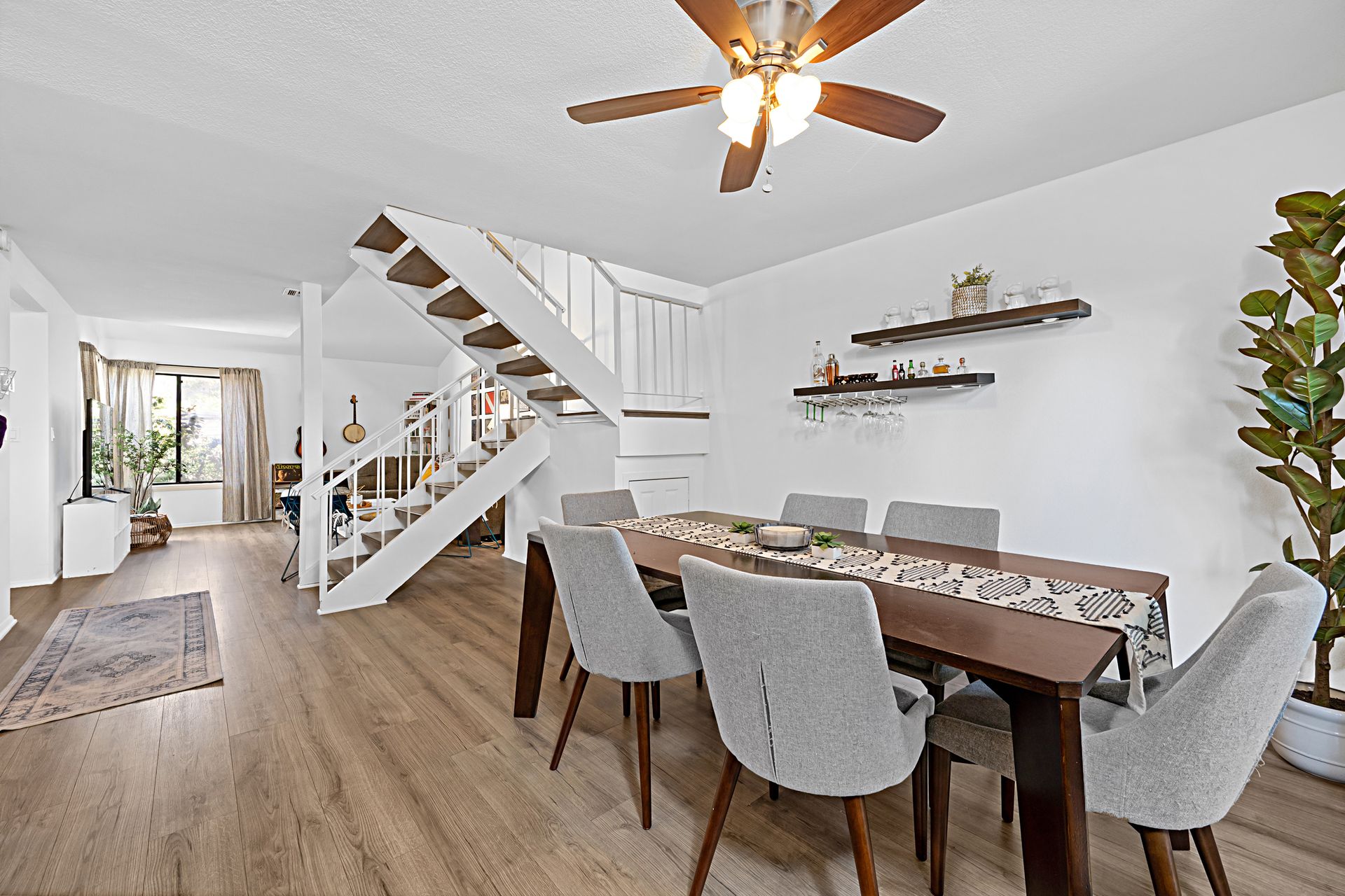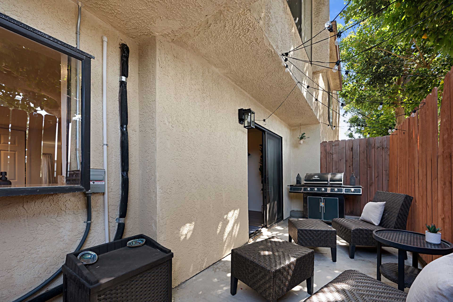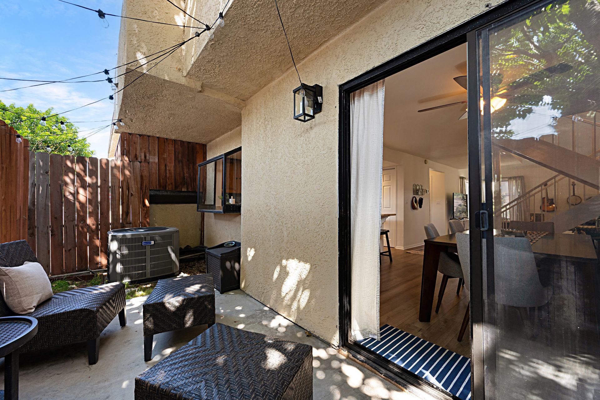 A wonderful opportunity to buy a turnkey, high-ceiling, light-filled townhouse tucked inside the complex to provide peace and privacy in your home/work-life. The open floor concept offers an optimal flow from the large living room, formal dining room, and well-designed kitchen that features updated cabinets, stainless steel appliances, and a granite countertop. Adjacent to the dining room is an enclosed patio that offers a unique al fresco experience for your dining/entertainment lifestyle. There is also a large private laundry/storage. Upstairs are two generously sized bedrooms with two updated bathrooms. Both bedrooms have abundant closet/cupboard space for easy storage. The primary bedroom has an en-suite bathroom and a cozy balcony. Just minutes away are some of the most premier entertainment venues: Sofi Stadium, Kia Forum, and the newly built Intuit Dome. Ideally situated near shops, restaurants, and the future Inglewood Transit Connector.
