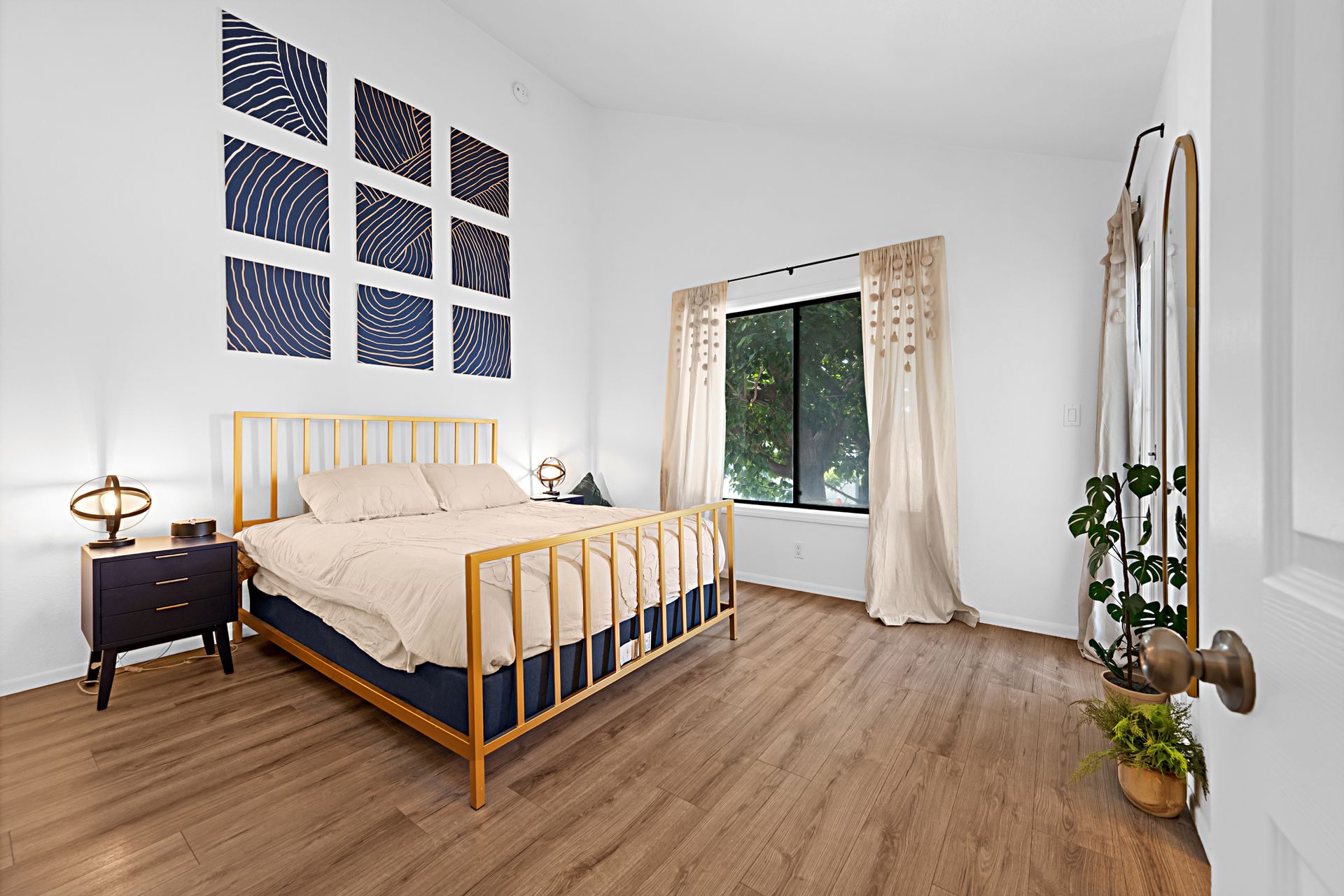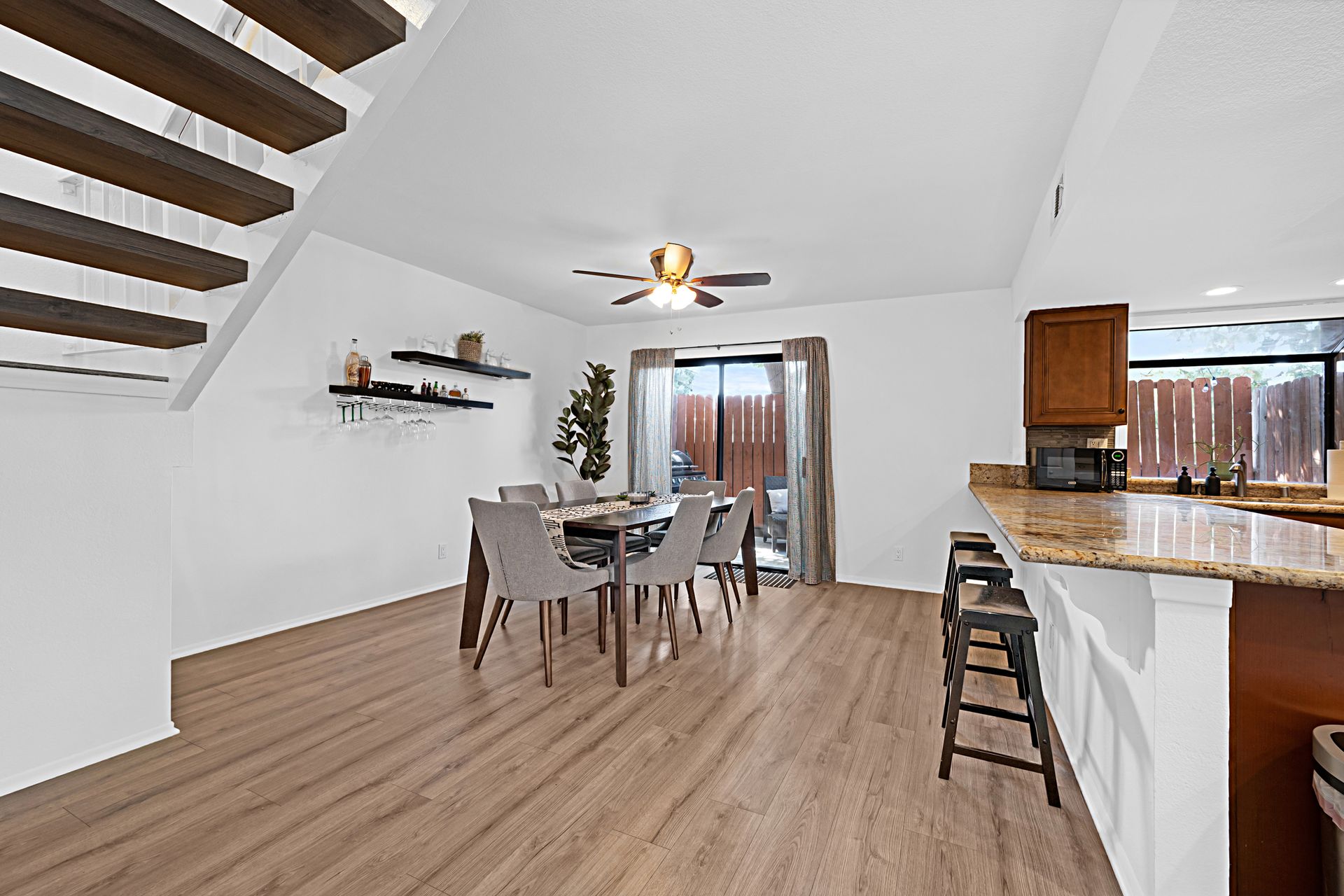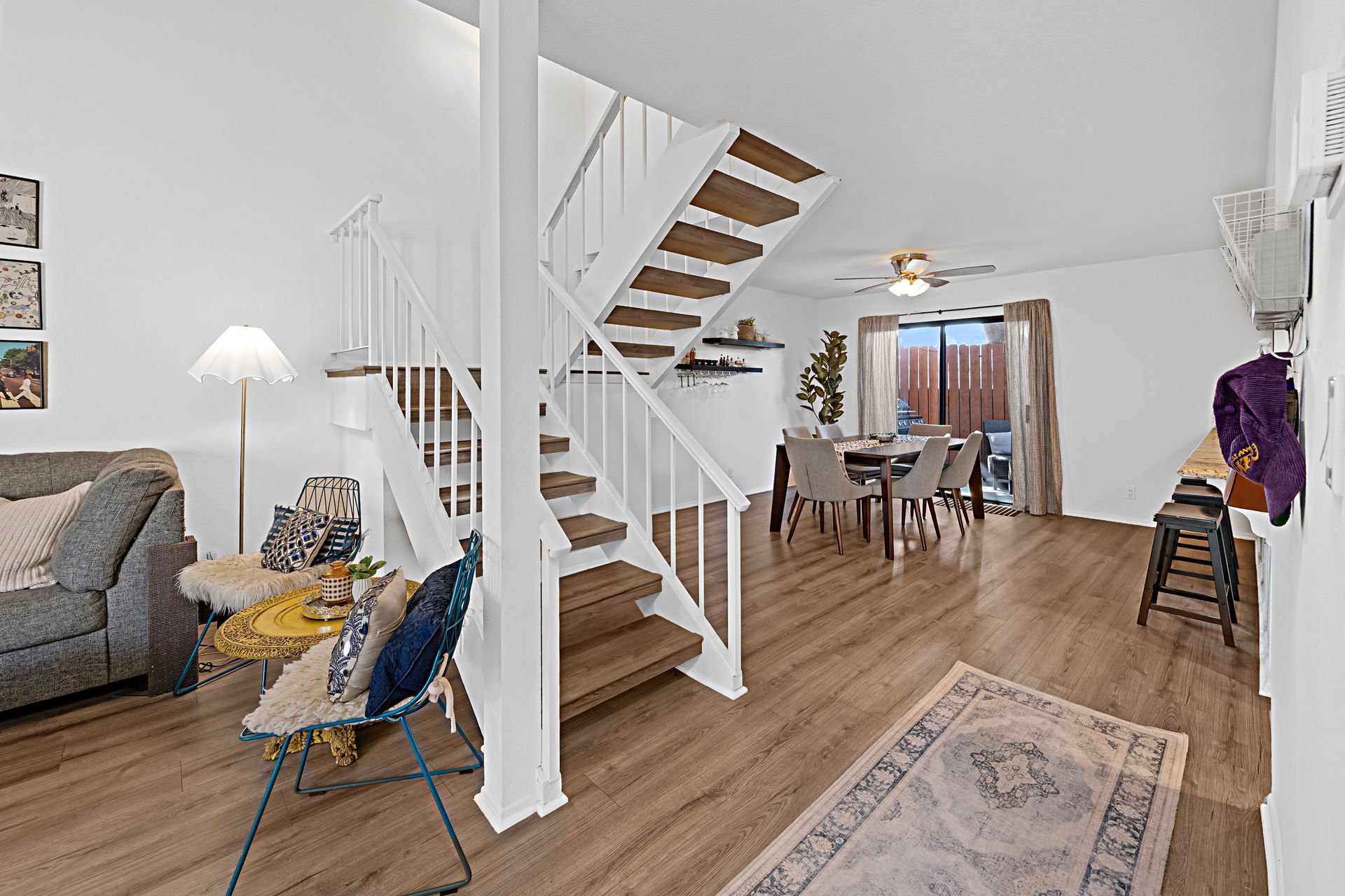 A wonderful opportunity to buy a turnkey, high-ceiling, light-filled townhouse tucked inside the complex to provide peace and privacy in your home/work-life. The open floor concept offers an optimal flow from the large living room, formal dining room, and well-designed kitchen that features updated cabinets, stainless steel appliances, and a granite countertop. Adjacent to the dining room is an enclosed patio that offers a unique al fresco experience for your dining/entertainment lifestyle. There is also a large private laundry/storage. Upstairs are two generously sized bedrooms with two updated bathrooms. Both bedrooms have abundant closet/cupboard space for easy storage. The primary bedroom has an en-suite bathroom and a cozy balcony. Just minutes away are some of the most premier entertainment venues: Sofi Stadium, Kia Forum, and the newly built Intuit Dome. Ideally situated near shops, restaurants, and the future Inglewood Transit Connector.