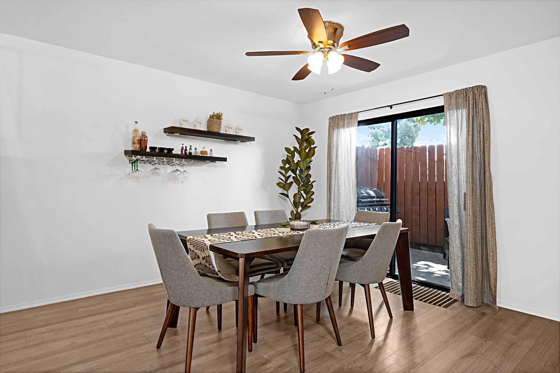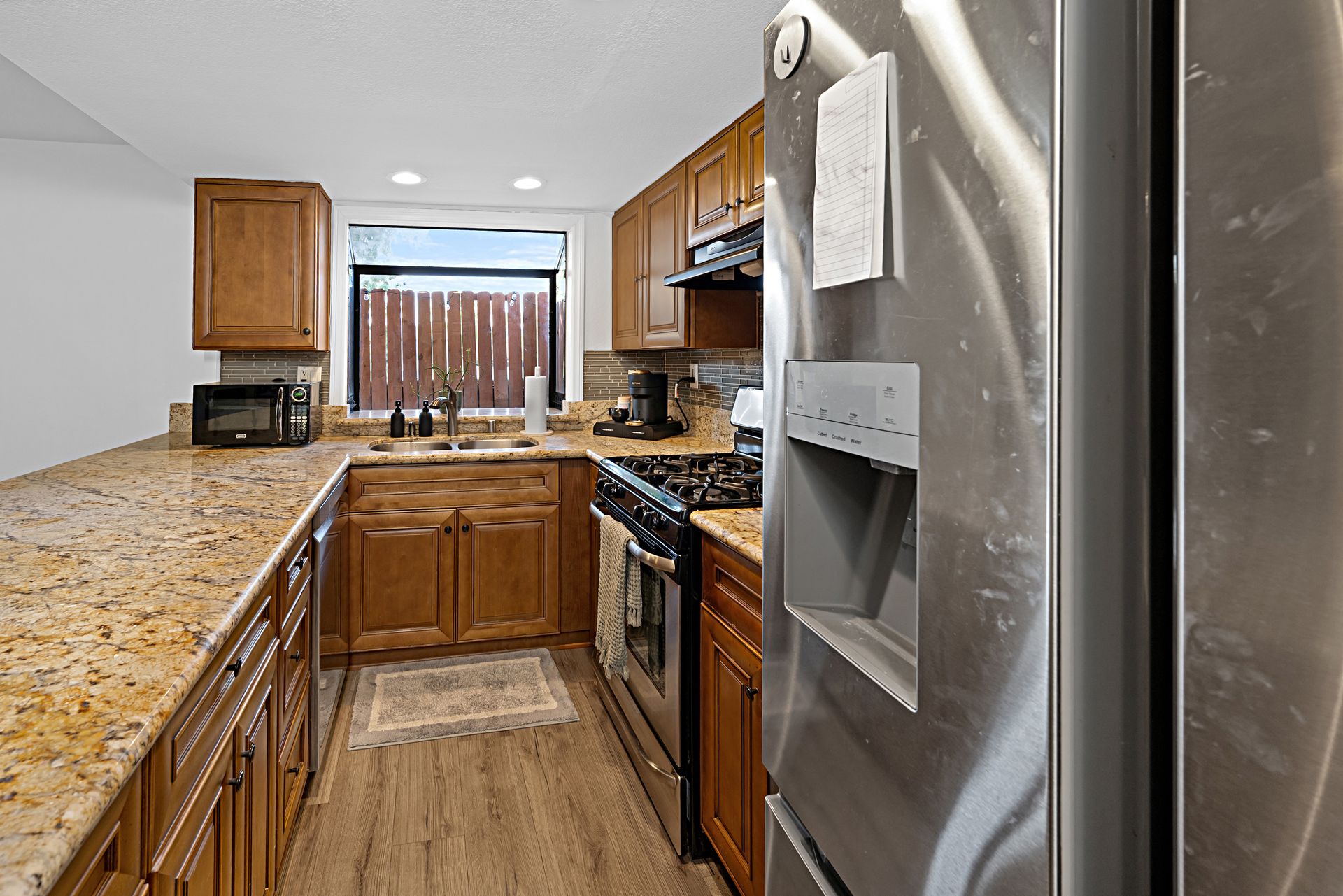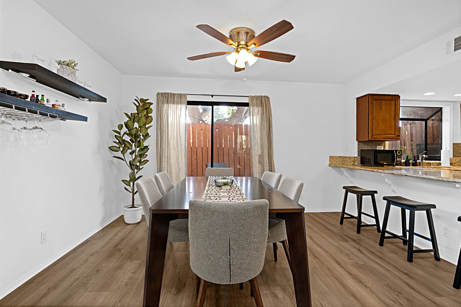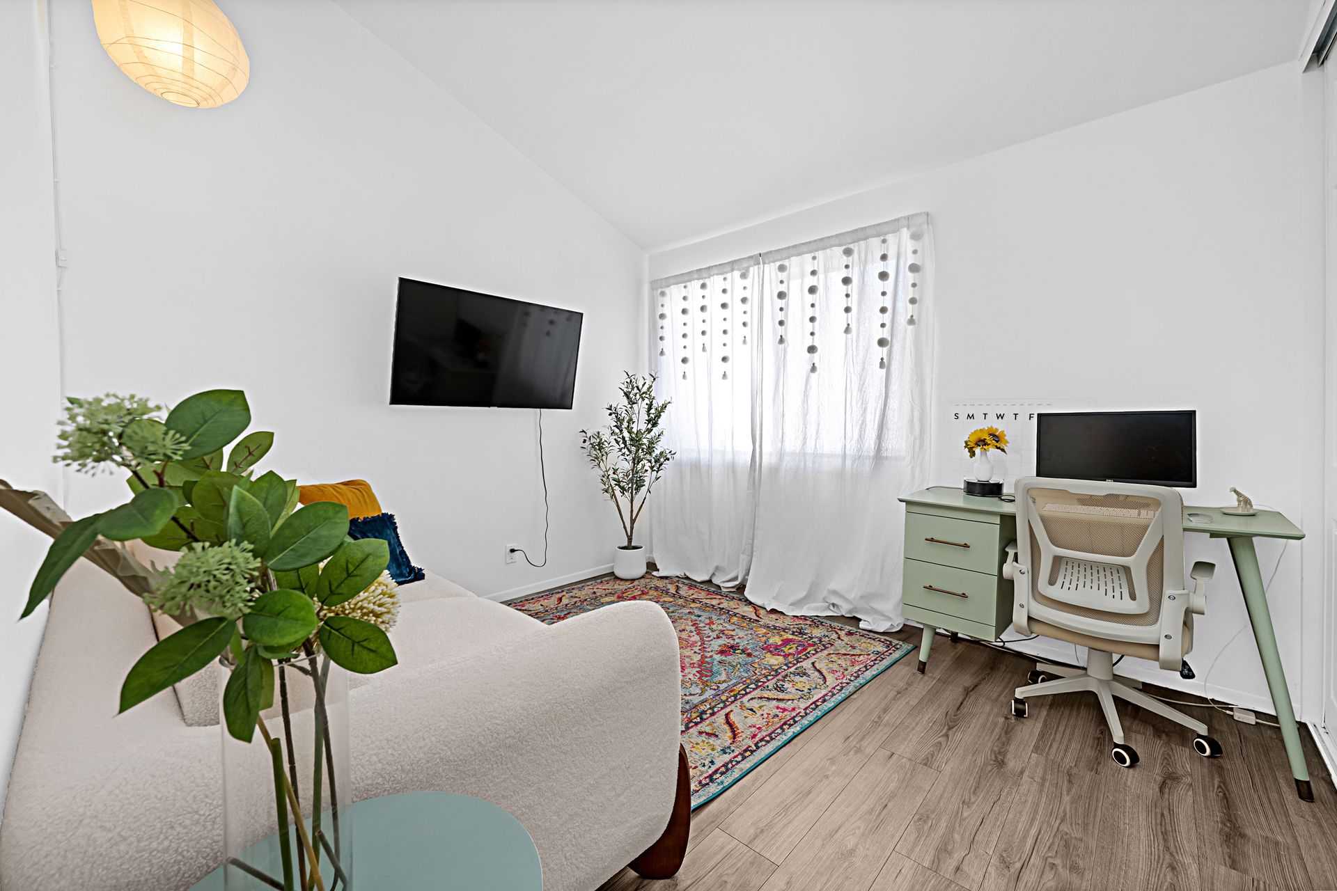 A wonderful opportunity to buy a turnkey, high-ceiling, light-filled townhouse tucked inside the complex to provide peace and privacy in your home/work-life. The open floor concept offers an optimal flow from the large living room, formal dining room, and well-designed kitchen that features updated cabinets, stainless steel appliances, and a granite countertop. Adjacent to the dining room is an enclosed patio that offers a unique al fresco experience for your dining/entertainment lifestyle. There is also a large private laundry/storage. Upstairs are two generously sized bedrooms with two updated bathrooms. Both bedrooms have abundant closet/cupboard space for easy storage. The primary bedroom has an en-suite bathroom and a cozy balcony. Just minutes away are some of the most premier entertainment venues: Sofi Stadium, Kia Forum, and the newly built Intuit Dome. Ideally situated near shops, restaurants, and the future Inglewood Transit Connector.