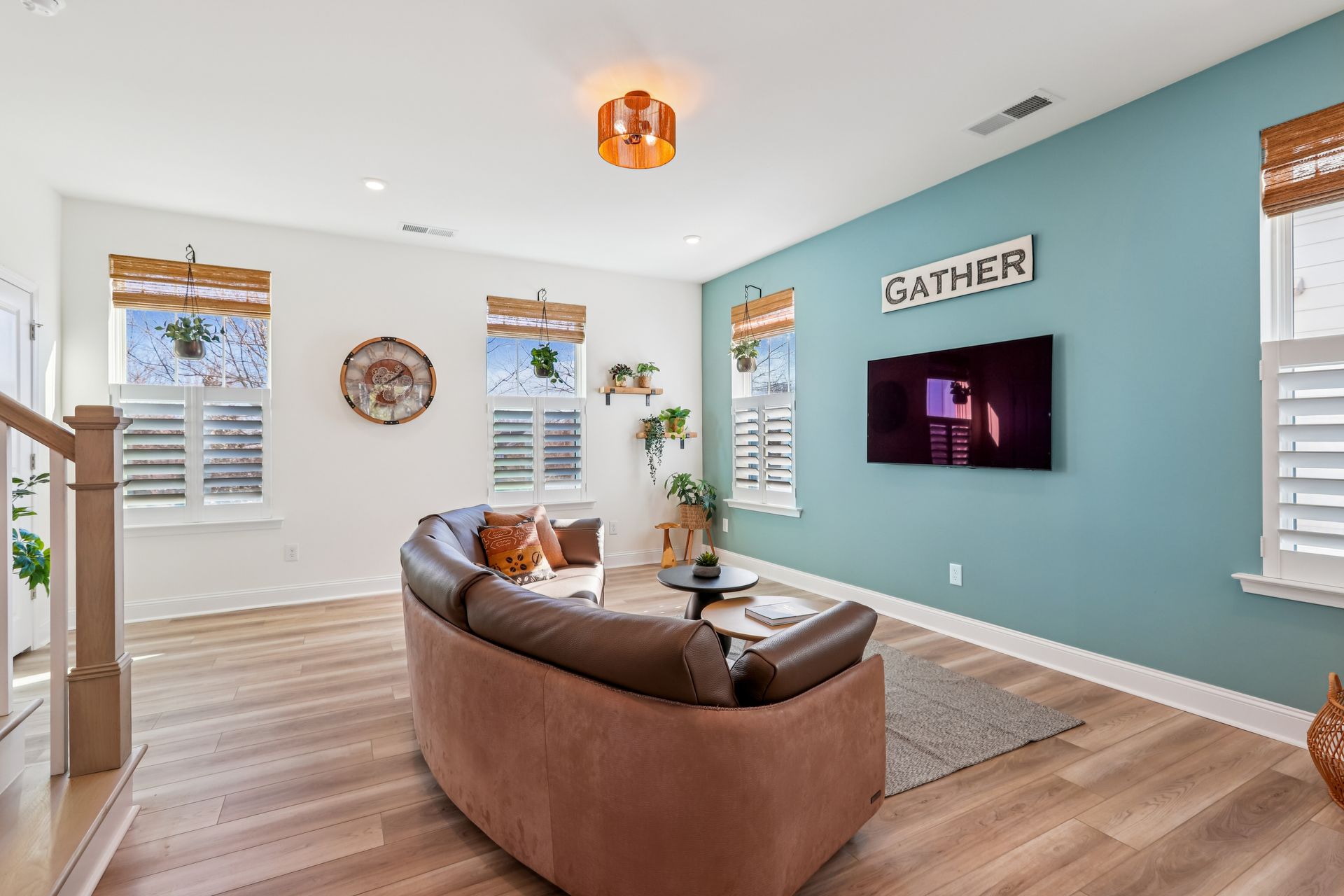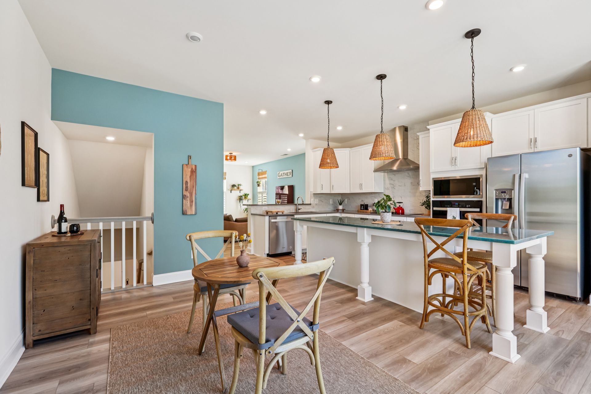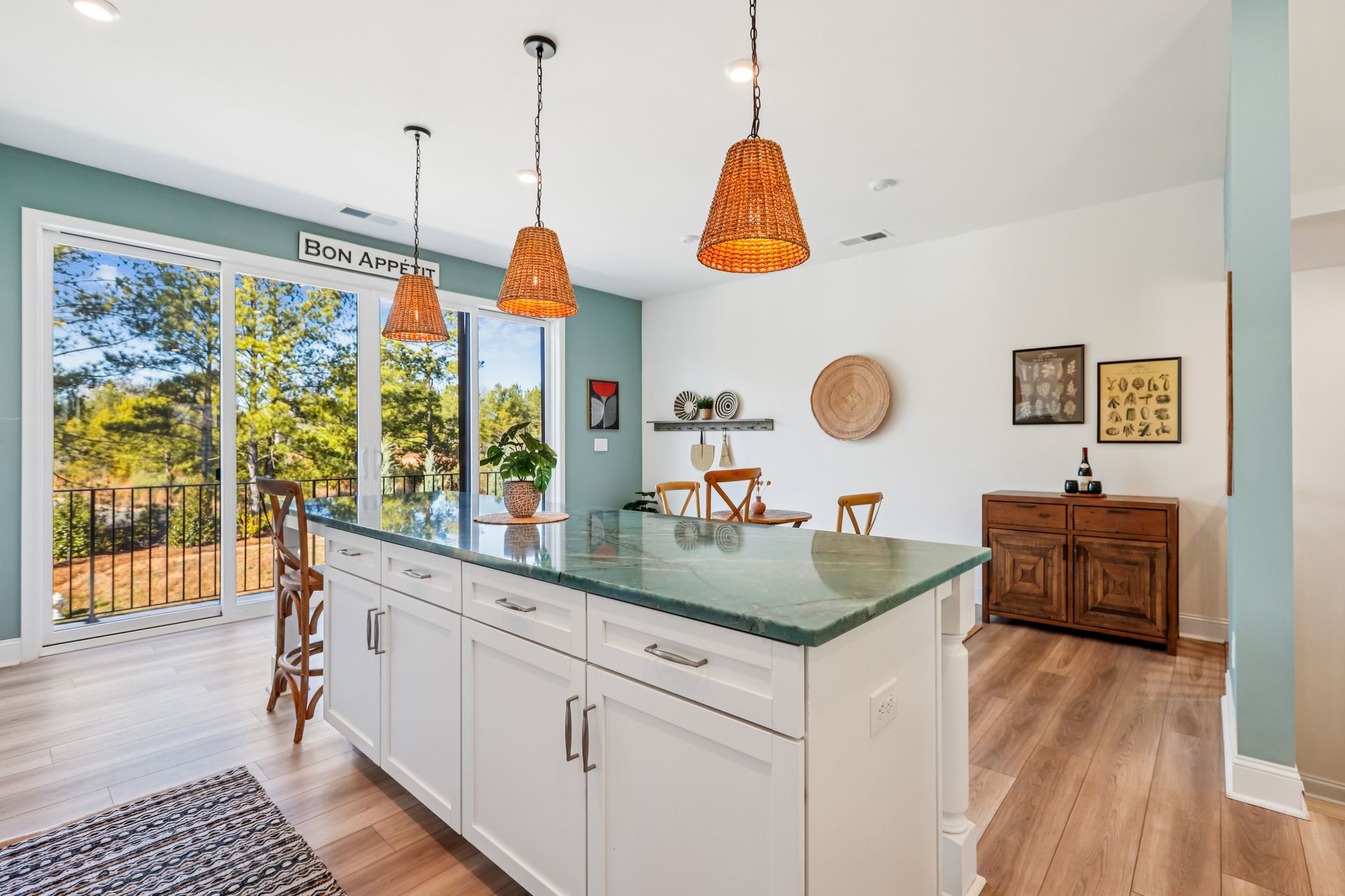 Located in highly sought after Baxter Village in Fort Mill, this contemporary townhome offers a great blend of style, comfort, and convenience. Thoughtfully designed, the home features a gourmet kitchen with an extended island showcasing a custom marble countertop and stainless steel appliances. Dual sliding glass doors open to a private sitting deck, creating a seamless indoor and outdoor living experience.