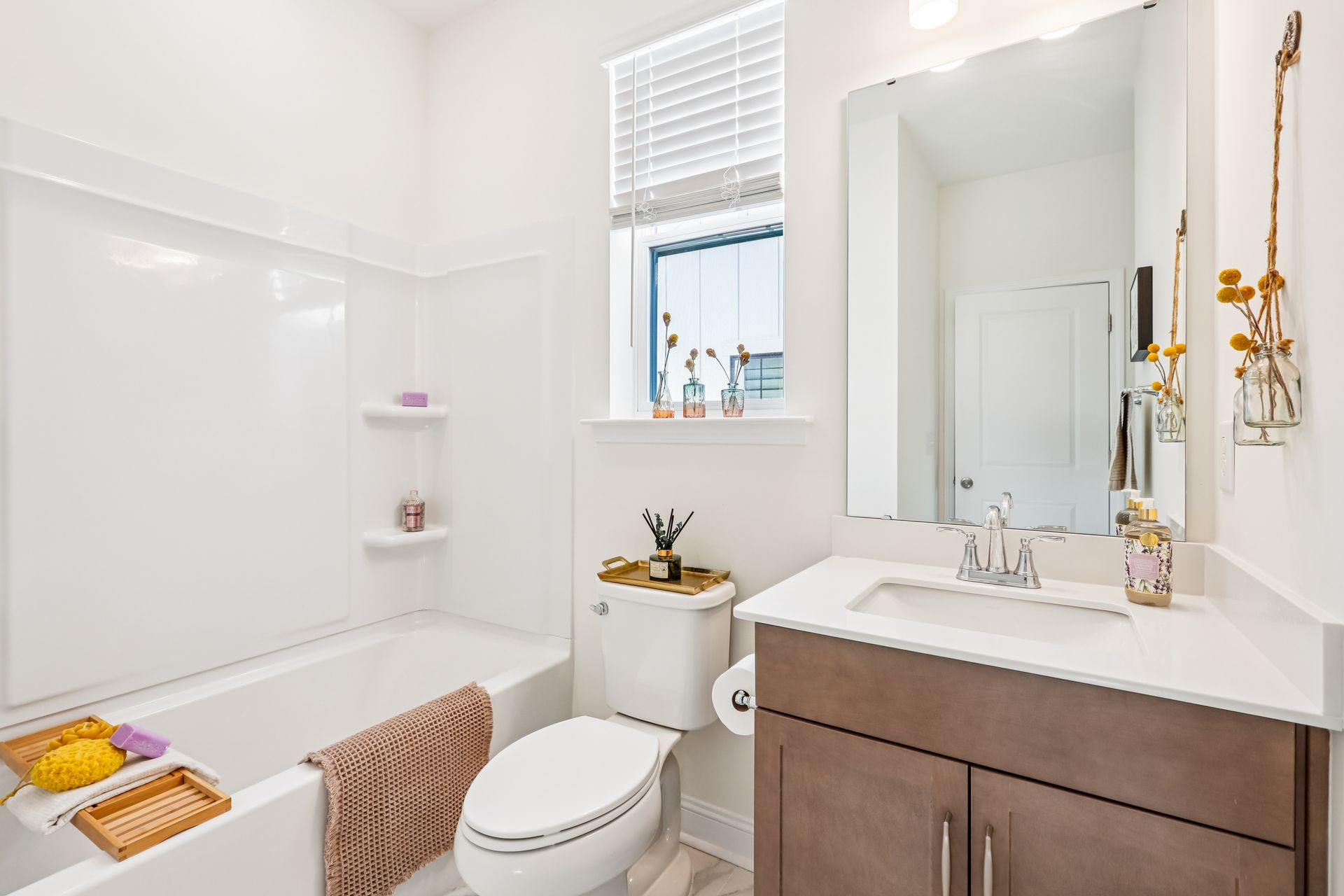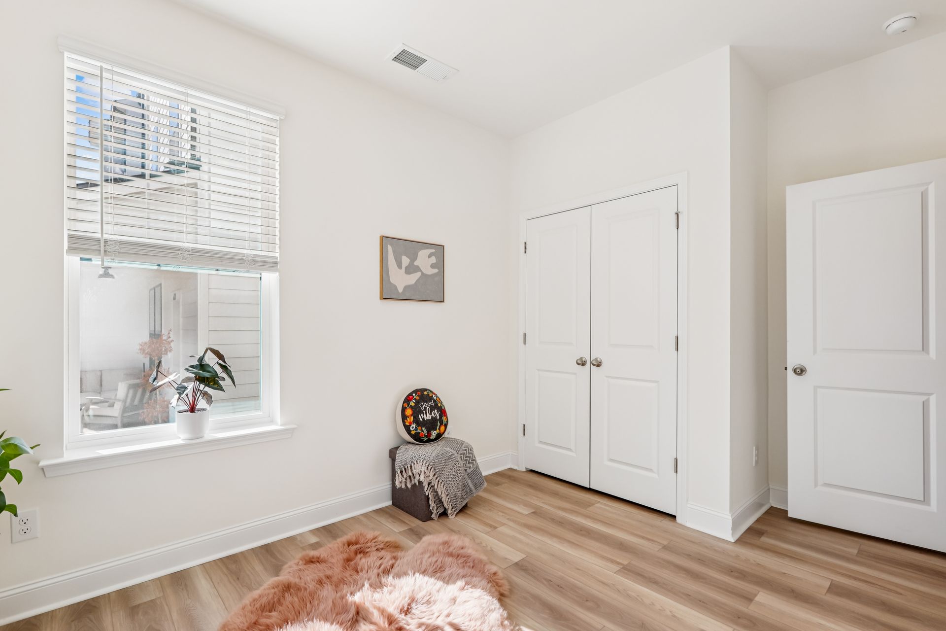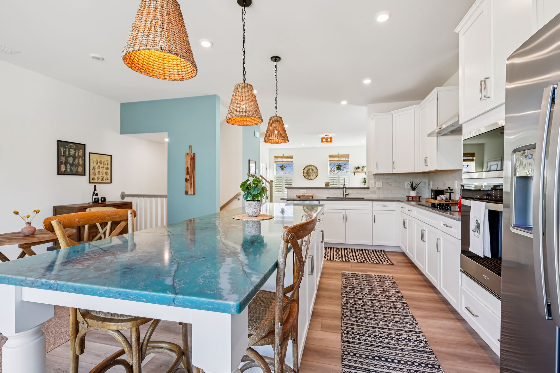The open floor plan effortlessly connects the kitchen and living area, complete with a breakfast bar that is ideal for entertaining. The primary suite includes a spacious closet and a well appointed bathroom featuring a walk-in tiled shower with a bench. Two additional bedrooms and a laundry area are located on the third floor, while the first floor offers a private guest bedroom with a full bath, ideal for visitors or a home office.