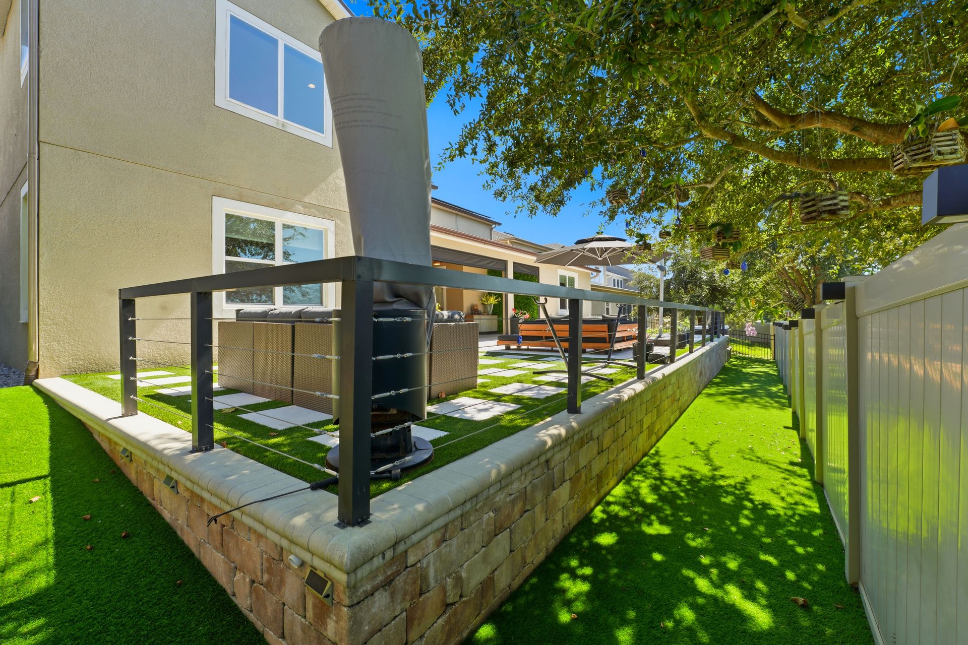 Head outside to a private, unobstructed backyard featuring a jacuzzi, synthetic turf, solar panels, and a fenced yard—the perfect setting for gatherings or quiet relaxation.