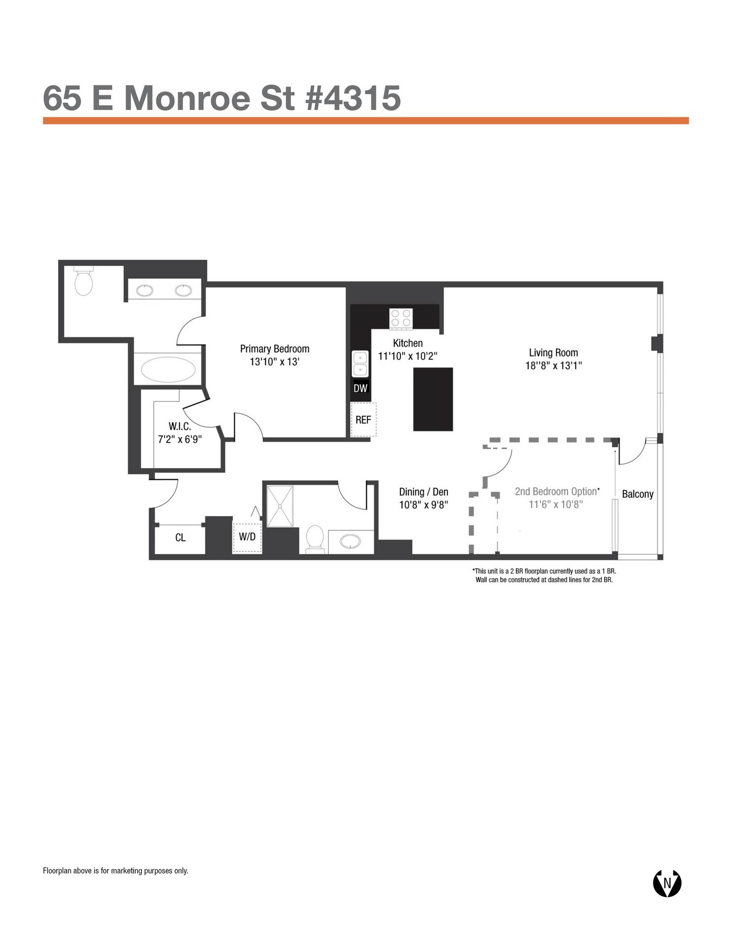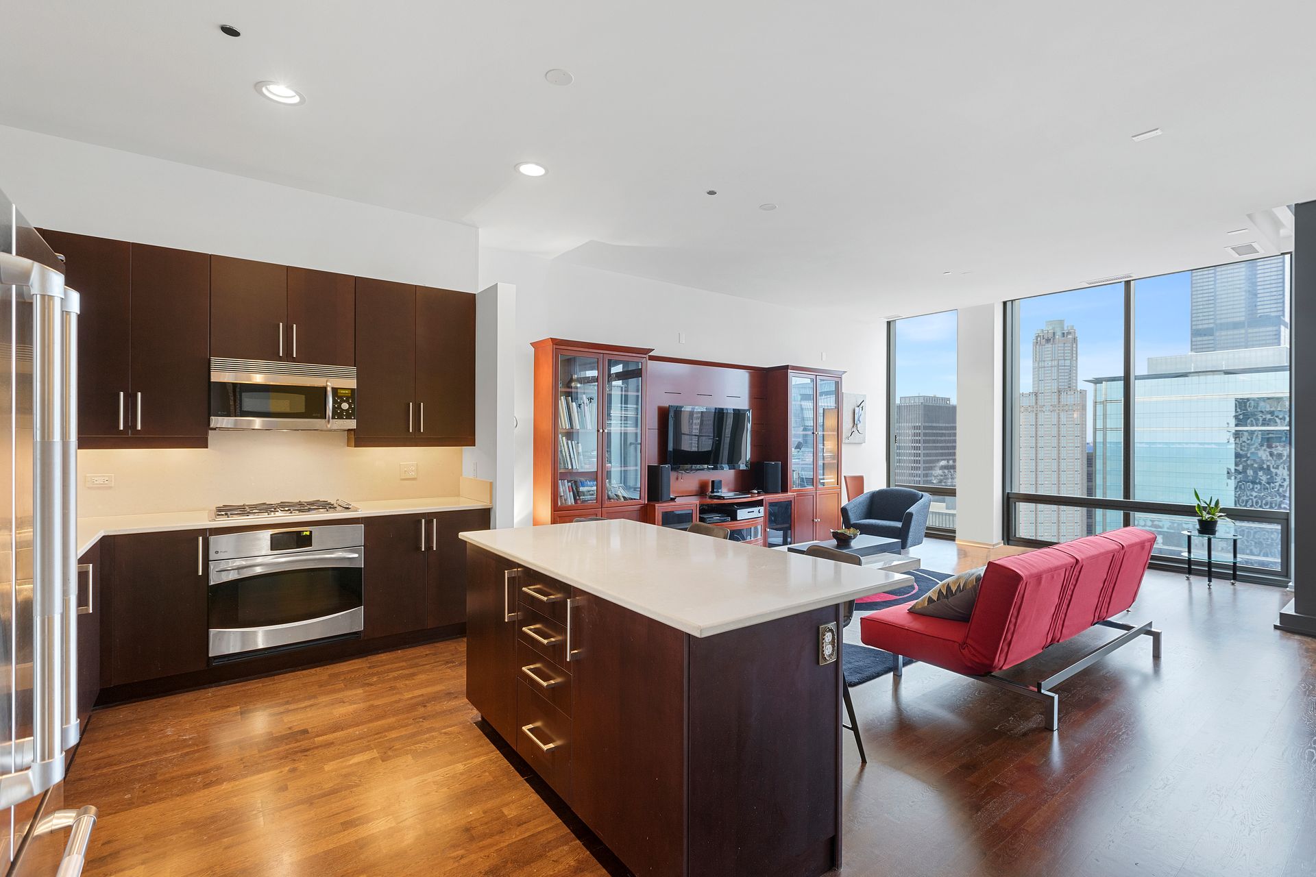 Welcome to this ideal Urban Dwelling, a spacious and updated 2bedroom floorplan that offers unbeatable flexibility and value! This unique condo is perfectly located for all the best Chicago has to offer, with stunning West views and top of the line building amenities. This home offers an open-concept floor plan with a chef-ready kitchen that flows to a generously sized living and dining area - an entertainer's dream! The modern kitchen features quartz counters and a large island with a breakfast bar. This west facing unit has vast views of the city, soaks in the afternoon sun, and allows for easy enjoyment of sunsets from the floor to ceiling windows and the private balcony. The primary bedroom can easily accommodate a king-sized bed, has a professionally organized walk-in closet, and an en-suite bathroom complete with double vanity, marble tile and a jetted tub. This condo delivers on style and convenience with 10' ceilings, in-unit laundry, wood floors, and 2 full bathrooms. Many upgrades include Sivoia motorized shades on all windows, quartz kitchen counters, frameless glass shower door, and new vanity lighting. While currently used as a 1br with a wide-open floorplan, a wall can be built to enclose the 2nd bedroom and allow for an additional office area per the original floorplan. This rare versatility allows you to enjoy the open space now, and to easily convert into a comfortable two-bedroom residence when you are ready. The unit has a storage space, and bike storage is also available. There are options to rent or purchase garage parking in the building. This full amenity building has 24 hour doorstaff; on-site management; a luxurious sundeck with seating, firepit and grills; an outdoor hot tub and indoor lap pool; a spacious fitness center, theater room, party room, and dog run! Centrally located in a vibrant downtown location close to Millennium Park, Art Institute, Symphony, Navy Pier, Theater District, Lake Michigan, Riverwalk and plentiful dining, shopping and nightlife! Seller is offering a closing cost credit of 8k.