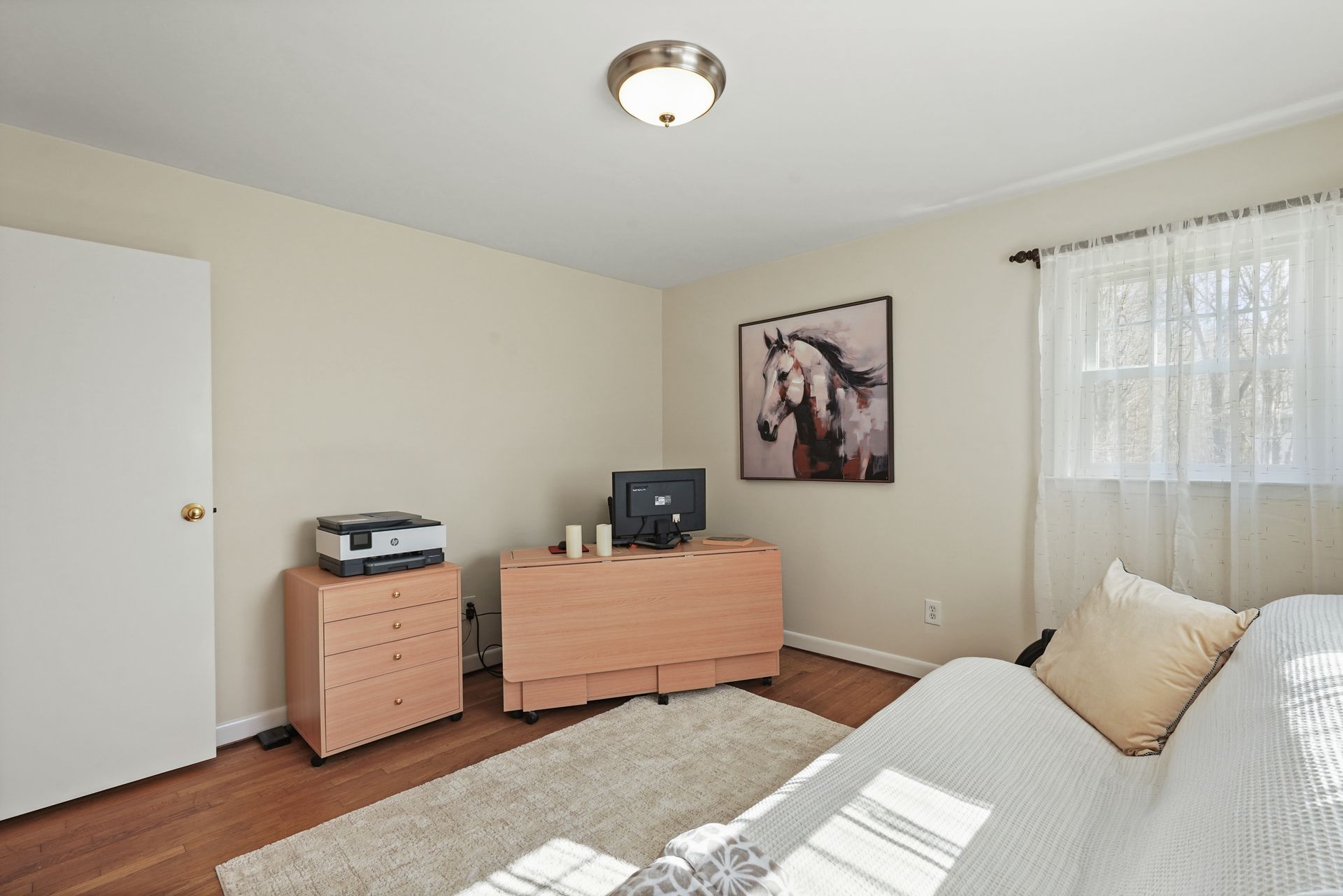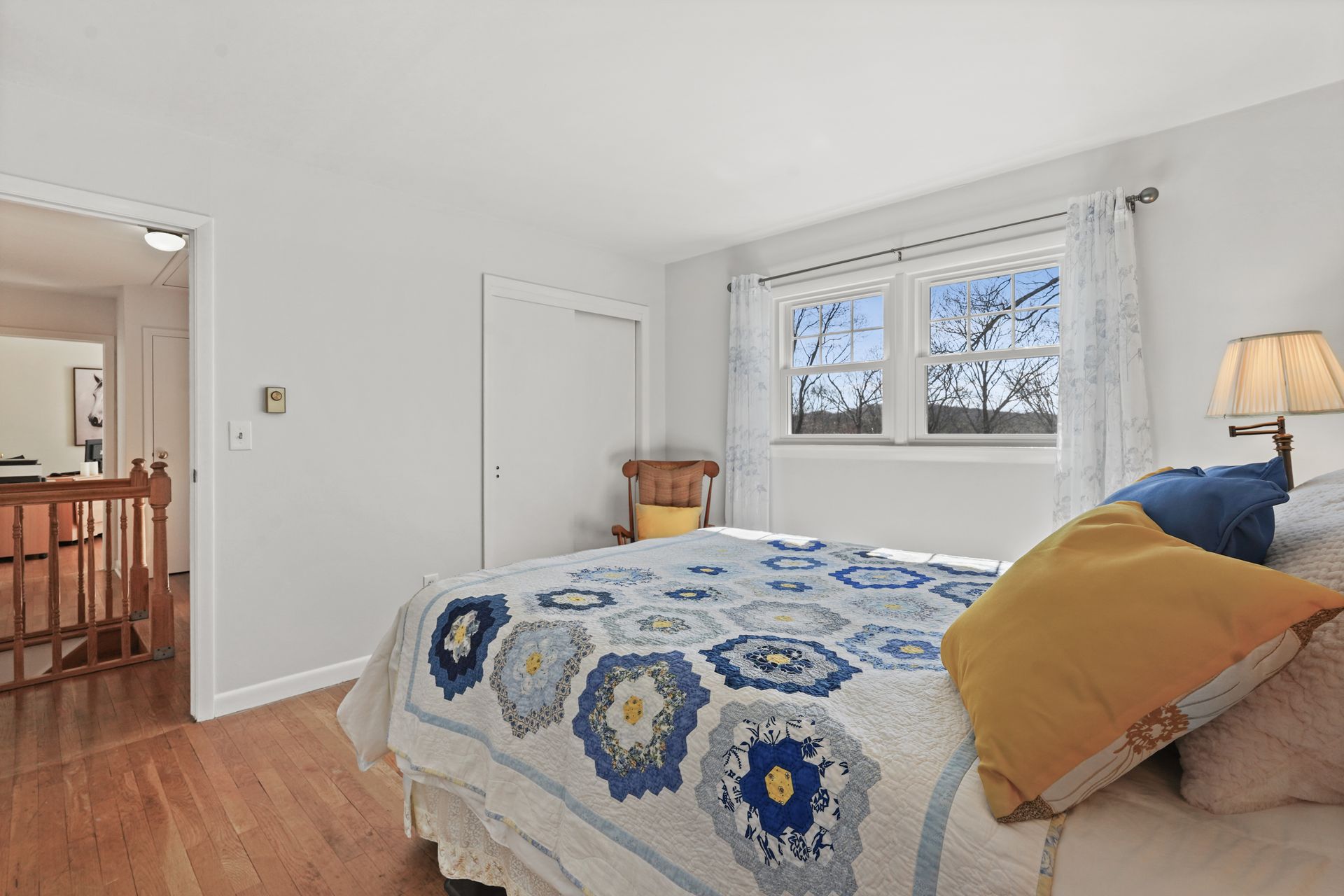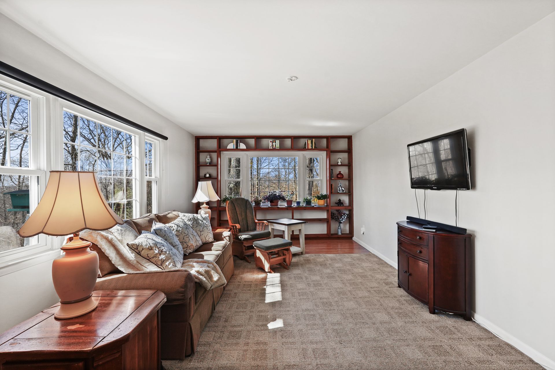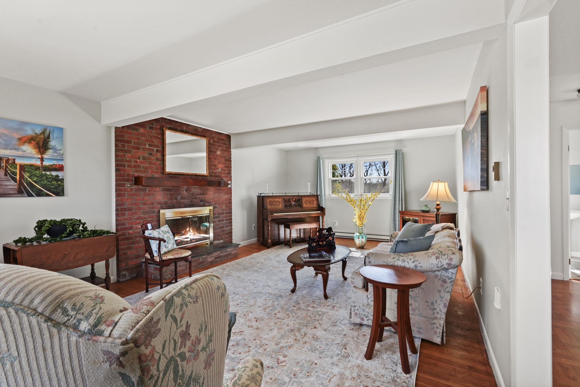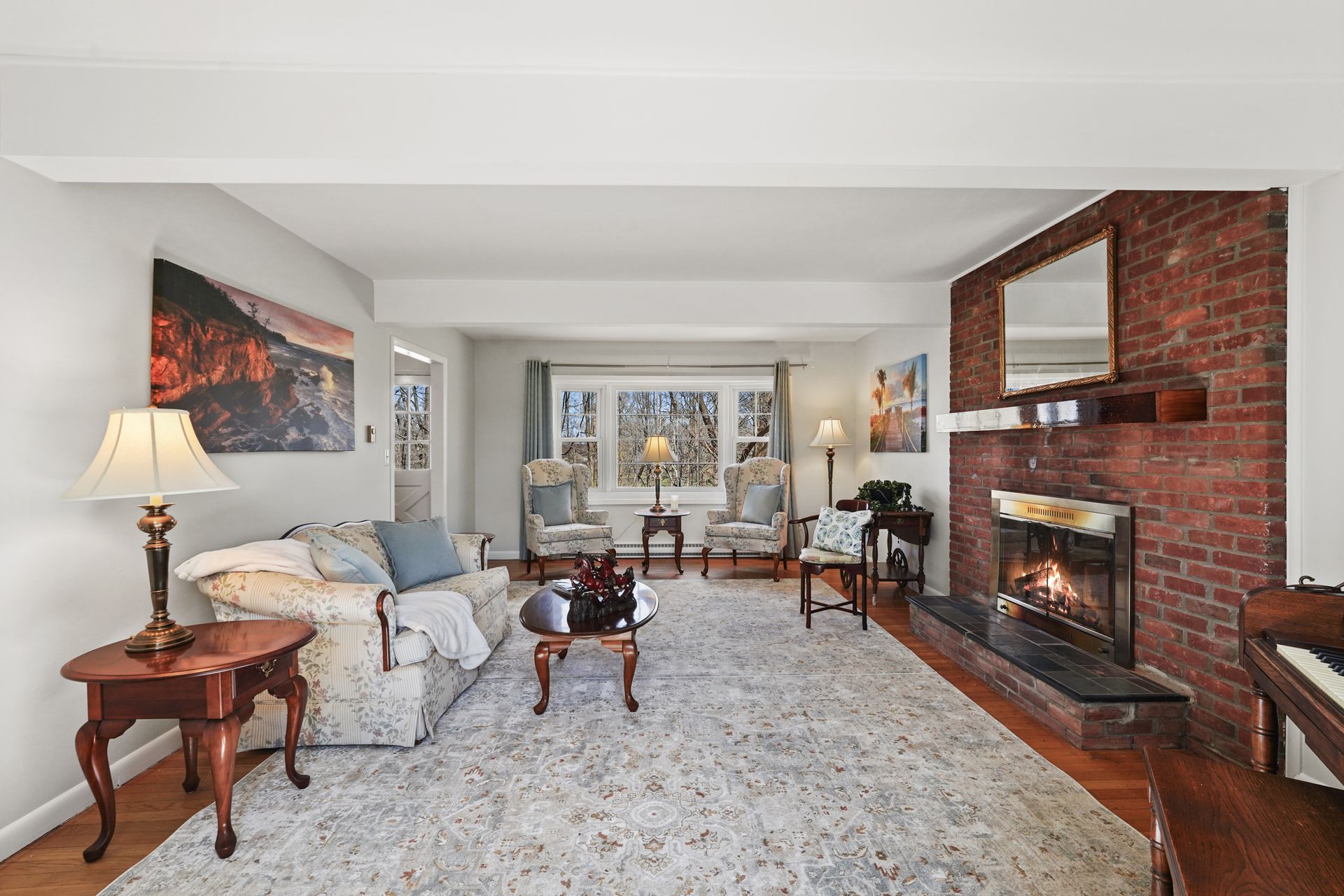 The updated kitchen features quartz countertops, stainless steel appliances, and ample cabinetry. The sun‑filled main level offers a generous living room with a cozy brick fireplace, a formal dining room, and a welcoming family room complete with built‑in bookshelves.