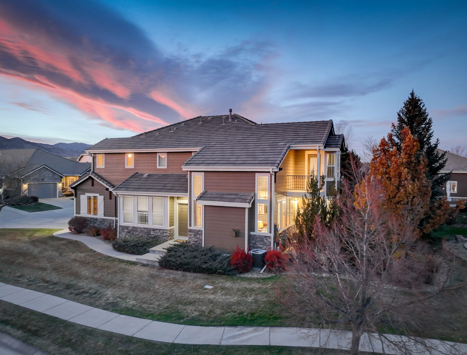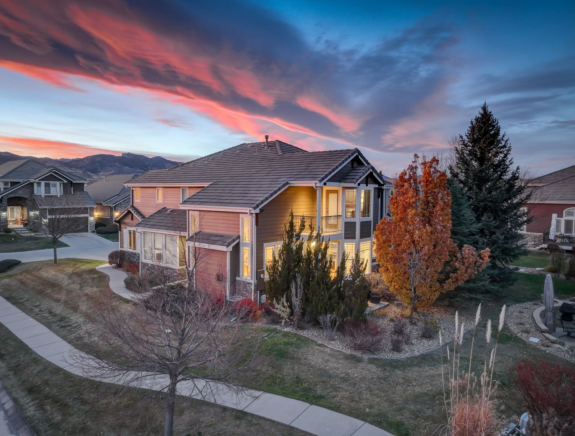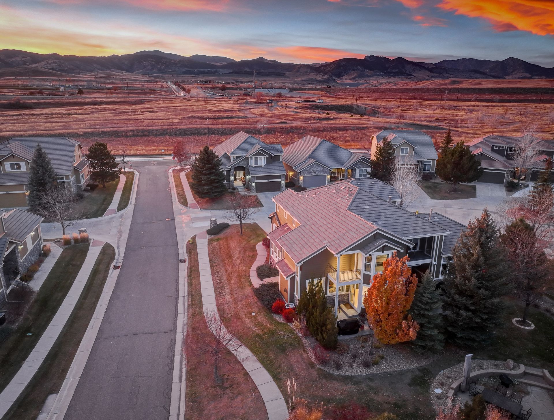 A rare gem! Welcome to Trail Village, an exclusive West Arvada paired home adjacent to breathtaking open space and mountain views. Perfectly situated between Boulder and Golden, and convenient to Denver and the foothills, this location offers the best of all worlds: easy commutes and endless outdoor recreation. Enjoy a low-maintenance lifestyle where the HOA handles yard work and snow removal, leaving you free to savor peaceful evenings on your private patio or explore nearby trails. Inside, find an open-concept floor plan with cathedral ceilings, abundant natural light through tons of windows, beautiful hardwood floors, and a living room with a cozy fireplace. The kitchen features granite countertops, ample cabinetry, a gas stove, and an eat-in dining area that flows to the patio or formal dining room—ideal for entertaining! You'll also find a bright office with double doors, a convenient powder room, and main-level laundry. Head upstairs to three bedrooms, including a spacious primary suite with high ceilings, a five-piece bath, soaking tub, walk-in closet, and private balcony. The unfinished basement offers high ceilings, large windows, and endless options, including a media room, gym, or fourth bedroom. Enjoy morning coffee on the balcony or unwind on the private patio tucked among mature trees. Attached two-car garage and quiet cul-de-sac location. Near Tucker Lake, Ralston Trail, Table Mountain, White Ranch Park, West Woods Golf Course, and Hwy 93. Come experience Trail Village living for yourself!