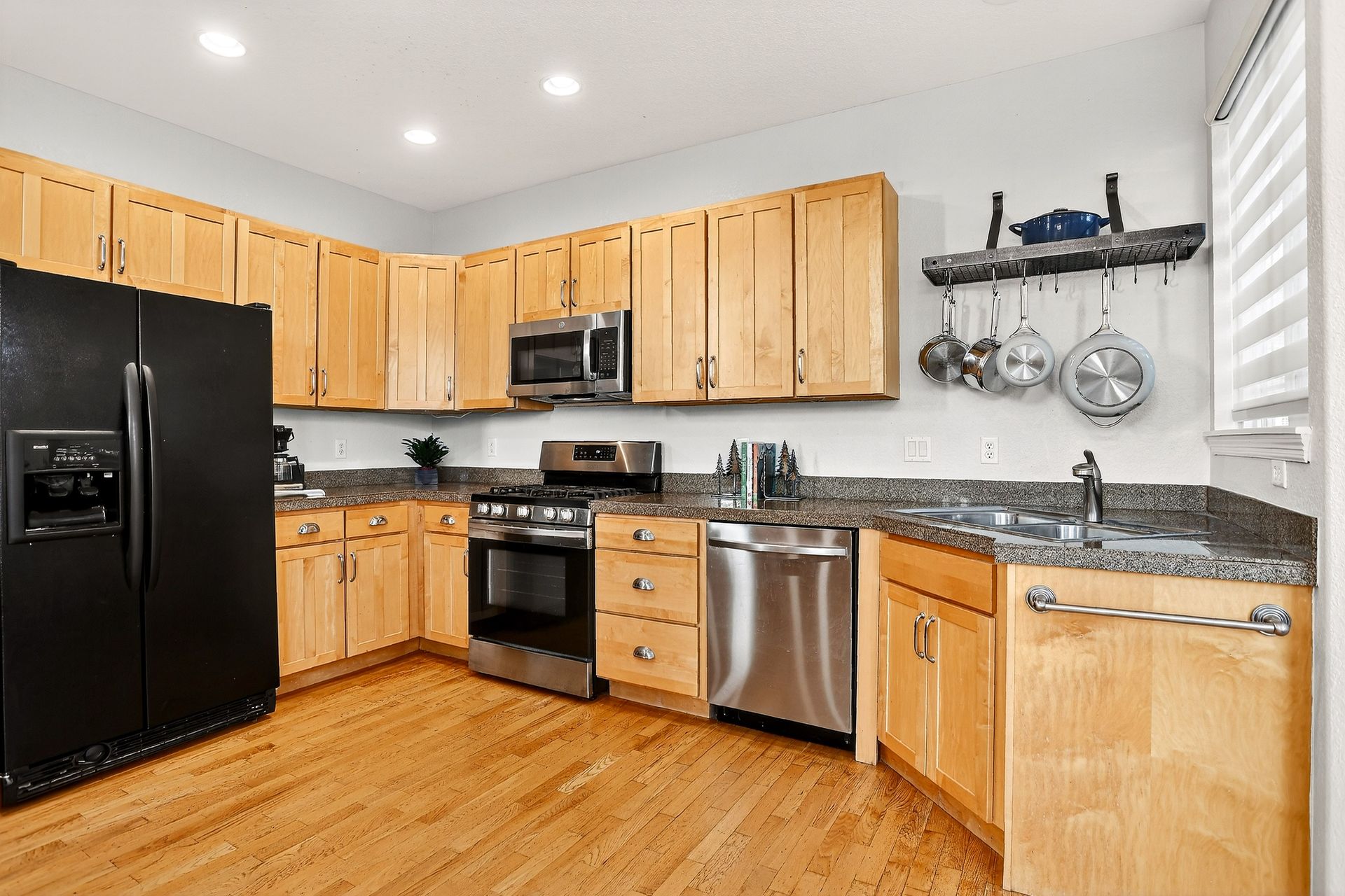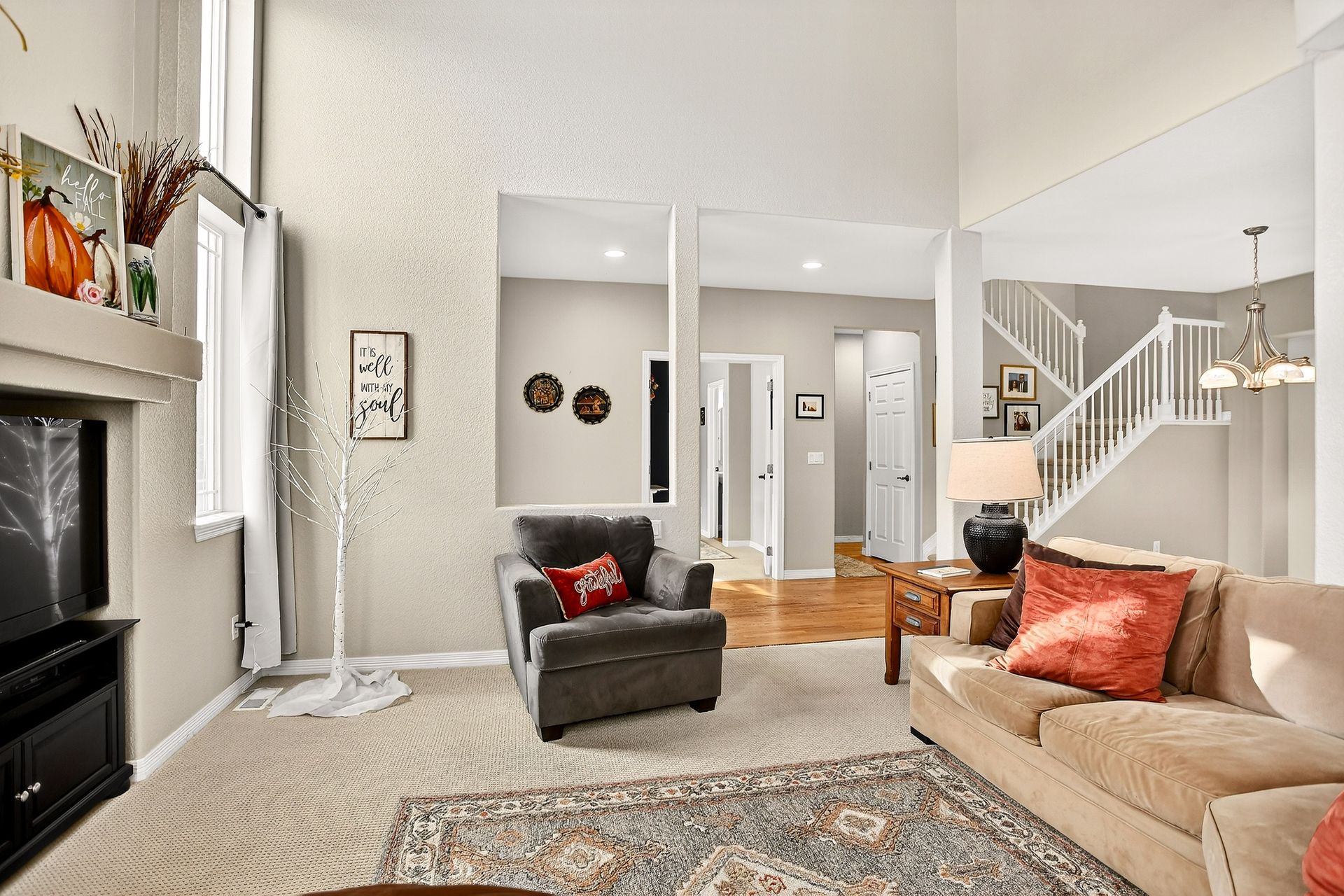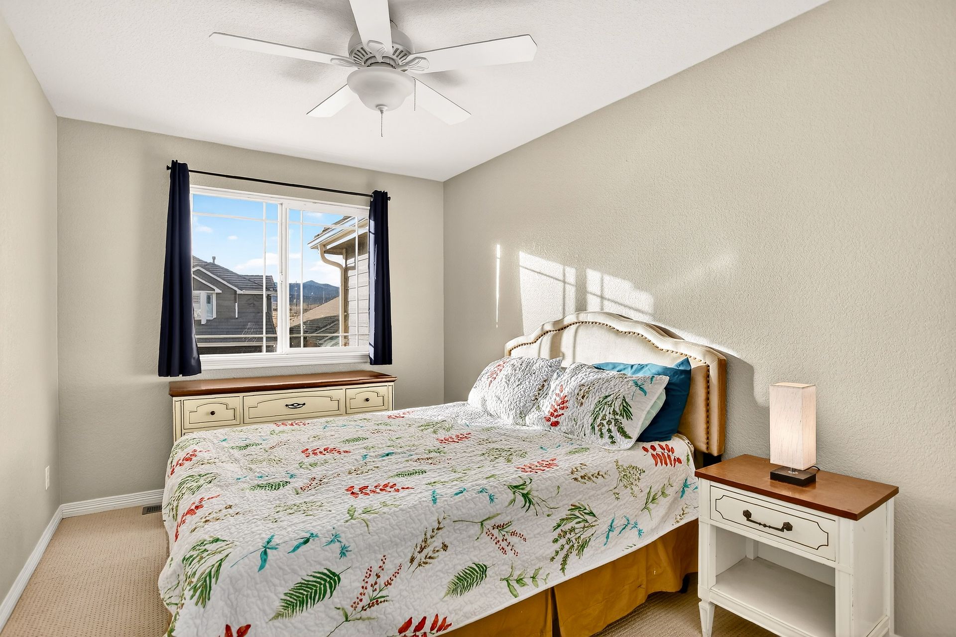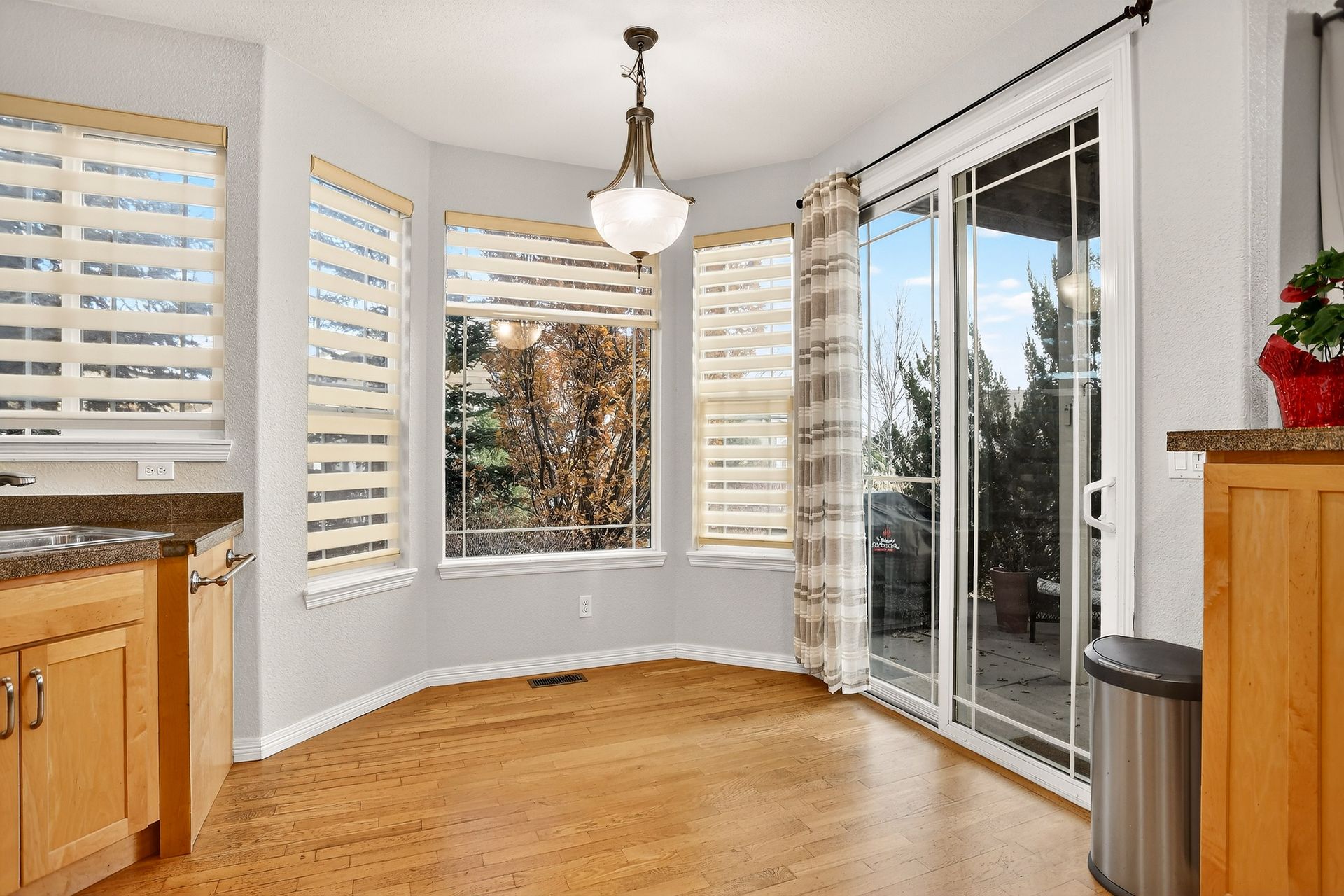 A rare gem! Welcome to Trail Village, an exclusive West Arvada paired home adjacent to breathtaking open space and mountain views. Perfectly situated between Boulder and Golden, and convenient to Denver and the foothills, this location offers the best of all worlds: easy commutes and endless outdoor recreation. Enjoy a low-maintenance lifestyle where the HOA handles yard work and snow removal, leaving you free to savor peaceful evenings on your private patio or explore nearby trails. Inside, find an open-concept floor plan with cathedral ceilings, abundant natural light through tons of windows, beautiful hardwood floors, and a living room with a cozy fireplace. The kitchen features granite countertops, ample cabinetry, a gas stove, and an eat-in dining area that flows to the patio or formal dining room—ideal for entertaining! You'll also find a bright office with double doors, a convenient powder room, and main-level laundry. Head upstairs to three bedrooms, including a spacious primary suite with high ceilings, a five-piece bath, soaking tub, walk-in closet, and private balcony. The unfinished basement offers high ceilings, large windows, and endless options, including a media room, gym, or fourth bedroom. Enjoy morning coffee on the balcony or unwind on the private patio tucked among mature trees. Attached two-car garage and quiet cul-de-sac location. Near Tucker Lake, Ralston Trail, Table Mountain, White Ranch Park, West Woods Golf Course, and Hwy 93. Come experience Trail Village living for yourself!
