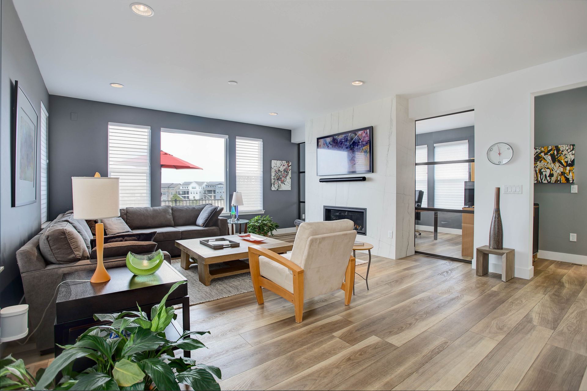 3-car finished and insulated garage with granite-flake Epoxy floor. Enclosed back yard. Two furnaces and whole house humidifiers. Eero Wi-Fi boosters. Programmable Smart switches. Tankless water heater. Gas fireplace insert with heat circulation fan system. Switched outlet on eve soffit for holiday lighting. Covered front porch. Ring doorbell. South-facing for Winter snow melt.
