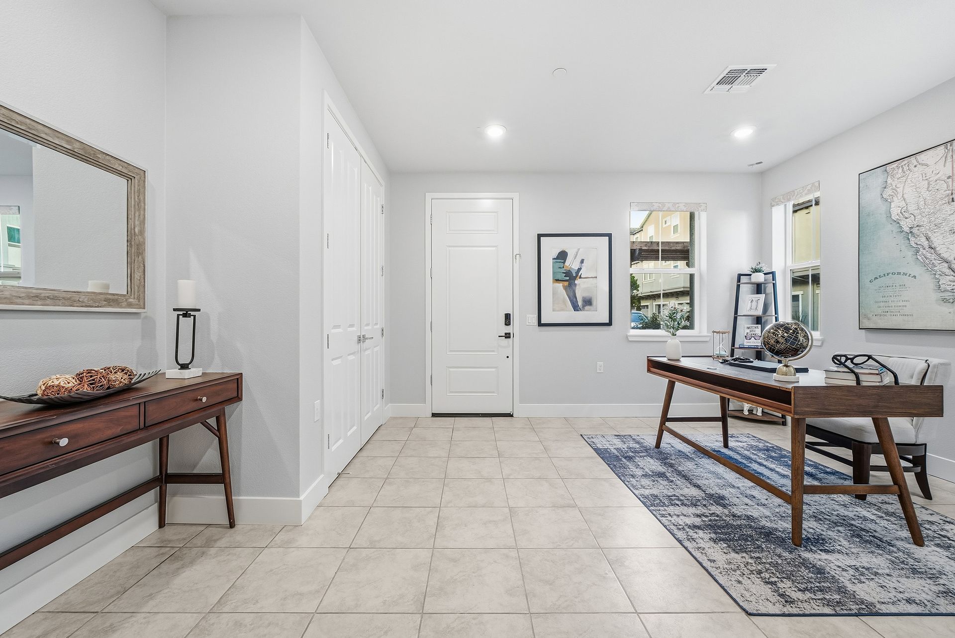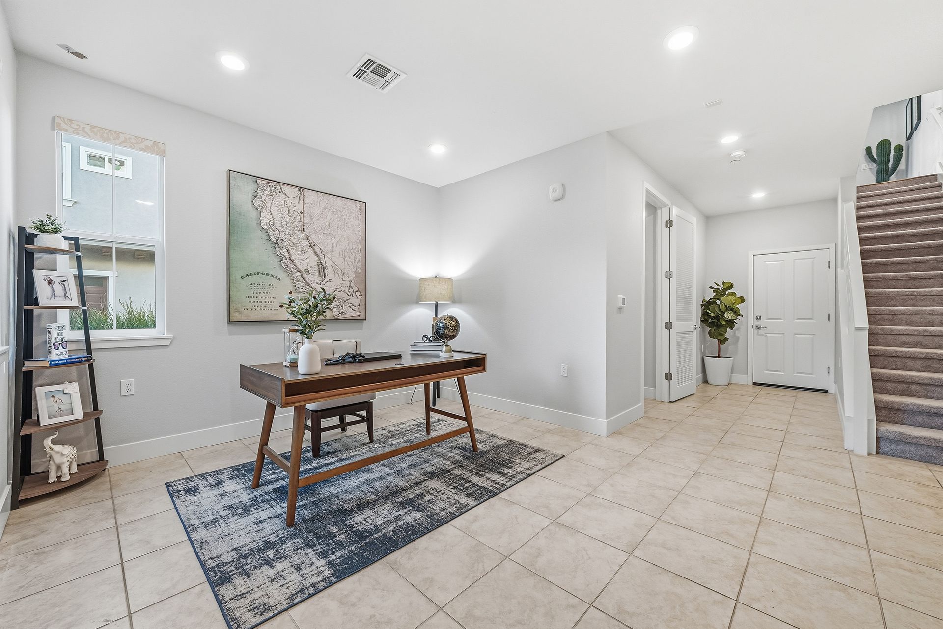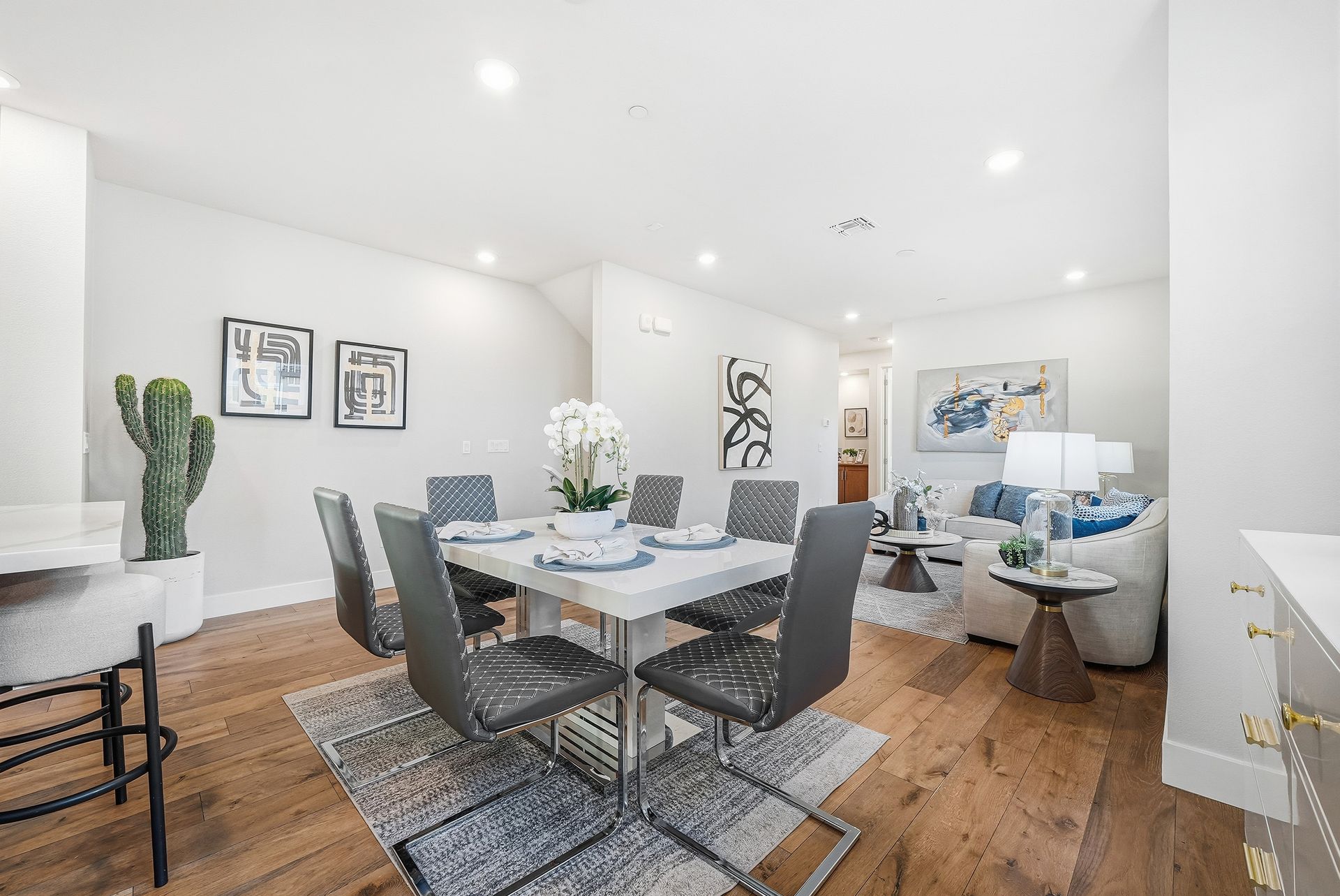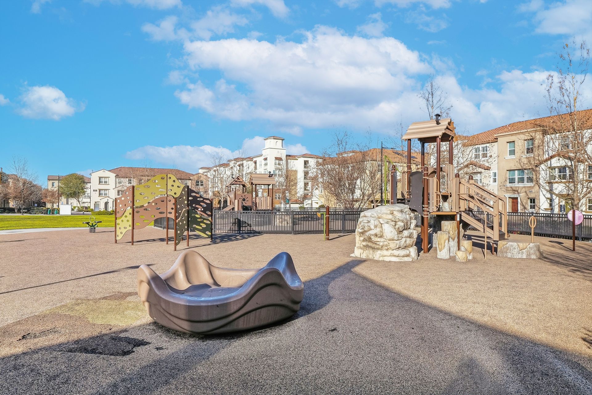 Nestled in a prime east-facing corner location with views of Bob McGuire Park, this stunning townhome offers luxury living in the highly sought-after Siena community. Built in 2019 and featuring the largest floor plan, this nearly new 3-beds, 3.5-baths residence spans approximately 1,988 sq ft and is filled with natural light, 9-foot ceilings, and an open-concept layout. The first level offers a versatile bonus room with a half bath and laundry closet, ideal for a home office or gym. The main living level features a spacious living and dining area and a gourmet stadium-style kitchen with premium cabinetry, white quartz countertops, large island, mosaic backsplash, and stainless steel Italian Bertazzoni appliances (Free standing gas range, Microwave dishwasher and refrigerator). A bedroom with a full bath on this level adds flexibility. The top level includes two private bedroom suites, highlighted by a luxurious primary retreat with a walk-in closet and spa-like bath with dual sinks and a glass-enclosed shower. Walk to Bob McGuire Park with tennis courts, playground, BBQ area, and amphitheater. Close to Milpitas BART, 680/880/237, Great Mall, Trader Joe’s, Safeway, dining, and top-rated schools: Mabel Mattos Elementary, Rancho Milpitas Middle, and Milpitas High School.