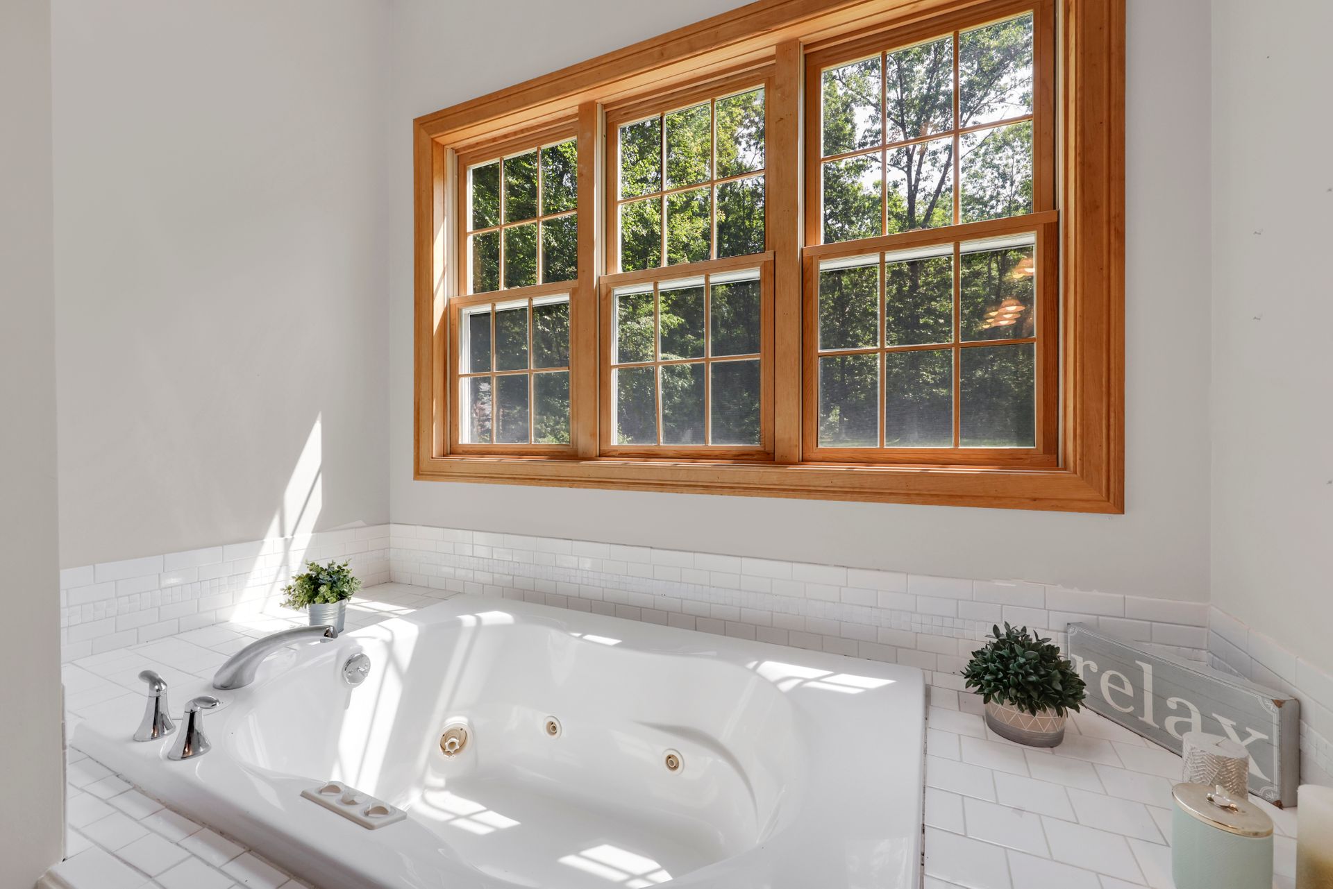 The primary suite is a private sanctuary with cathedral ceilings, a spa-like ensuite bath complete with a stand-up shower and Whirlpool tub, and an oversized walk-in closet.