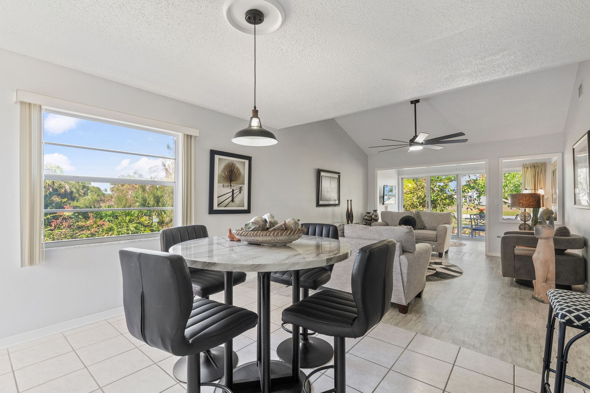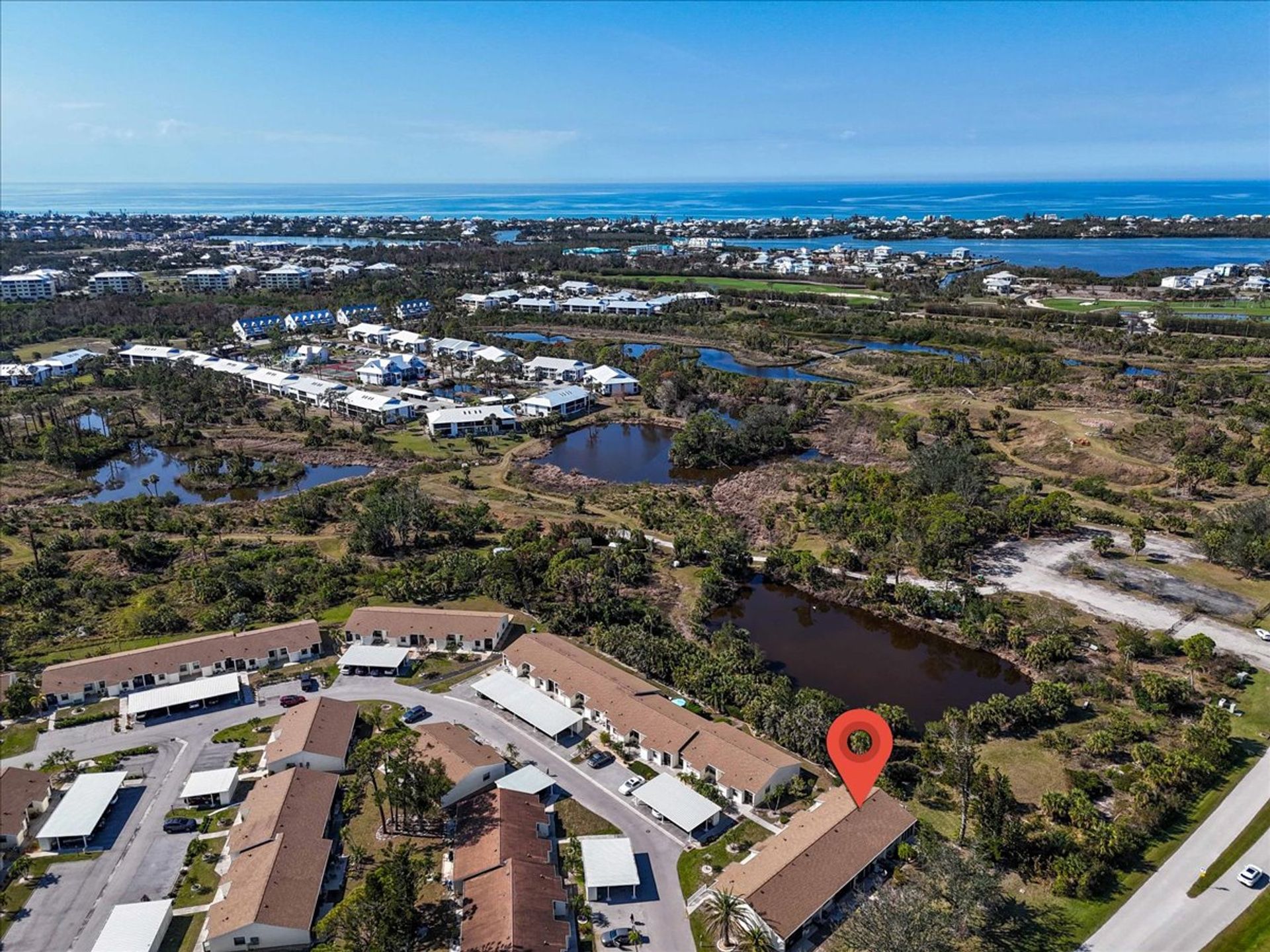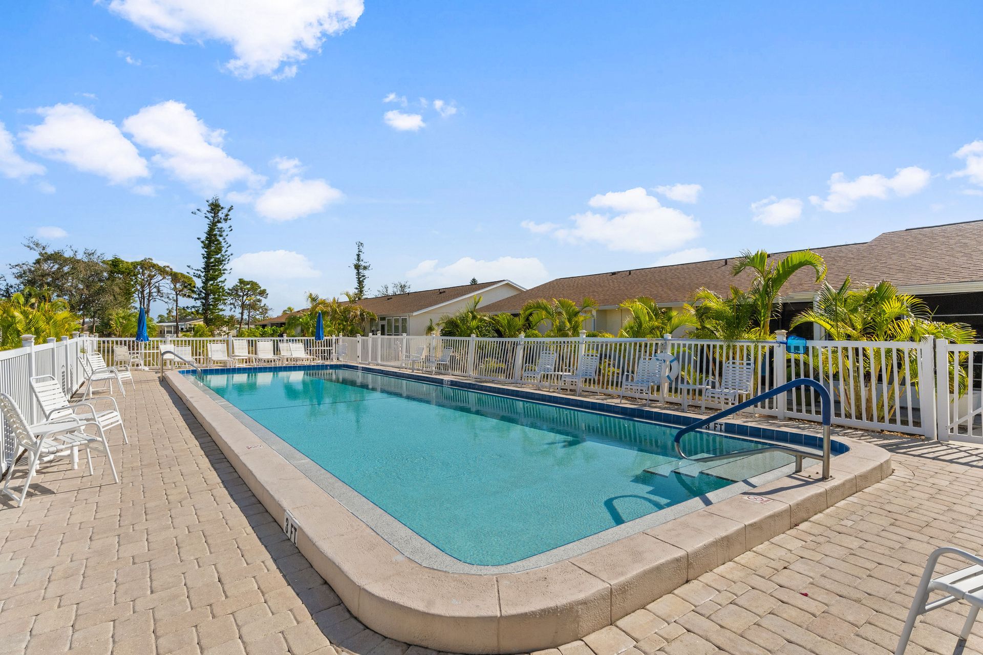 Stunning Maintenance-Free 55+ Condo with Serene Views and Modern Comforts! FLOOD INSURANCE NOT REQUIRED. Casual elegance meets nature in this BEAUTIFULLY FURNISHED end-unit condo with 2 bedrooms and 2 bathrooms. A perfect sanctuary for relaxation and rejuvenation including an HOA that takes care of the mowing, exterior repairs and more! This PRIVATE and COVETED LOCATION within the community is just seconds away from the Wildflower Preserve for wildlife viewing and nature hikes. Inside find an updated open-concept living/dining area with cathedral ceiling and sightlines to the large back wall of sliders that let in a bounty of light. Bonus: the large dining room window is exclusive to end units. Attractive vinyl plank flooring and premium lighting and fans enhance the modern aesthetic. A standout feature is the 4-season Florida room, which has been enclosed and modified for seamless step-free entry. A galley kitchen provides all the appliances and countertop space you’ll need to prep and cook meals. The spacious primary suite includes an ensuite bathroom with a walk-in shower and a split bedroom plan ensuring privacy for all. A 2nd bedroom suits guests well with a nearby 2nd bathroom. The patio backs to a lovely blooming orchid tree and is an ideal spot for outdoor entertaining or simply soaking in the tranquil surroundings. Plenty of storage space in the hall closet, interior laundry room and accessible attic space. The dedicated carport and storage shed provide protection for your vehicle, beach chairs and sports gear. The plumbing has already been re-piped overhead, a new breaker panel installed in 2024 and a new roof in 2023. The Village at Wildflower community has a heated pool and is located close to Gulf beaches, historic Boca Grande, restaurants, grocery stores, and essential medical services. For those who love outdoor activities, you'll find hiking trails right next door and several golf courses nearby. Enjoy easy access to parks, farmers markets, festivals, and live music on Manasota Key and Dearborn Street. Whether you're looking for a permanent residence or a seasonal getaway, this condo offers everything you need for an active lifestyle combined with peaceful living. Schedule your private showing today!
