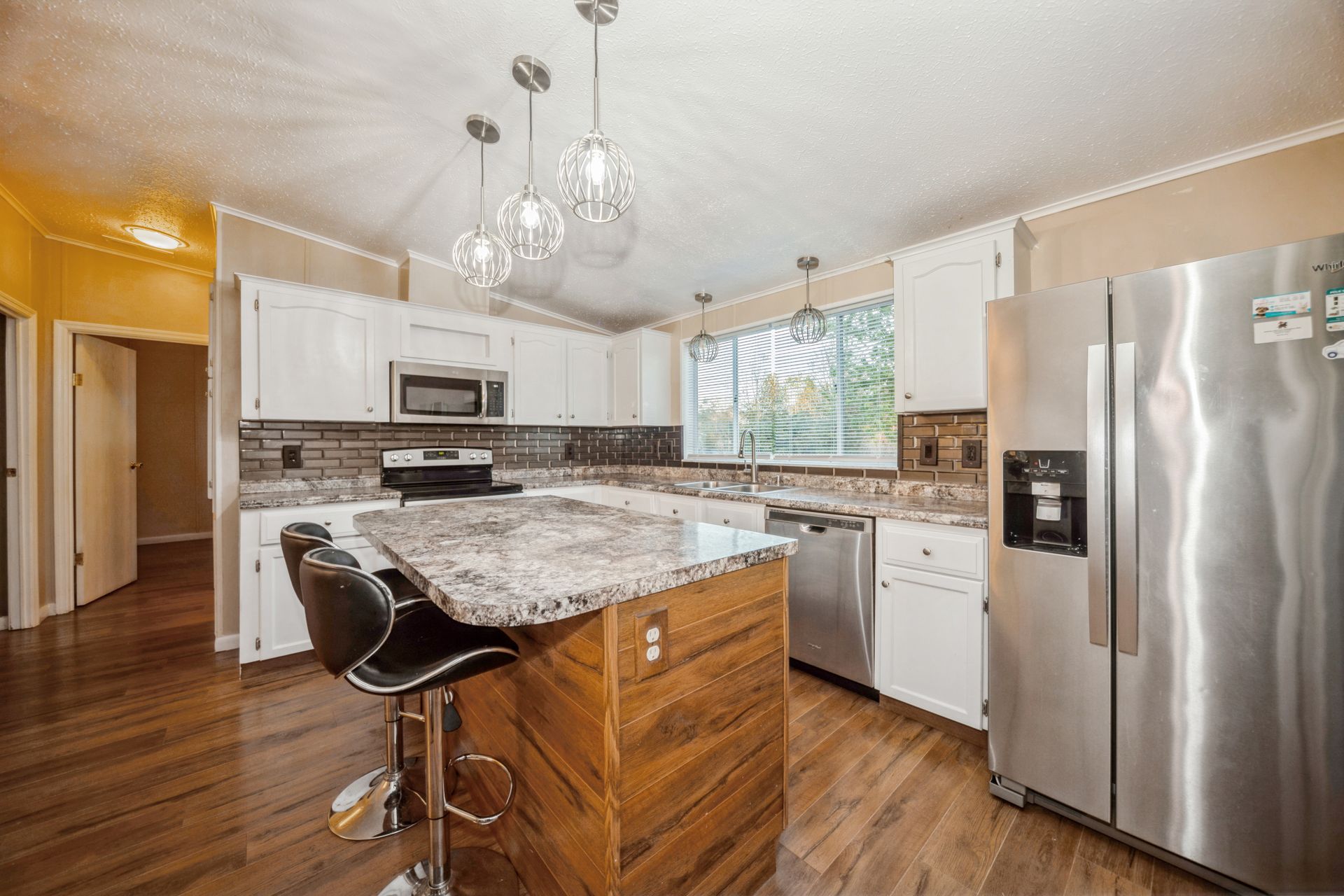 This beautifully updated three bedroom, two bathroom home sits on over half an acre lot with a fully fenced yard with a shed. The split floor plan offers privacy, featuring a spacious kitchen with an island and modern updates throughout. The primary suite includes a walk-in closet and en-suite bath.