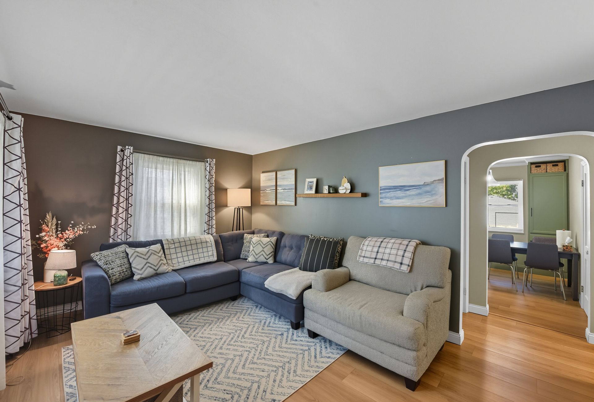 Upgrades inside and out set this home apart. A new roof and gutters (2023) and new entry and storm doors (2024) provide lasting value before you even step inside. The first floor is finished in LVP throughout, leading into a living room centered around a custom entertainment wall with built-in storage (2023). The kitchen/dining area adds custom cabinets and a hall tree, combining function with clean modern design. Kitchen and bath finishes are updated, and all appliances remain except the refrigerator. Outdoors, a fenced yard offers privacy and room to gather on a large patio. The oversized two-car detached garage provides generous storage or workspace, while the driveway easily fits four additional vehicles. Maintained with care and attention to detail, this home delivers thoughtful improvements, flexible space, and everyday convenience in one complete package.