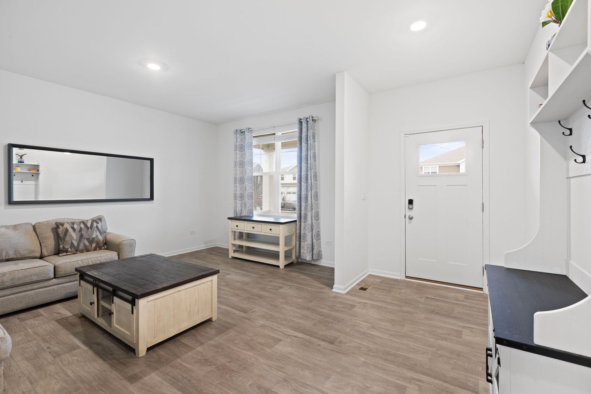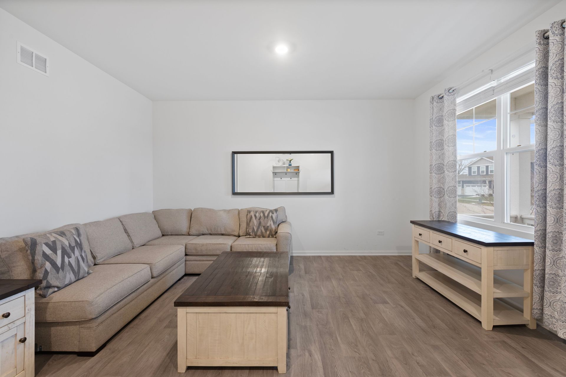 Welcome home to your beautiful future home in the sought-after Highland Woods neighborhood! This scenic homesite features Hardie siding, brick wainscoting, and a welcoming front porch with railings! The popular Henley plan offers a thoughtfully designed layout including a flex room, four bedrooms, two and one-half baths, and nine-foot first-floor ceilings with a full basement. Entertaining is effortless in the open-concept kitchen and family room, highlighted by a large island with seating, 42-inch designer white cabinetry with crown molding and soft-close doors and drawers, a walk-in pantry, stainless steel appliances, quartz countertops, and easy-to-maintain luxury vinyl plank flooring. Upstairs, a spacious loft provides flexible space ideal for a home office, media room, or play area. The expansive primary suite offers a private retreat with an en-suite bath featuring dual raised-height quartz vanities, a walk-in shower with a ceramic tile surround, and clear glass doors. Three additional bedrooms, a full hall bath, a linen closet, and a convenient second-floor walk-in laundry room complete the upper level. Highland Woods is thoughtfully designed with striking monuments, a scenic, tree-lined boulevard, and outstanding amenities, including five miles of walking paths, an 18-acre lake, a clubhouse, pools, tennis and volleyball courts, and more. Ideally located near I-90, Routes 72, 47, 20, and Randall Road, with convenient access to the Metra for an easy commute to the city. This home includes America's Smart Home Technology, featuring a smart video doorbell, a Honeywell Thermostat, a smart door lock, Deako smart light switches, and more.