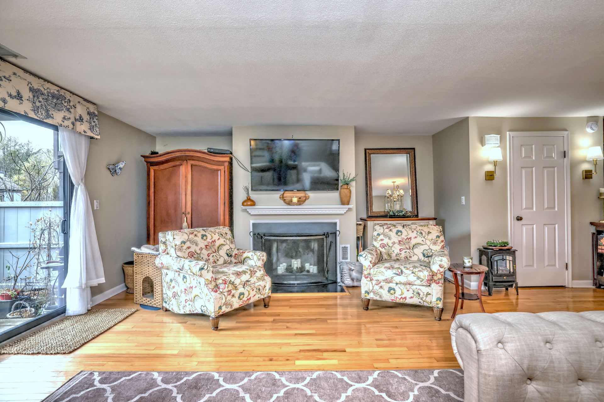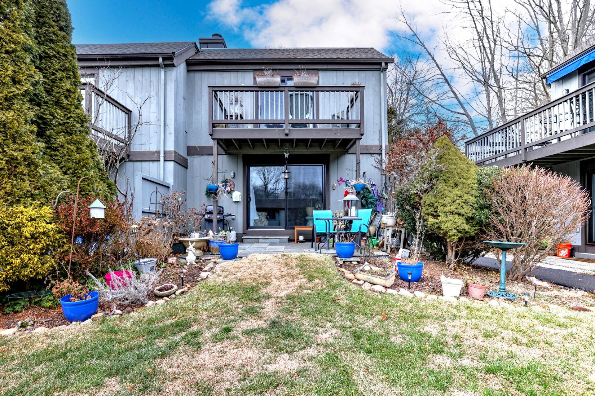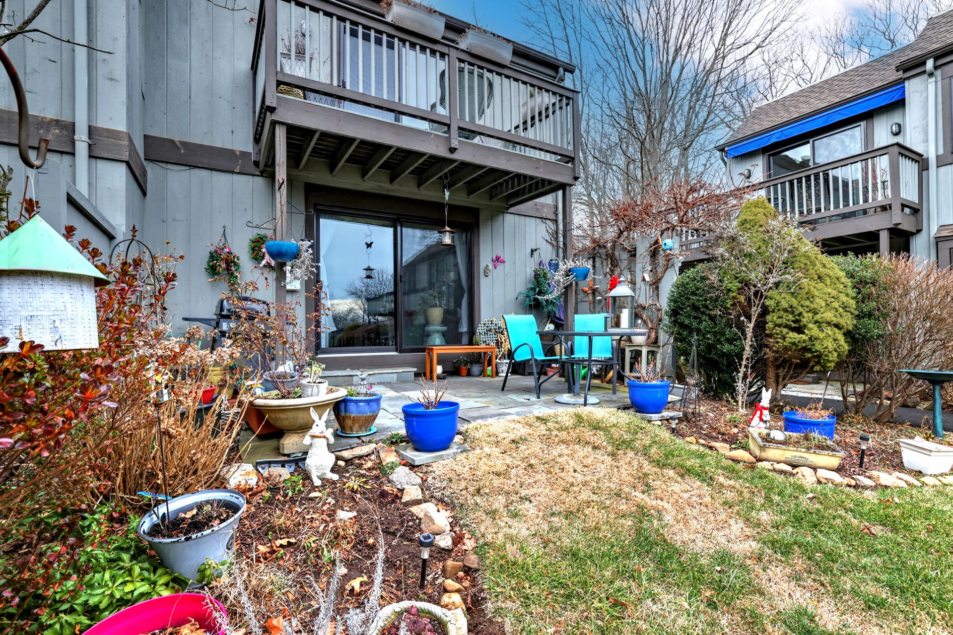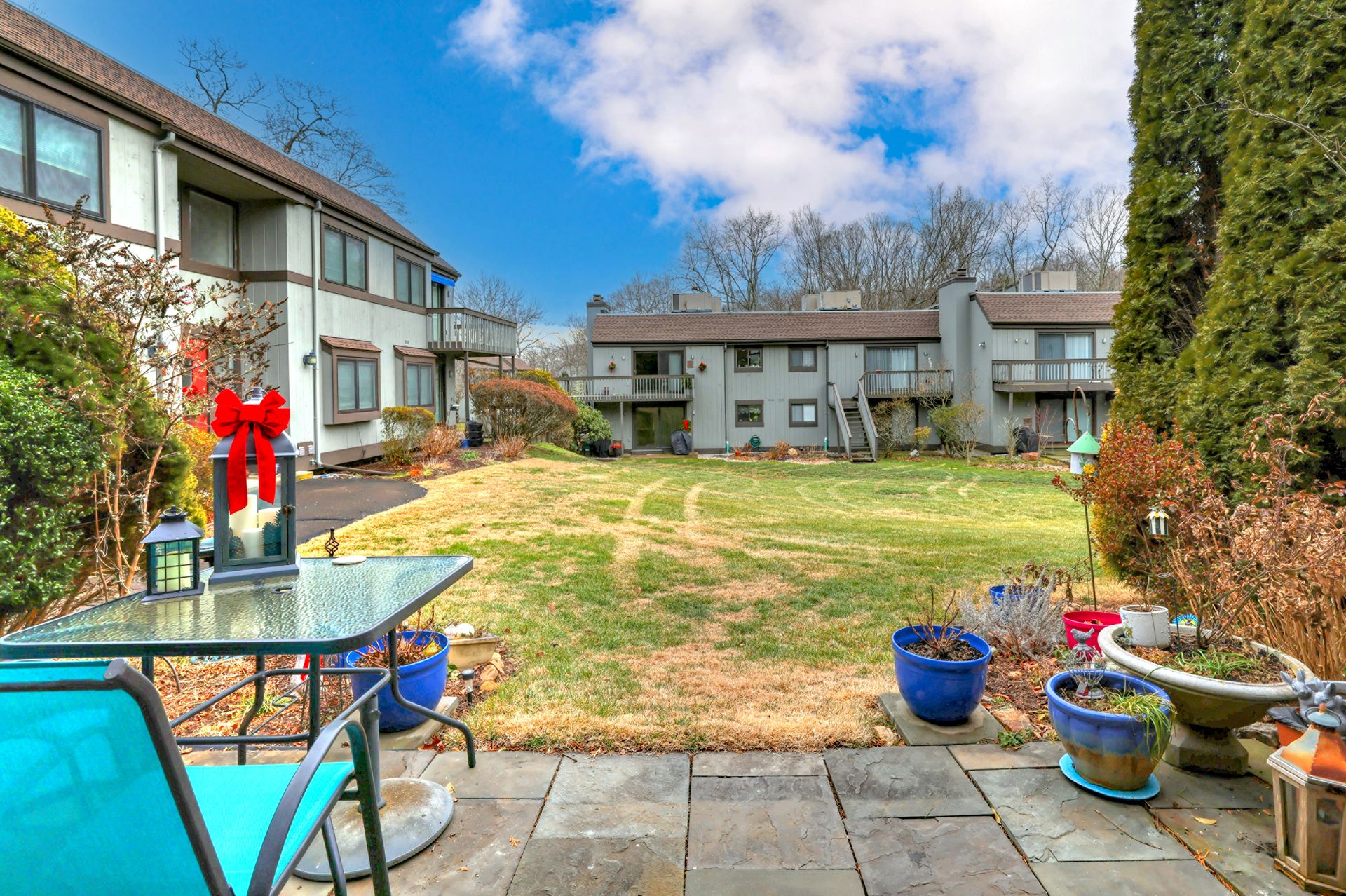 The open living room/dining room layout includes a fireplace and a sliding door that opens to a private, sun-filled patio, great for relaxing or entertaining. Upstairs, the primary bedroom features its own slider to a private porch with southern exposure, a private full bath, and generous closet space. A second large bedroom offers double closets, and an additional full bath serves the second floor. Laundry is conveniently located between the bedrooms, while a powder room on the first floor adds everyday functionality.