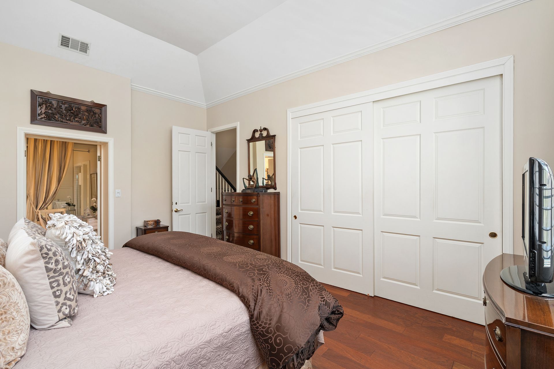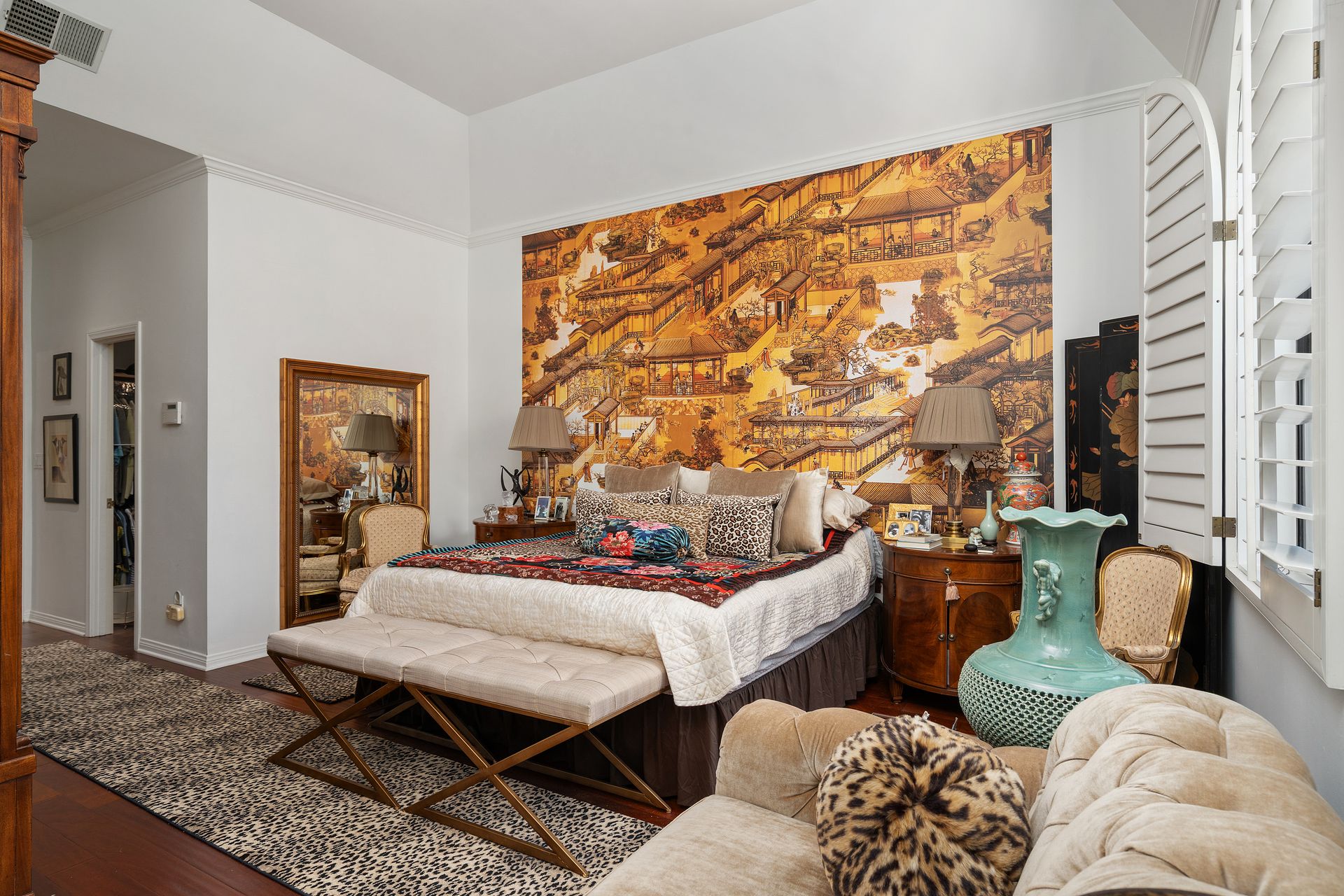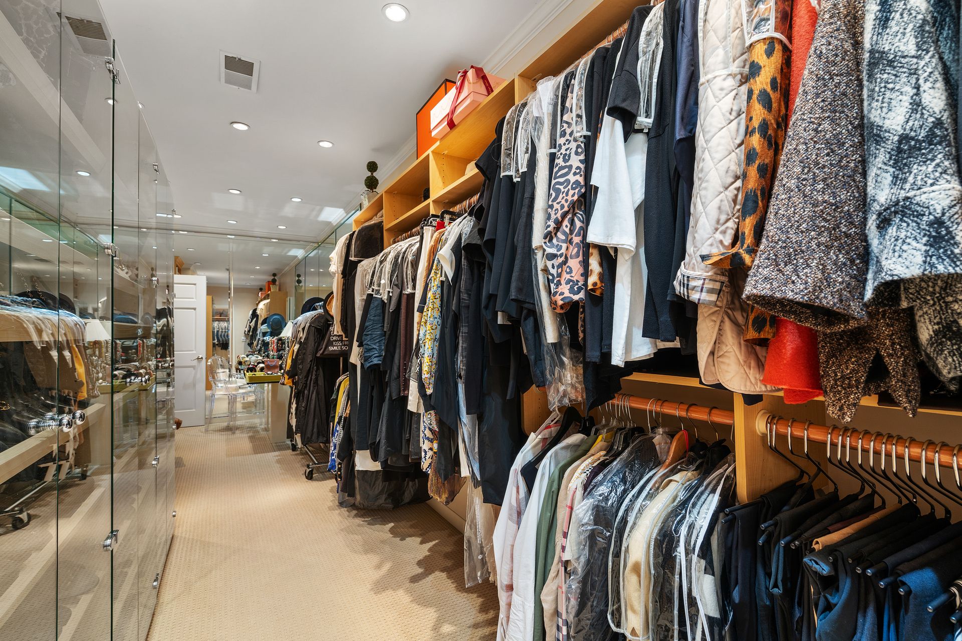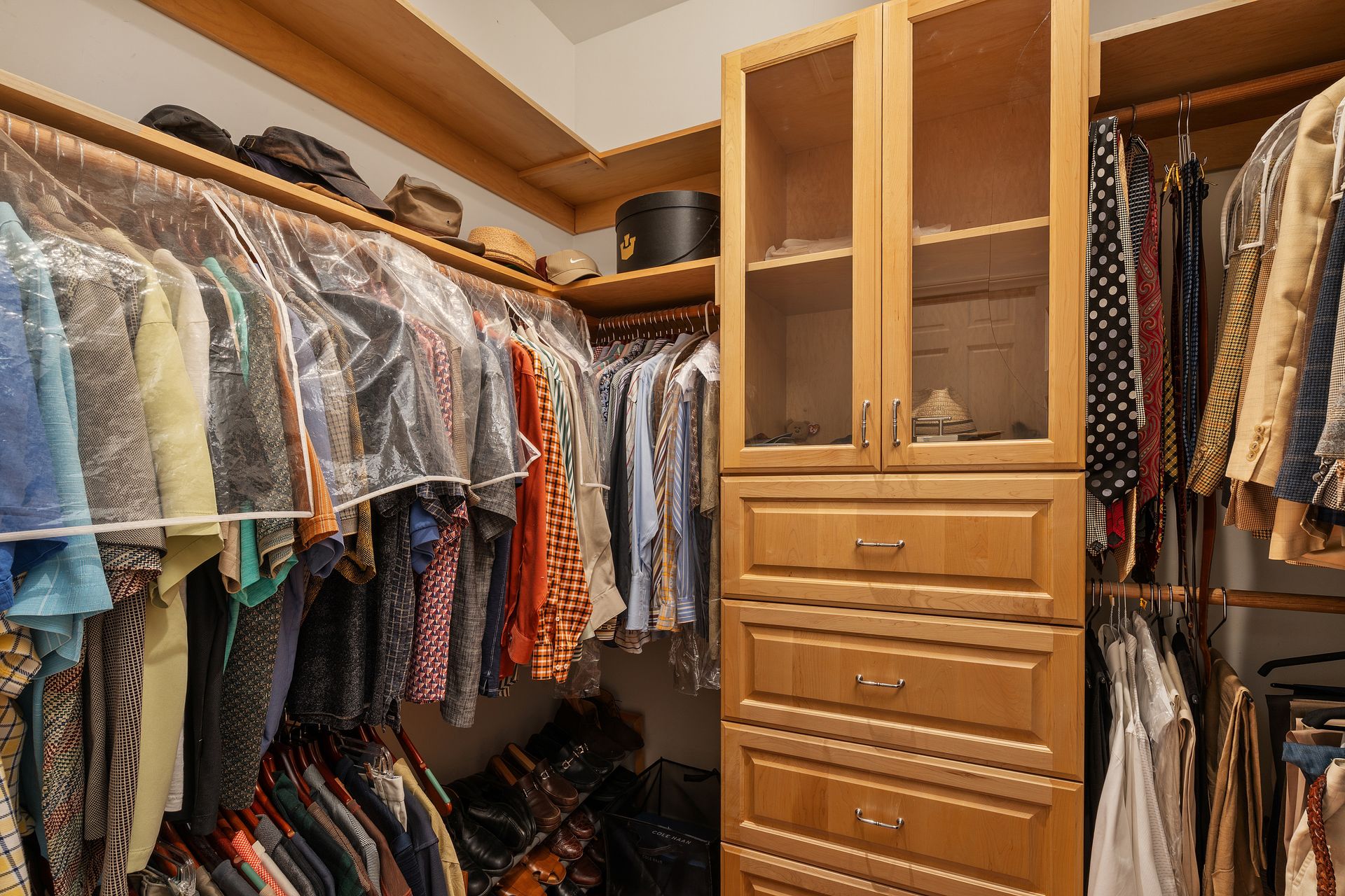 The middle level has two large bedroom suites. The primary suite has a gas fireplace, plantation shutters, and a peaceful atmosphere. Both bedrooms have large closets with full baths. Speaking of large closets, there is an opulent custom walk-in closet tucked away for privacy.