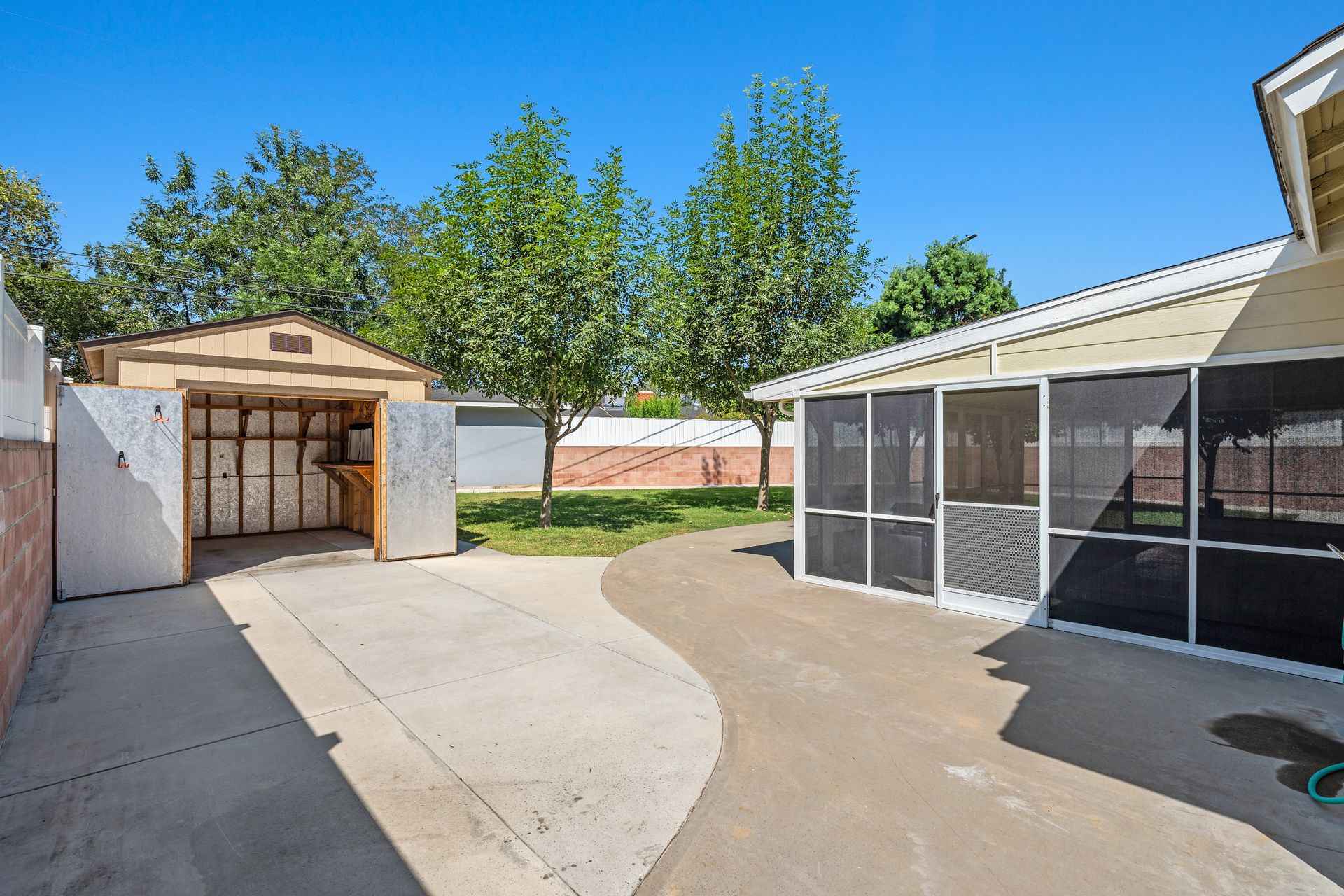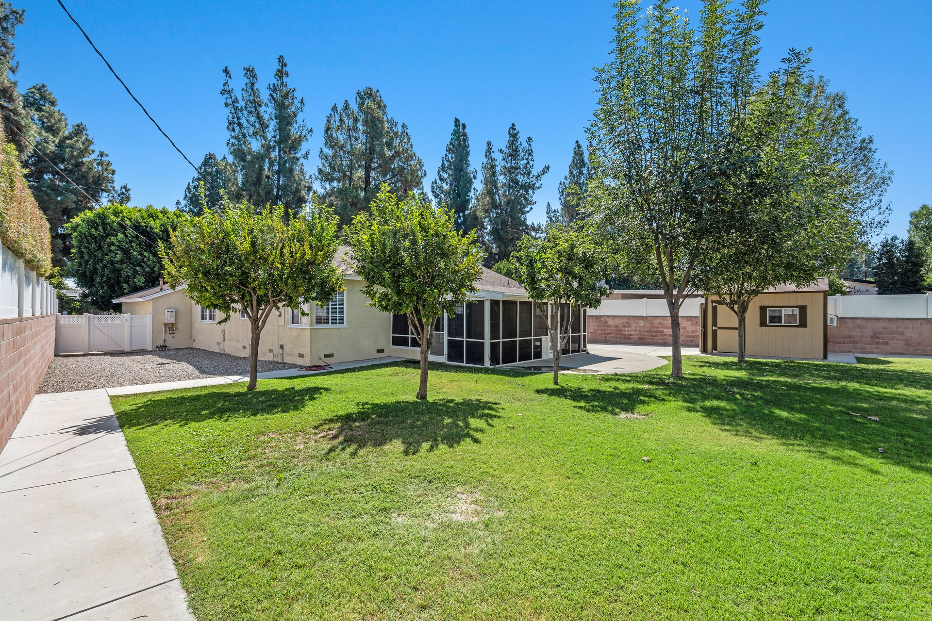 Nestled behind a private automatic gate, this beautifully upgraded 3-bedroom, 2-bathroom home offers style, comfort, and functionality. The modern kitchen boasts quality upgrades, while the dedicated laundry room adds everyday convenience. Enjoy an expansive enclosed patio—perfect for entertaining on warm summer nights. The large, manicured grassy yard features mature fruit trees, creating a lush retreat. An oversized shed with electrical and air conditioning provides endless possibilities for a workshop, studio, or extra storage. A true blend of privacy, charm, and thoughtful amenities—ready for you to call home.