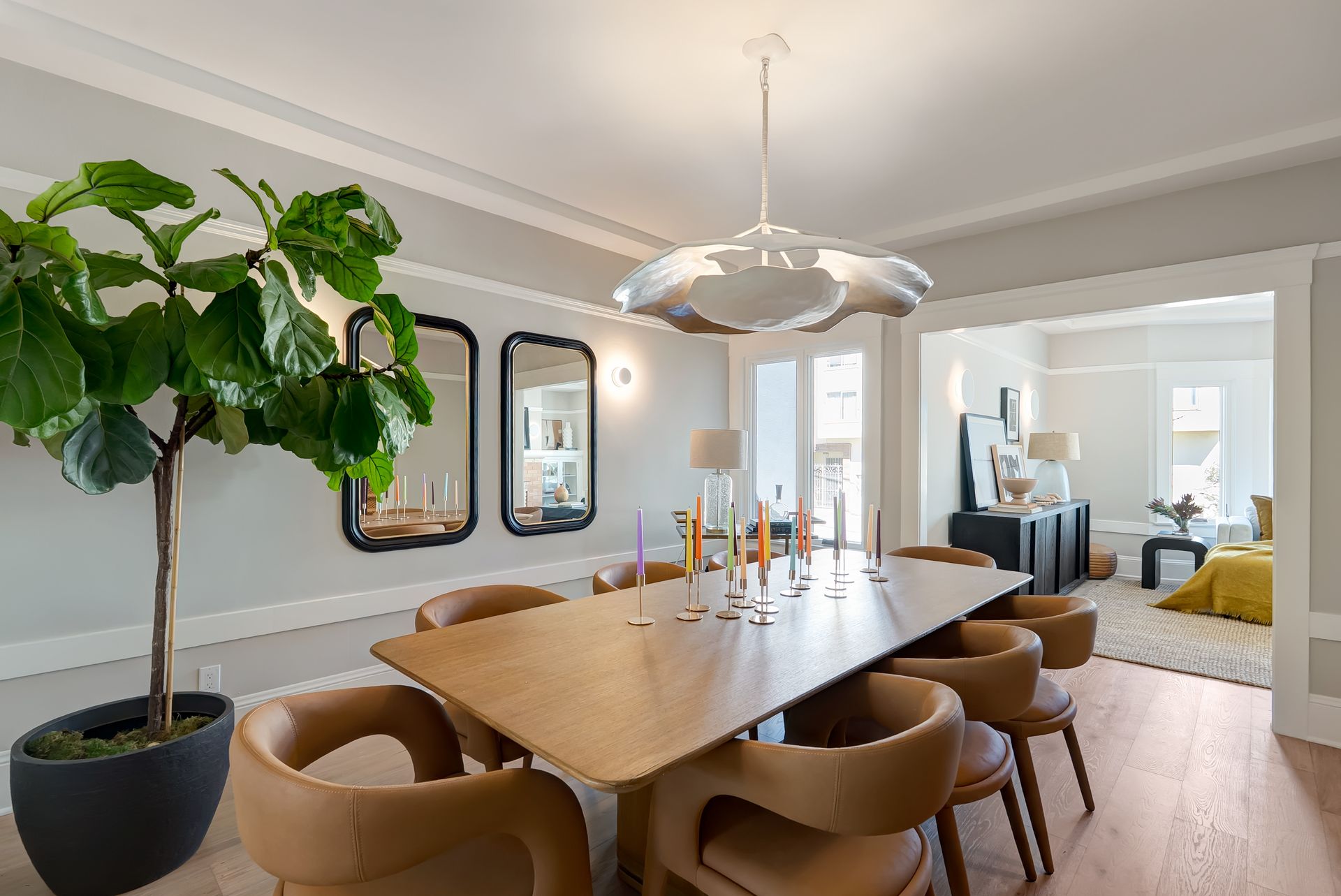 The living room welcomes you with warmth and natural light, flowing effortlessly into the dining area, creating a comfortable space designed for connection and conversation.