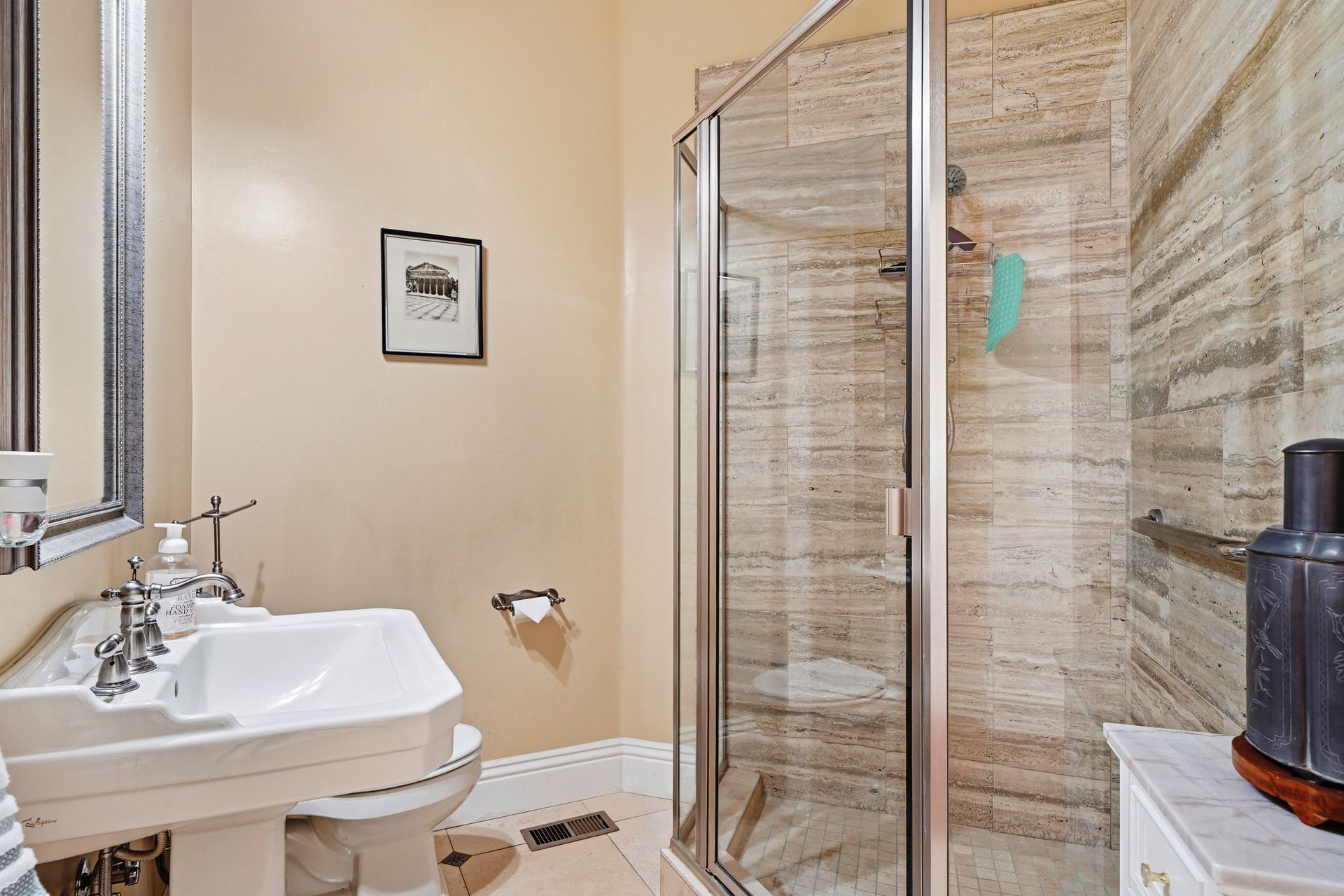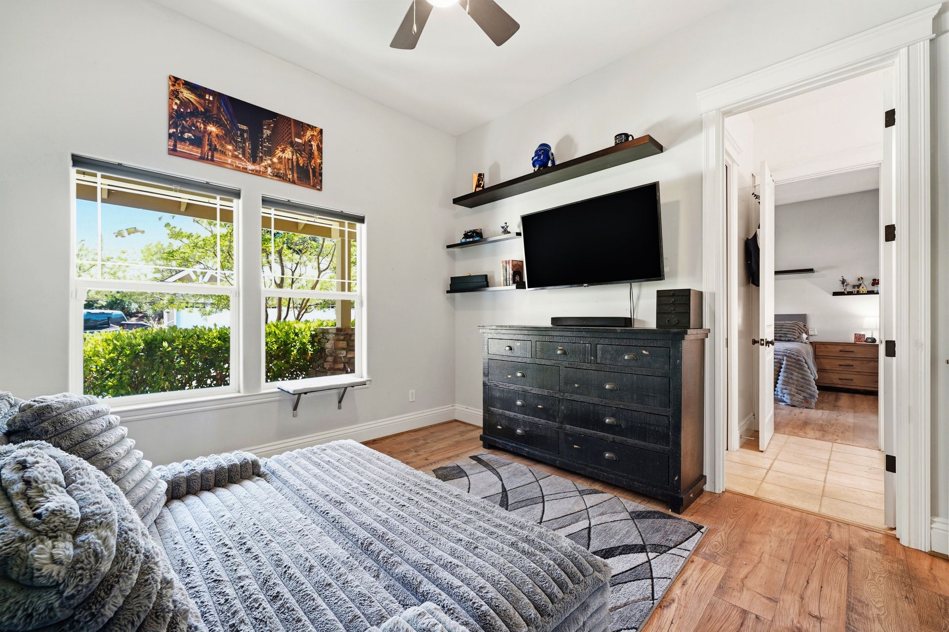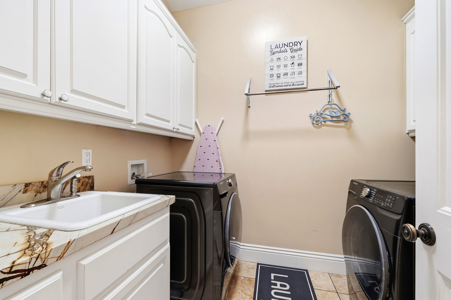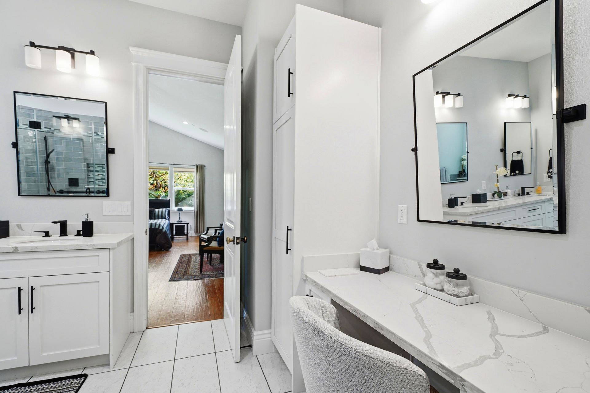 The front door opens to a formal foyer that expands to the living room with a grand stoned fireplace and French doors to the yard. From here, the single-story home has two wings. The first wing has a spacious family room with abundant natural light. It is framed with open arches with marbled sills allowing natural light to flow to the dining and kitchen areas. The formal dining room features a Butler's Pantry for entertaining ease. An amazing gourmet kitchen with high-end appliances, copper sink, gas stove with pot filling faucet at the ready, beverage/wine refrigerator, a large island for additional prepping area, and cabinets. A separate walk-in pantry has ample room for supplies. Across from the kitchen is an informal dining area for everyday convenience. There is a full bath near the kitchen. A breezeway to the garage has a hall tree and bench.