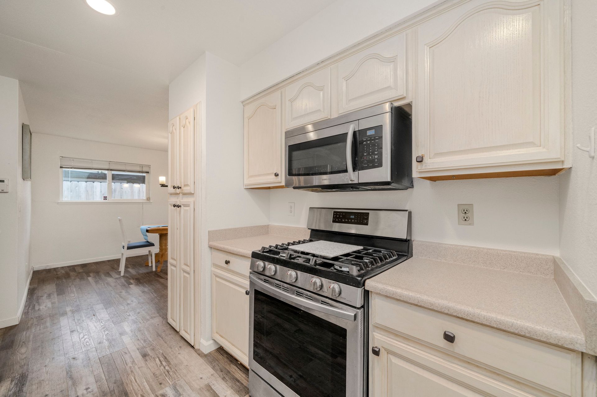 The kitchen checks the boxes with a gas range, built-in microwave, and plenty of cabinet space. Big-ticket updates bring peace of mind, including newer dual-pane windows, roof, water heater, and HVAC system. Ceiling fans and a whole-house fan help keep energy costs in check.