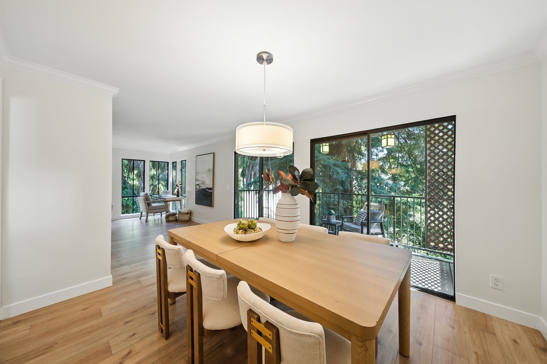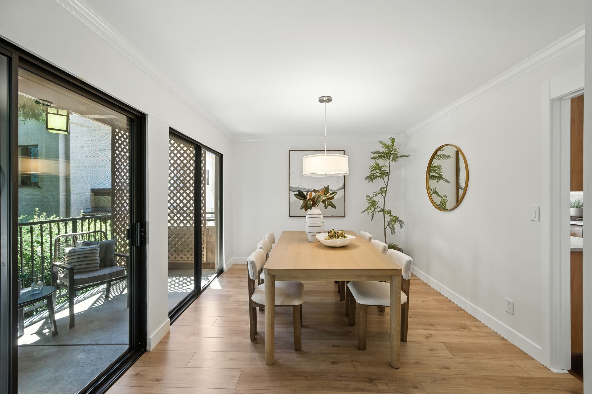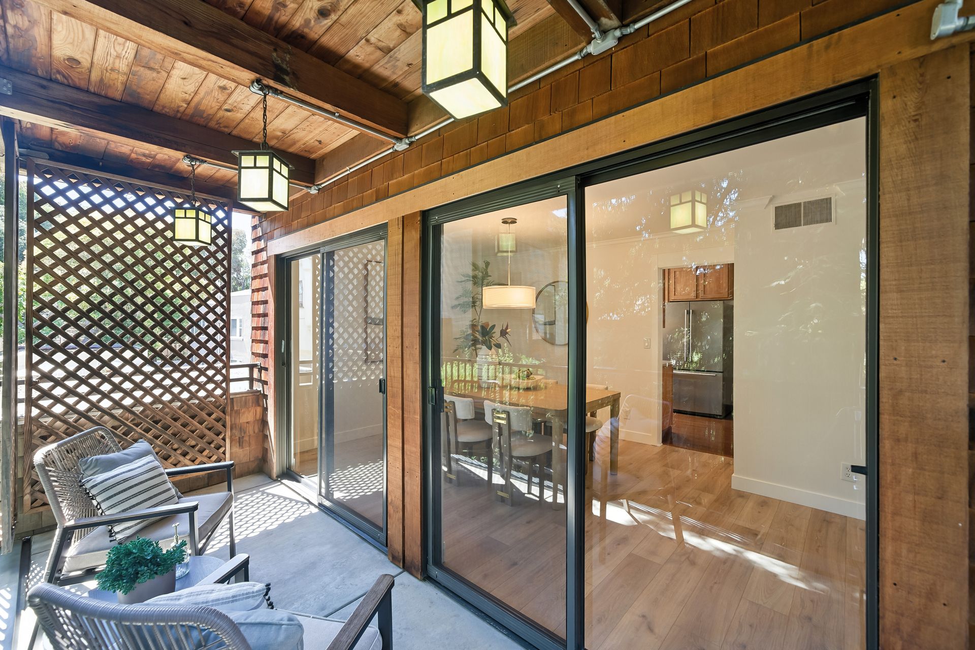 Do you dream of starting your day going out your front door to enjoy the best cup of coffee, warm freshly glazed donuts from the iconic Colonial Donuts, and a venture around the famous Lake Merritt? This extensively upgraded corner end-unit condo, peacefully situated at the back of a small, intimate 15-unit building at the intersection of Trestle Glen and Wesley, makes that dream a reality! With approximately 1,300 square feet, more than many single-family homes, you’ll enjoy a spacious, maintenance-free lifestyle. The desirable floor plan, with newly installed plank laminate flooring, offers a great distribution of rooms with a wealth of windows filling each space with natural light. The generous deck lets you unwind at day’s end or host friends before dinner in the adjacent dining room. The convenient kitchen features glass-front cabinets and a pantry for added storage. Retreat to the primary suite with its walk-in closet with organizers, dual vanity and illuminated mirrors. The second bedroom also offers impressive size and a spacious closet. The updated hall bath includes a stackable washer and dryer. Experience the best of neighborhood living with evenings at Bardo, Saturday Farmer's Market, Arizmendi pizza, Grand Lake Theater, and Trader Joe's - come for the beauty, stay for the convenience!