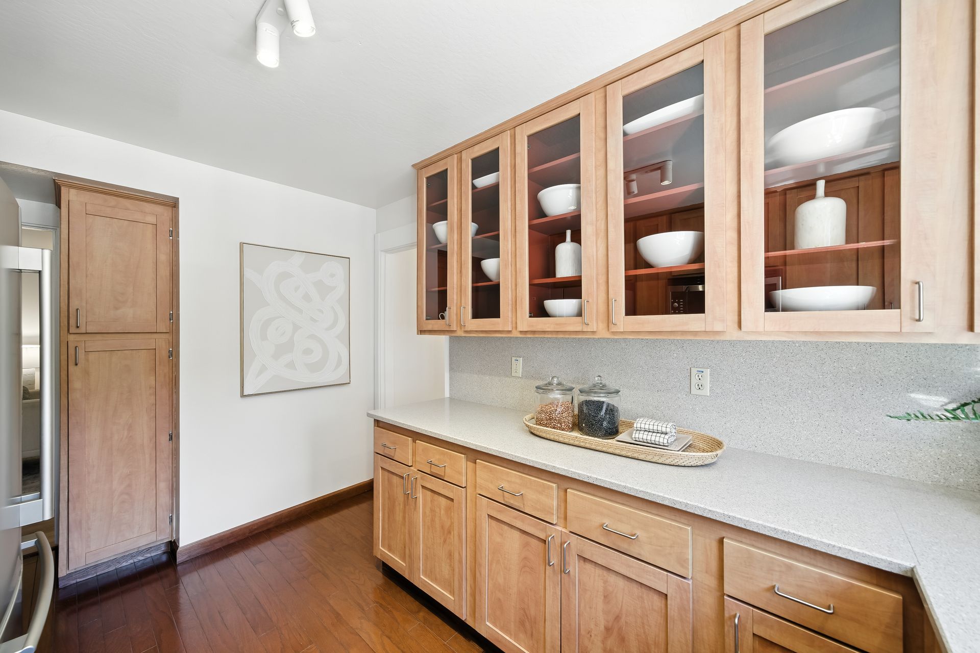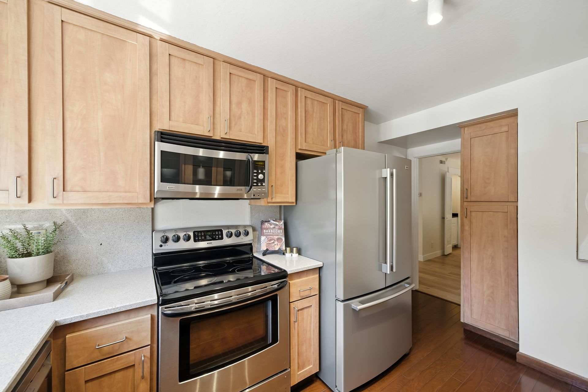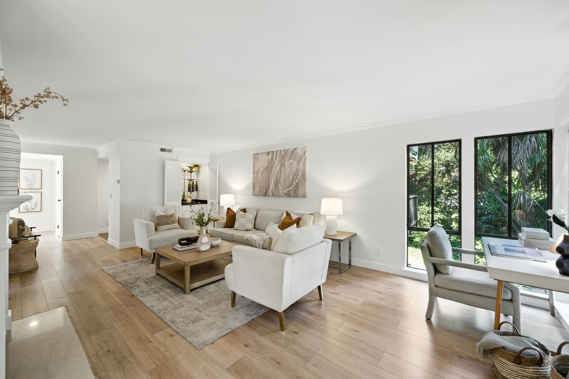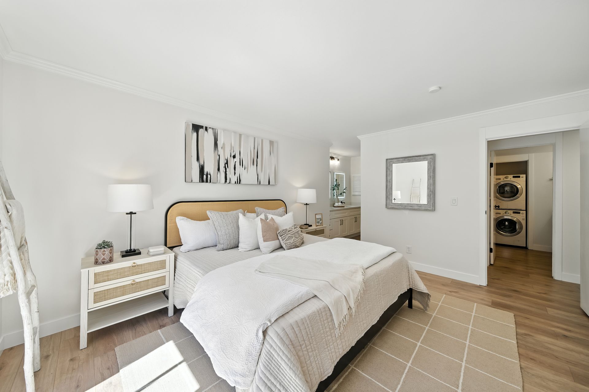 Do you dream of starting your day going out your front door to enjoy the best cup of coffee, warm freshly glazed donuts from the iconic Colonial Donuts, and a venture around the famous Lake Merritt? This extensively upgraded corner end-unit condo, peacefully situated at the back of a small, intimate 15-unit building at the intersection of Trestle Glen and Wesley, makes that dream a reality! With approximately 1,300 square feet, more than many single-family homes, you’ll enjoy a spacious, maintenance-free lifestyle. The desirable floor plan, with newly installed plank laminate flooring, offers a great distribution of rooms with a wealth of windows filling each space with natural light. The generous deck lets you unwind at day’s end or host friends before dinner in the adjacent dining room. The convenient kitchen features glass-front cabinets and a pantry for added storage. Retreat to the primary suite with its walk-in closet with organizers, dual vanity and illuminated mirrors. The second bedroom also offers impressive size and a spacious closet. The updated hall bath includes a stackable washer and dryer. Experience the best of neighborhood living with evenings at Bardo, Saturday Farmer's Market, Arizmendi pizza, Grand Lake Theater, and Trader Joe's - come for the beauty, stay for the convenience!