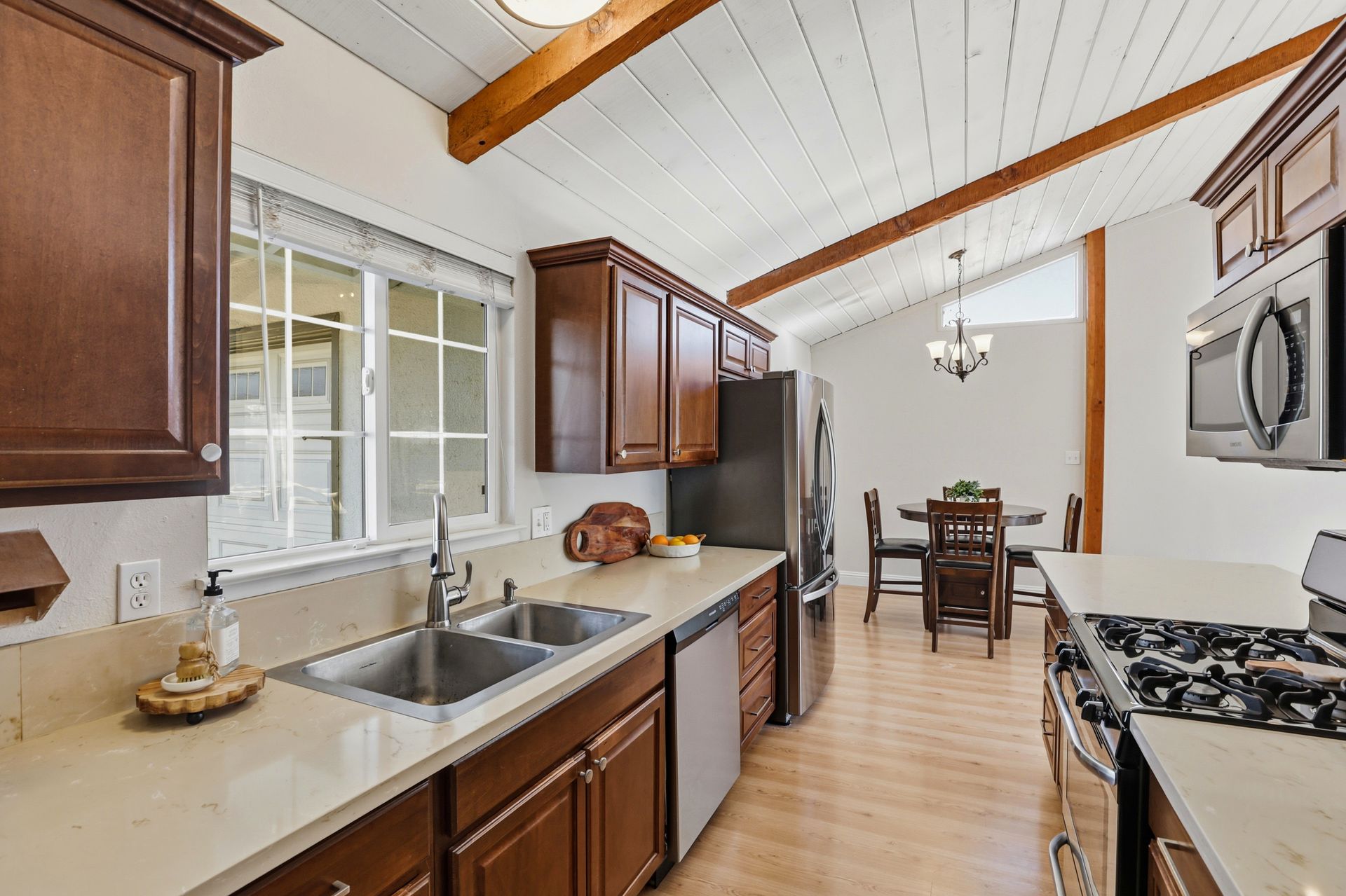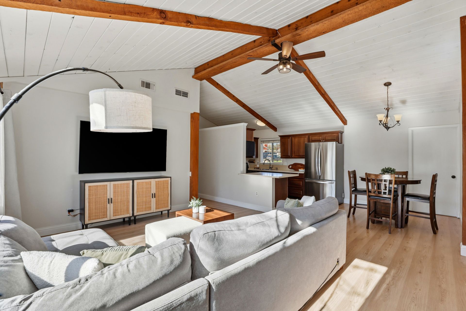 Welcome to this inviting and well-updated home located in the highly desirable San Juan Unified School District. This 3 bedroom, 2 bath property features a spacious great room with beamed vaulted ceilings, creating an open and airy atmosphere that’s ideal for everyday living and entertaining. The remodeled kitchen offers quartz countertops, stainless steel appliances and ample cabinet space, making it ideal for hosting dinner parties or casual gatherings. Dual-pane windows and ceiling fans provide comfort and energy efficiency year-round. The large primary bedroom offers a relaxing retreat with generous space and a large closet. Recent major upgrades include a new roof (2025), new HVAC system (2022) and new water heater (2023)—providing peace of mind for years to come. Venture outside to a large covered back patio overlooking a huge backyard, ready for your outdoor vision—entertaining, gardening, play space or relaxation in the included hot tub. The expansive driveway offers ample parking, with possible RV or boat access on the side yard, plus a roomy one-car garage. The home is ideally located just around the corner from Rusch Community Park and minutes from shopping and dining at Costco, Safeway, Sam’s Club, Walmart, Kohl’s, and more. Enjoy easy access to Downtown Sacramento, Roseville Galleria and Folsom Lake, making this a fantastic place to call home. A wonderful opportunity to enjoy space, upgrades and convenience in a prime Citrus Heights location.