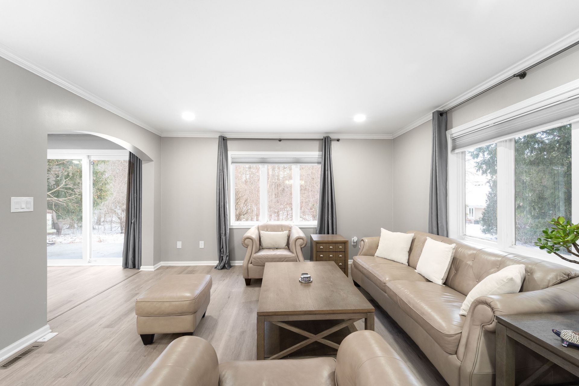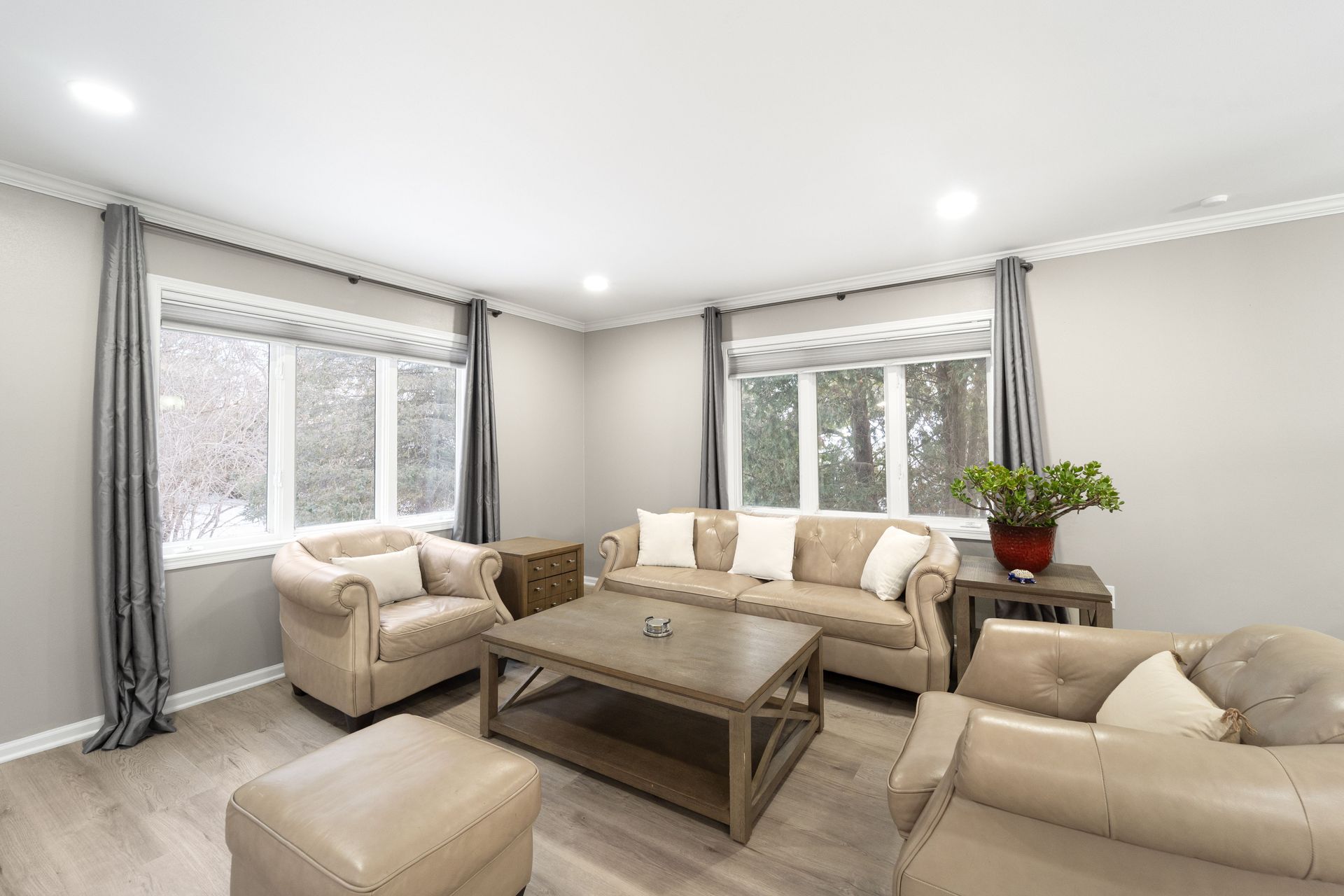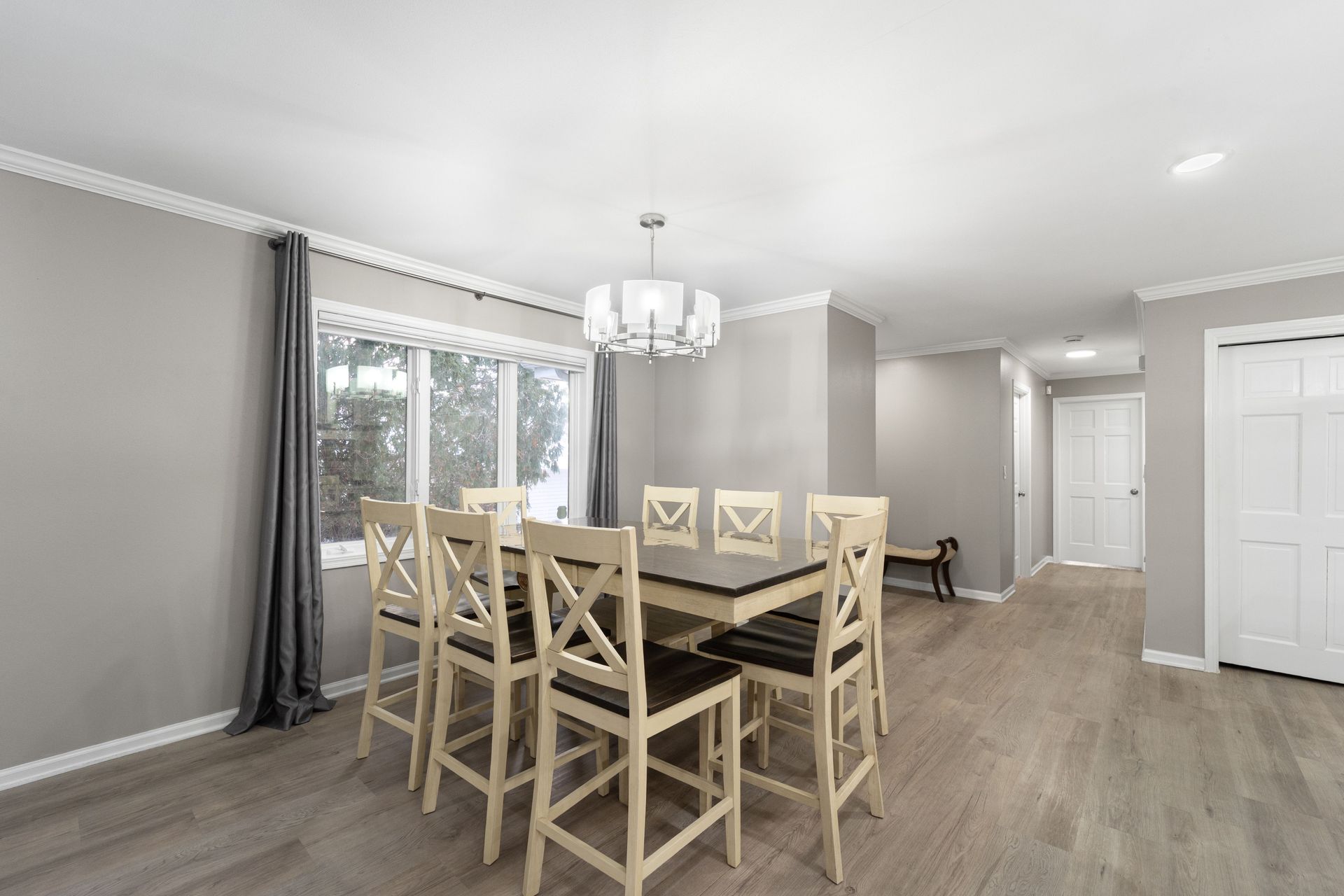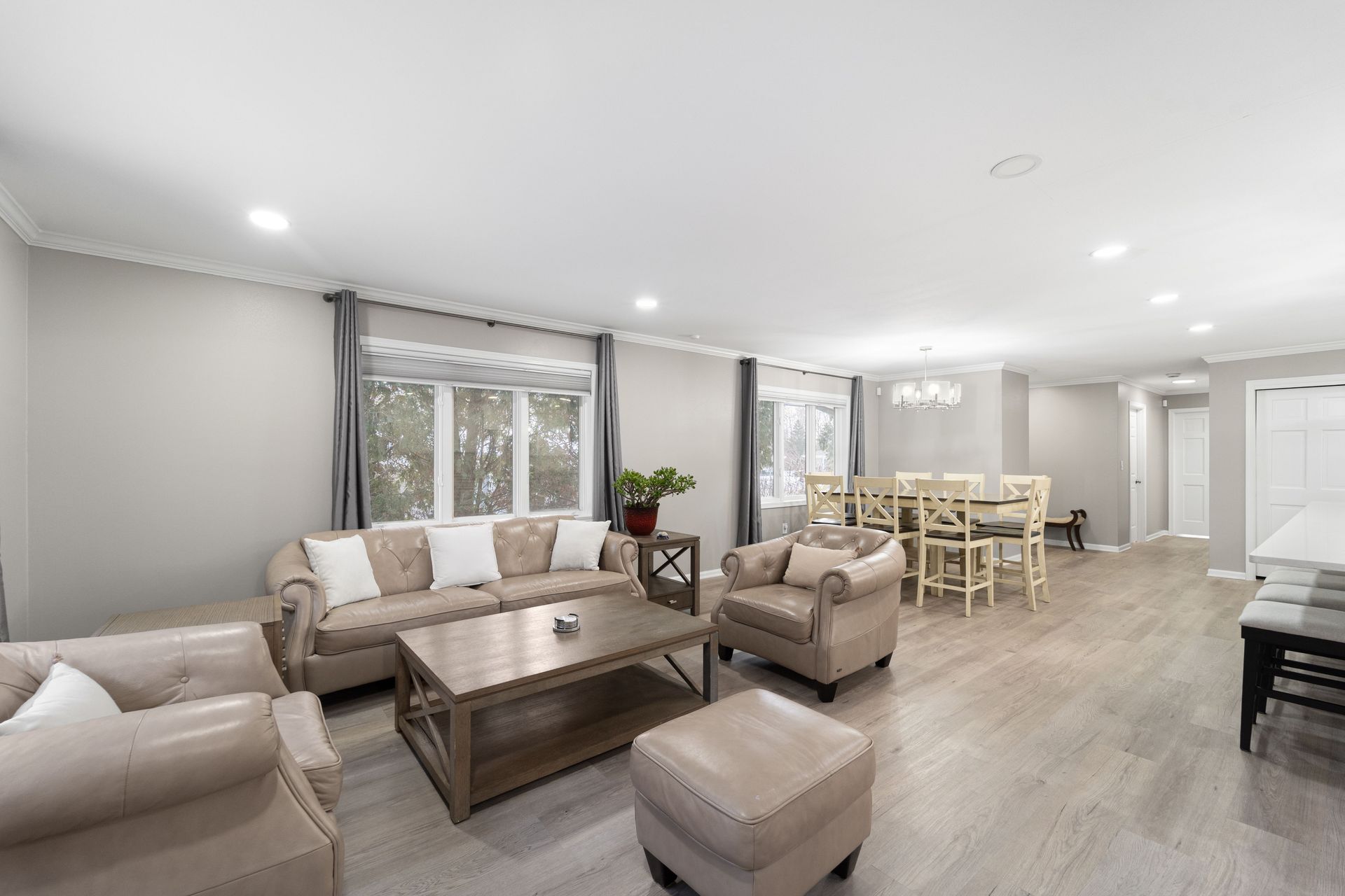Thoughtfully refreshed throughout, this home features Luxury Vinyl Plank flooring, modern recessed lighting, and an open-concept living room that opens to the dining room, perfect for gathering with guests. The showstopper kitchen is designed to impress with quartz countertops with a breakfast bar, stainless steel appliances, ample cabinetry, a convenient pantry, and a discreet laundry closet for everyday ease.