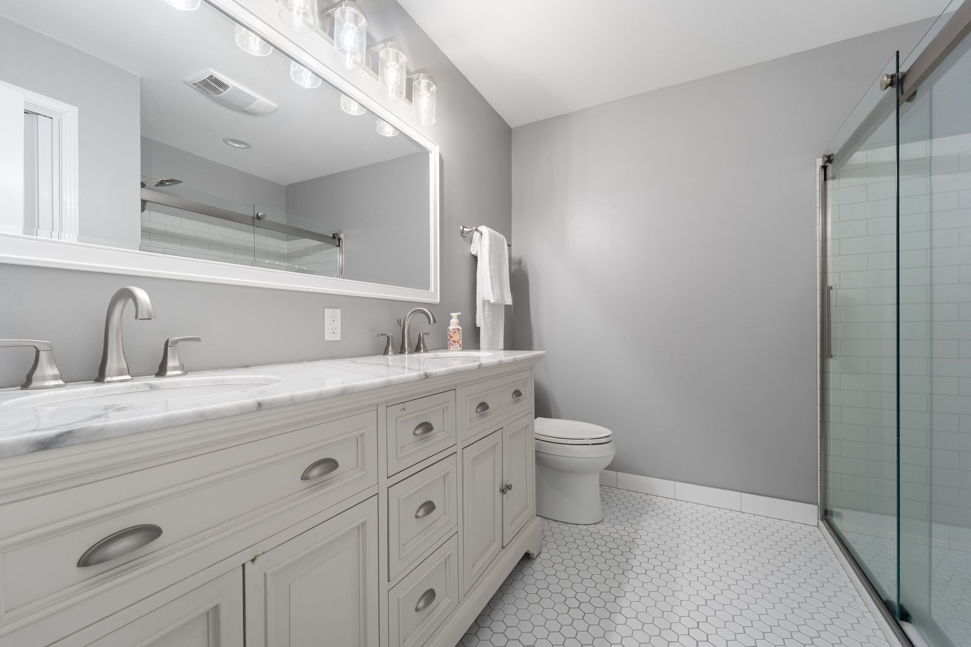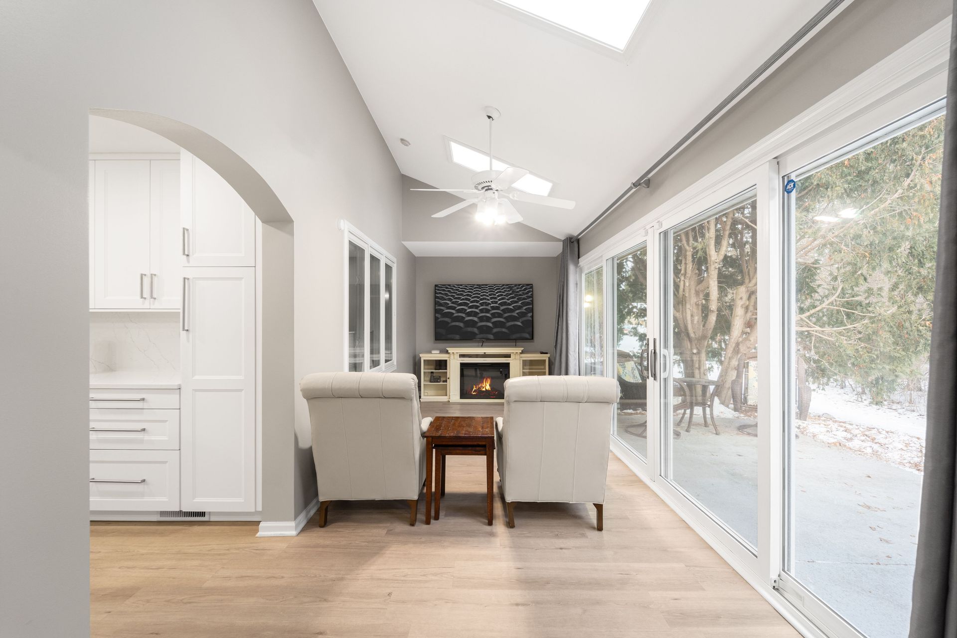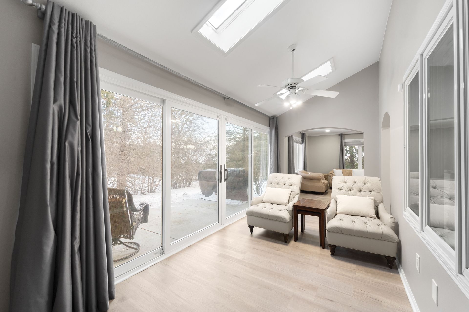 Retreat to the spacious primary suite, complete with a private ensuite bathroom, a generous walk‑in closet, and a spa‑like primary bath offering a walk‑in shower and double vanity. Two additional bedrooms provide flexible space for guests, a home office, or hobbies. A thoughtfully repurposed four‑season room with skylights adds charm and functionality, offering abundant natural light and direct access to the patio—perfect for relaxing or entertaining.