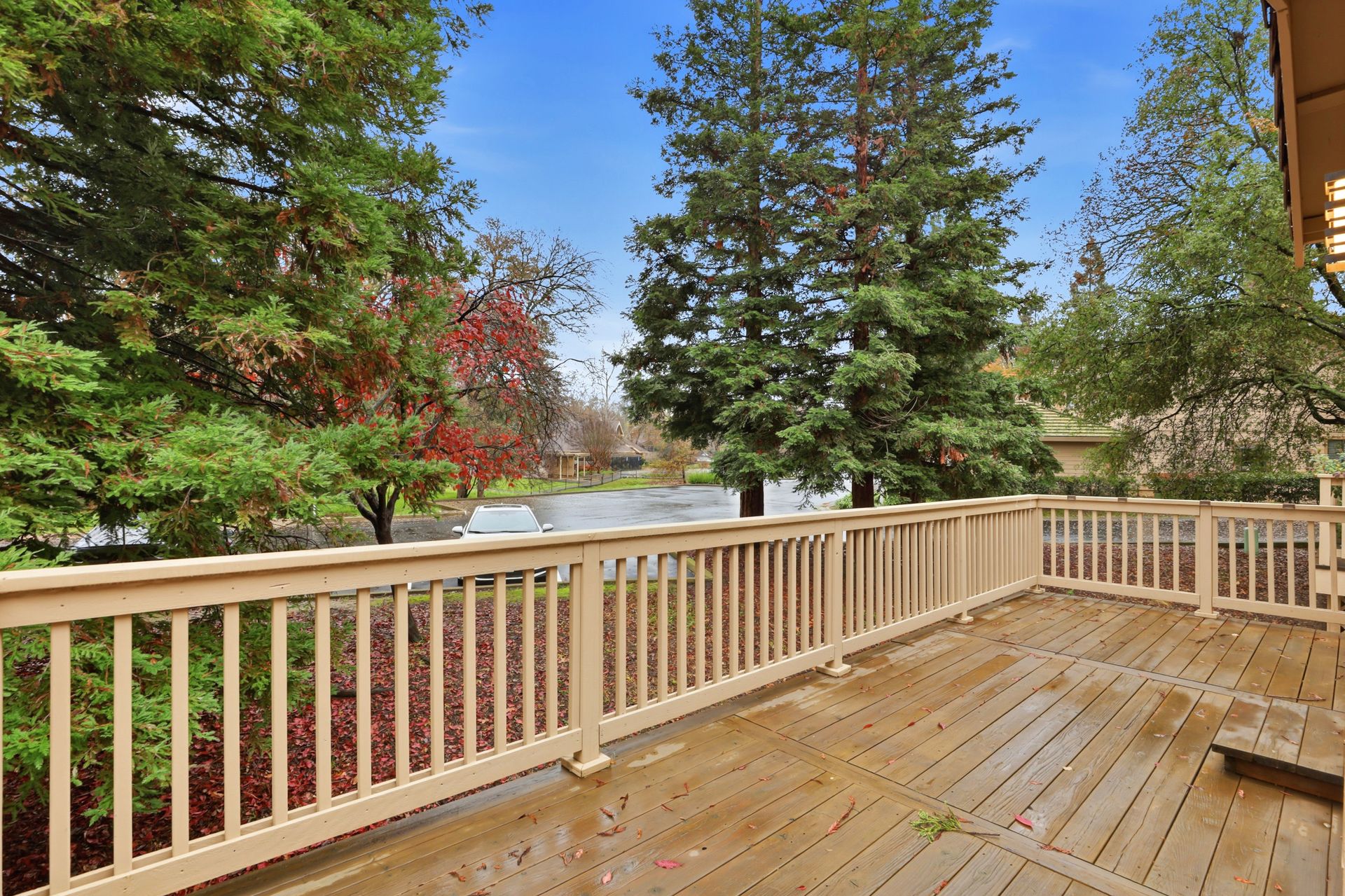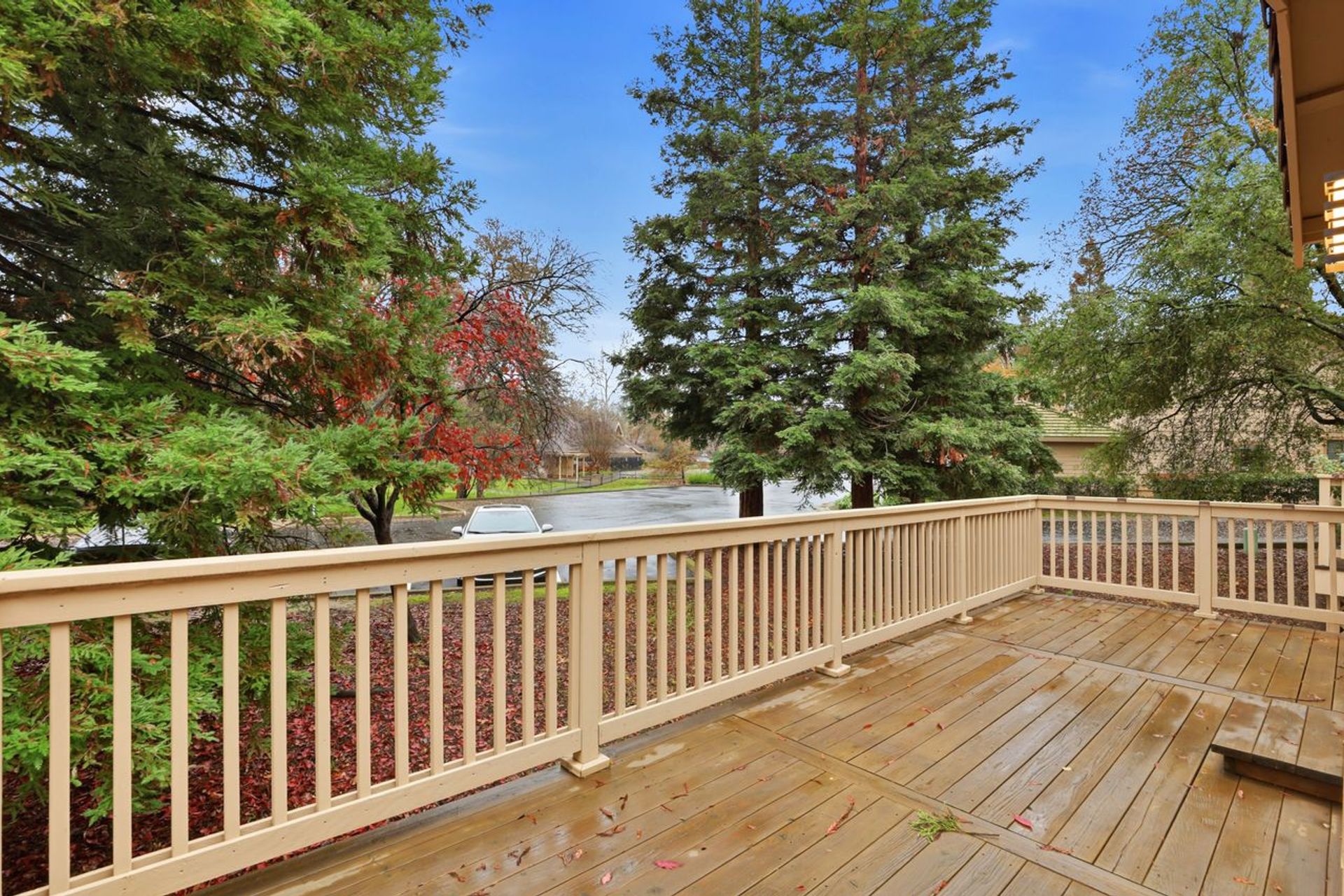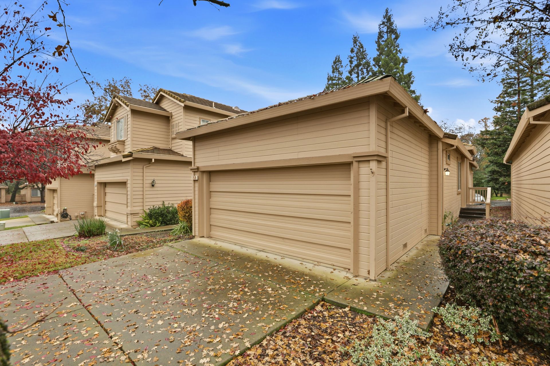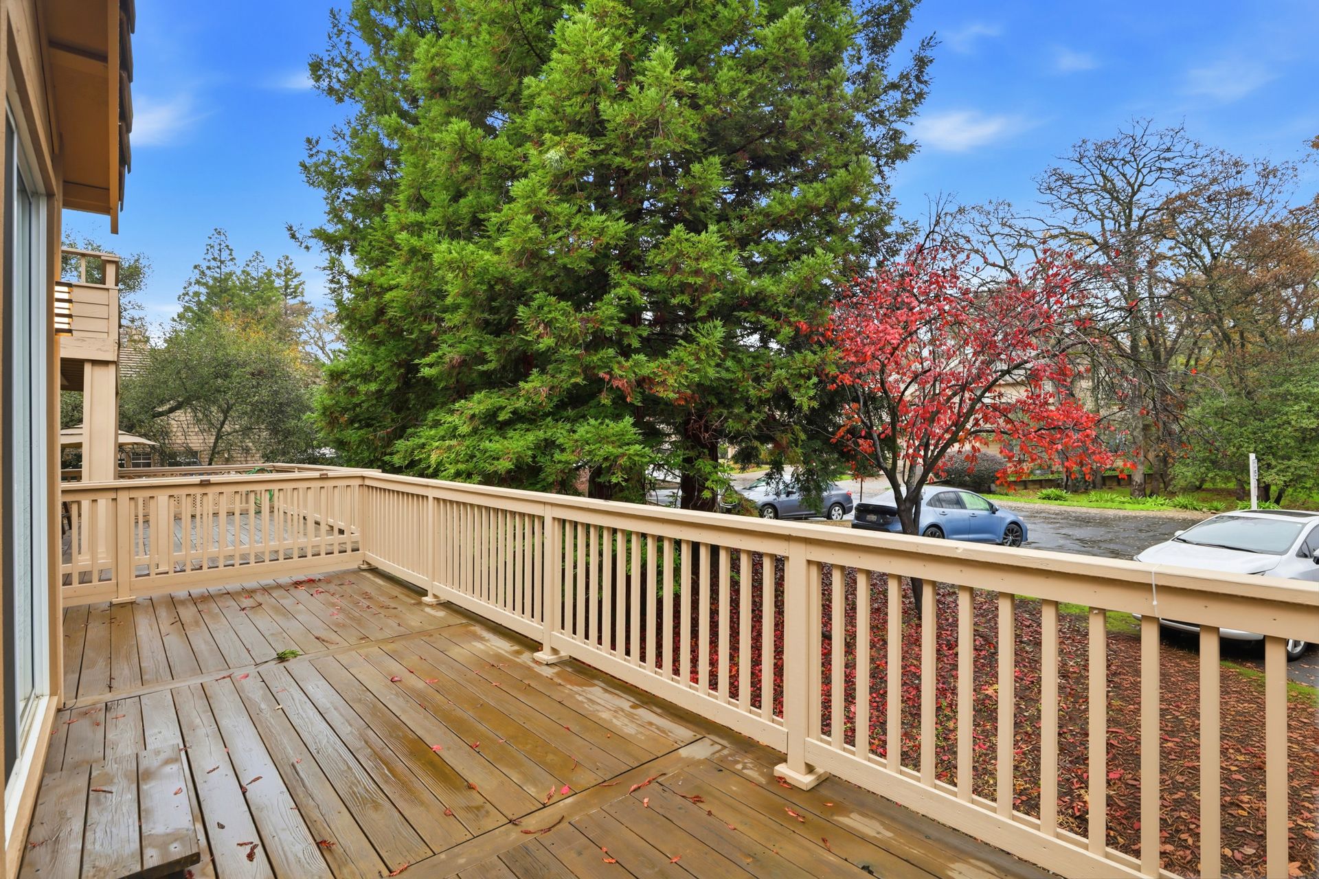 Welcome to Oak Crest Village, a truly special private community where life feels simpler, easier, and more intentional. This beautifully updated, single-story home offering over 1,300 square feet, two bedrooms, and two full bathrooms, tucked into a private, tree-lined natural setting. Vaulted cathedral ceilings, multiple skylights, and expansive windows flood the home with natural light, creating a bright, open, and welcoming atmosphere throughout. The spacious living room features custom built-in bookshelves and a newly installed gas fireplace, ideal for cozy evenings, or hosting for the holidays, while large sliding glass doors seamlessly connect indoor living to a peaceful back deck, ideal for morning coffee or evening relaxation surrounded by nature. The light and airy kitchen enjoys abundant morning sun and deck views, with direct outdoor access through a second set of sliding glass doors, ideal for entertaining or enjoying the indoor-outdoor lifestyle. The primary suite is a true retreat, featuring a walk-in closet, dual sinks, a deep soaking tub, a glass-enclosed shower, and skylights that provide both natural light and privacy. Oak Crest Village is ideal for those seeking a lock-and-go lifestyle. When you’re home, everything you need is right outside your door. When you’re away, you can travel with peace of mind knowing your surroundings are well cared for and thoughtfully maintained. Enjoy the exceptional lifestyle gated Oak Crest Village is known for, including two sparkling pools, a clubhouse, tennis and pickleball courts, a greenbelt, trails, and a full calendar of community activities. The HOA provides true peace of mind, covering exterior maintenance, roof replacement, exterior paint, front landscaping, and sewer, allowing you to spend more time enjoying life and less time on upkeep. This home is the one you need to experience in person!
