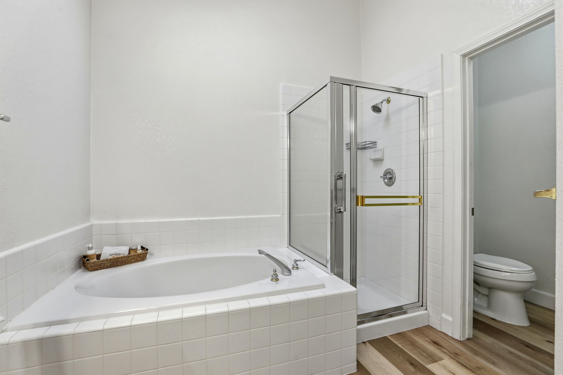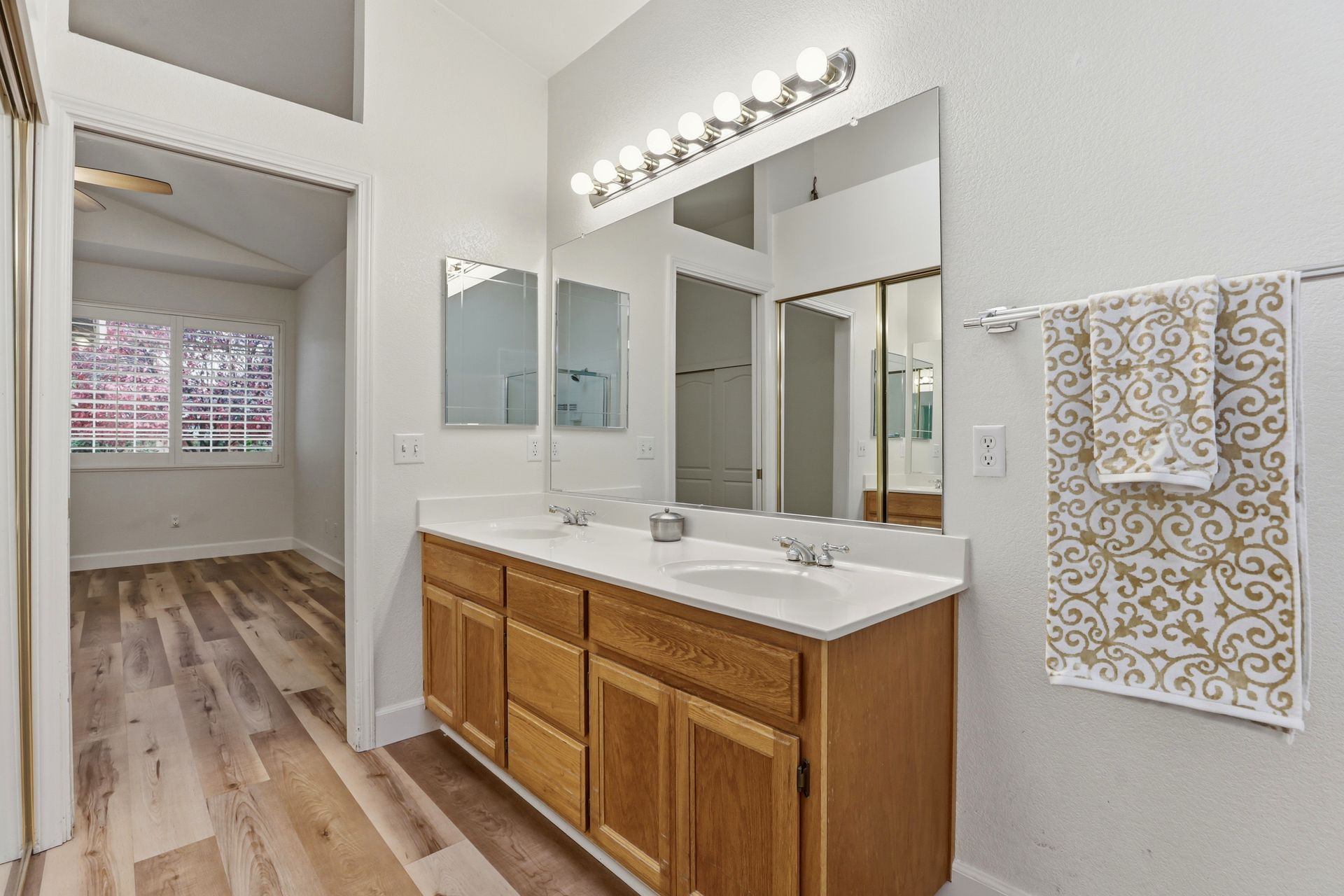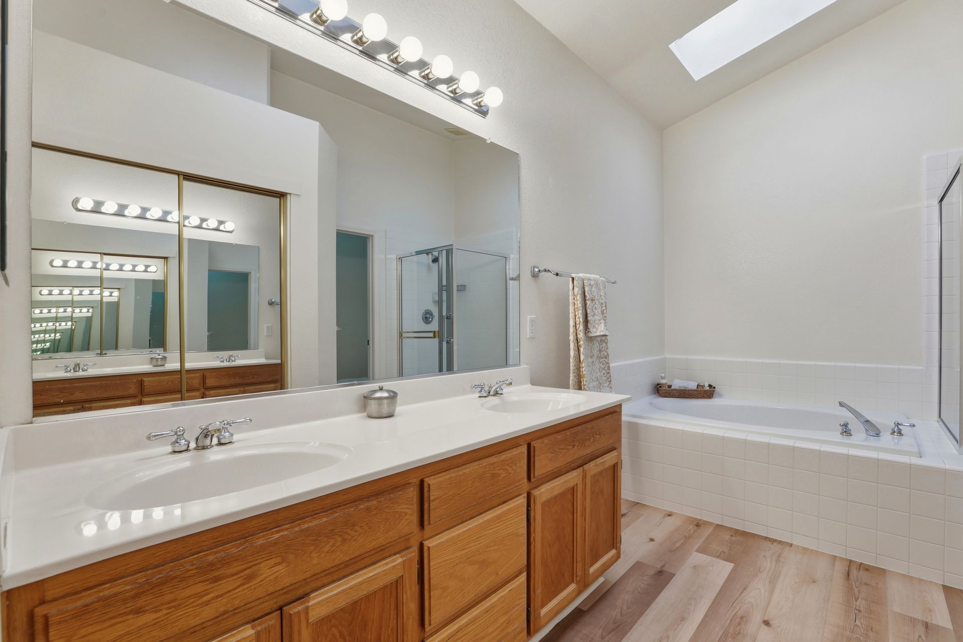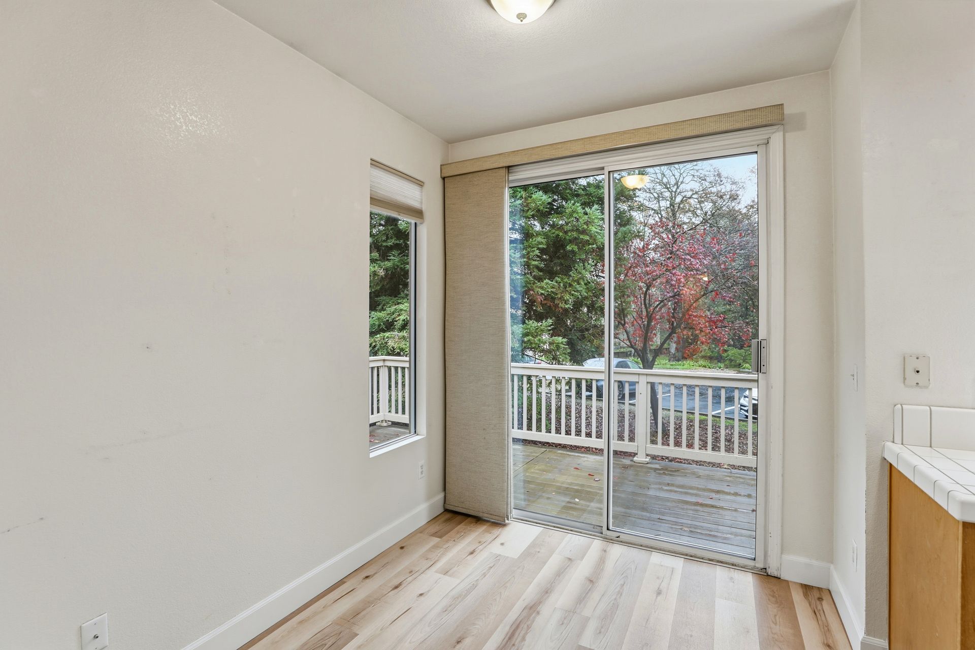 Welcome to Oak Crest Village, a truly special private community where life feels simpler, easier, and more intentional. This beautifully updated, single-story home offering over 1,300 square feet, two bedrooms, and two full bathrooms, tucked into a private, tree-lined natural setting. Vaulted cathedral ceilings, multiple skylights, and expansive windows flood the home with natural light, creating a bright, open, and welcoming atmosphere throughout. The spacious living room features custom built-in bookshelves and a newly installed gas fireplace, ideal for cozy evenings, or hosting for the holidays, while large sliding glass doors seamlessly connect indoor living to a peaceful back deck, ideal for morning coffee or evening relaxation surrounded by nature. The light and airy kitchen enjoys abundant morning sun and deck views, with direct outdoor access through a second set of sliding glass doors, ideal for entertaining or enjoying the indoor-outdoor lifestyle. The primary suite is a true retreat, featuring a walk-in closet, dual sinks, a deep soaking tub, a glass-enclosed shower, and skylights that provide both natural light and privacy. Oak Crest Village is ideal for those seeking a lock-and-go lifestyle. When you’re home, everything you need is right outside your door. When you’re away, you can travel with peace of mind knowing your surroundings are well cared for and thoughtfully maintained. Enjoy the exceptional lifestyle gated Oak Crest Village is known for, including two sparkling pools, a clubhouse, tennis and pickleball courts, a greenbelt, trails, and a full calendar of community activities. The HOA provides true peace of mind, covering exterior maintenance, roof replacement, exterior paint, front landscaping, and sewer, allowing you to spend more time enjoying life and less time on upkeep. This home is the one you need to experience in person!