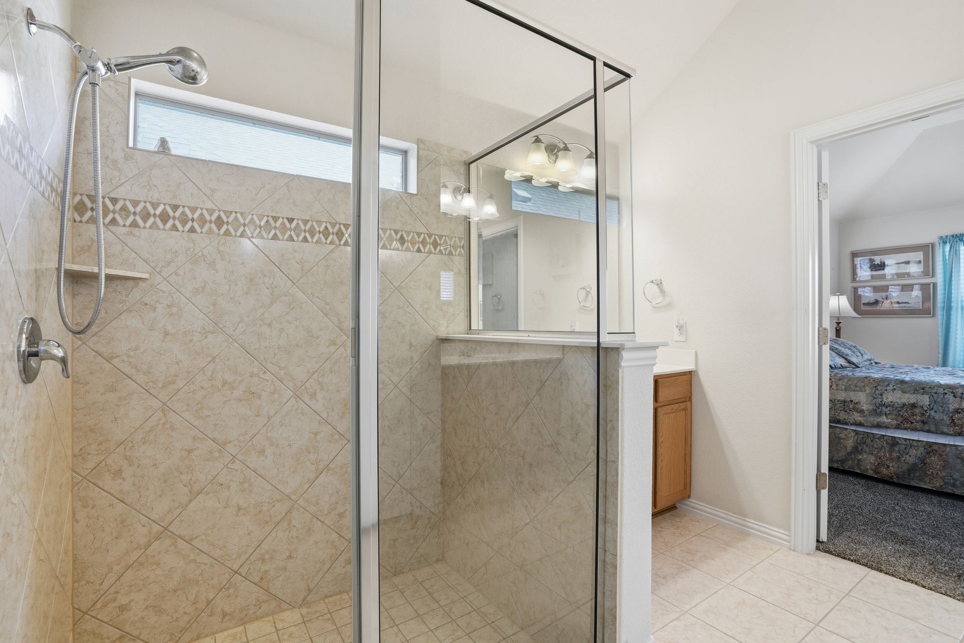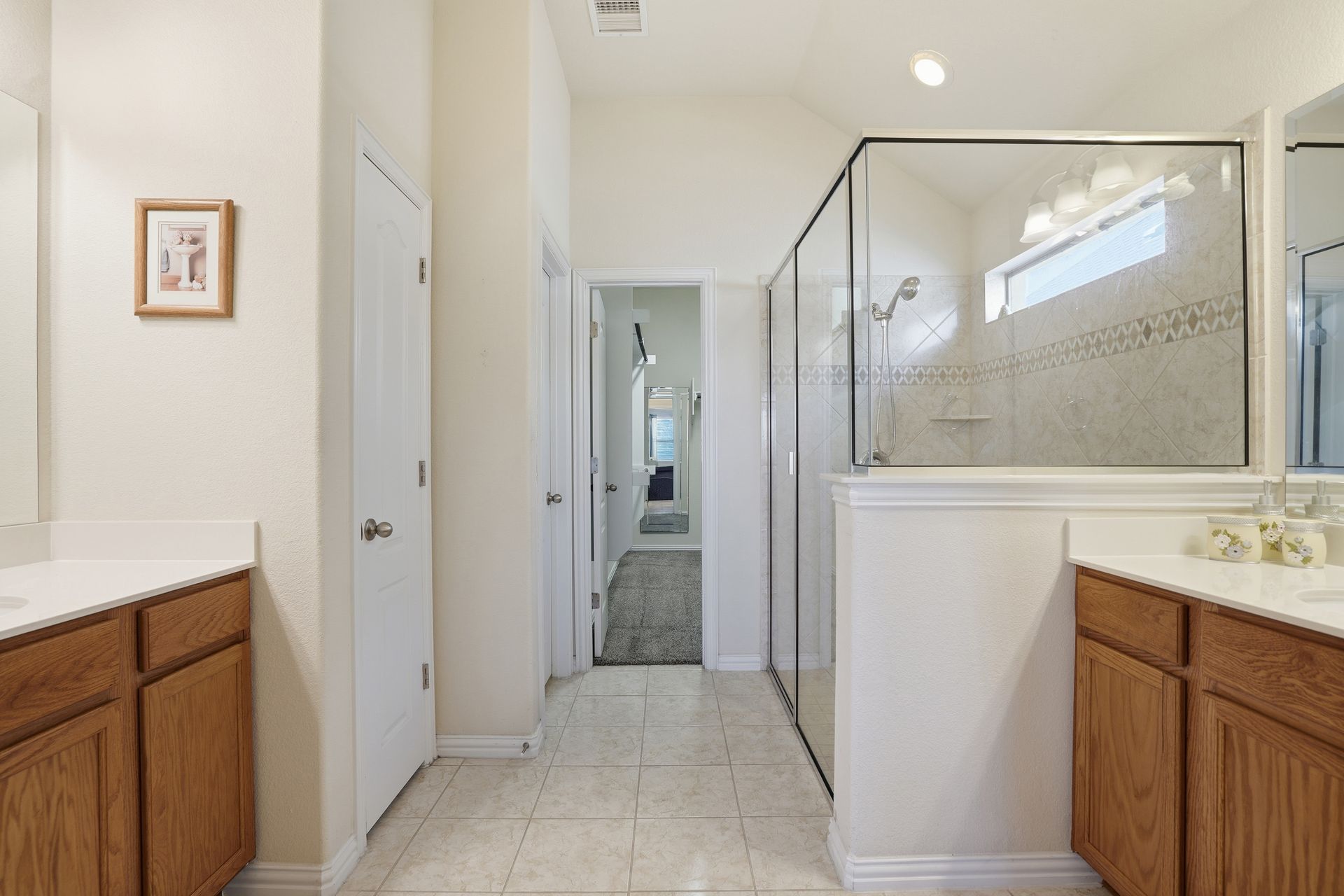 A unique custom feature sets this home apart — a convenient door connecting the laundry room directly to the primary closet, a smart addition added by the original (and only) owner for everyday ease. The serene primary bath includes two separate vanities, an oversized walk-in shower, and abundant counter and storage space for everyday comfort.
