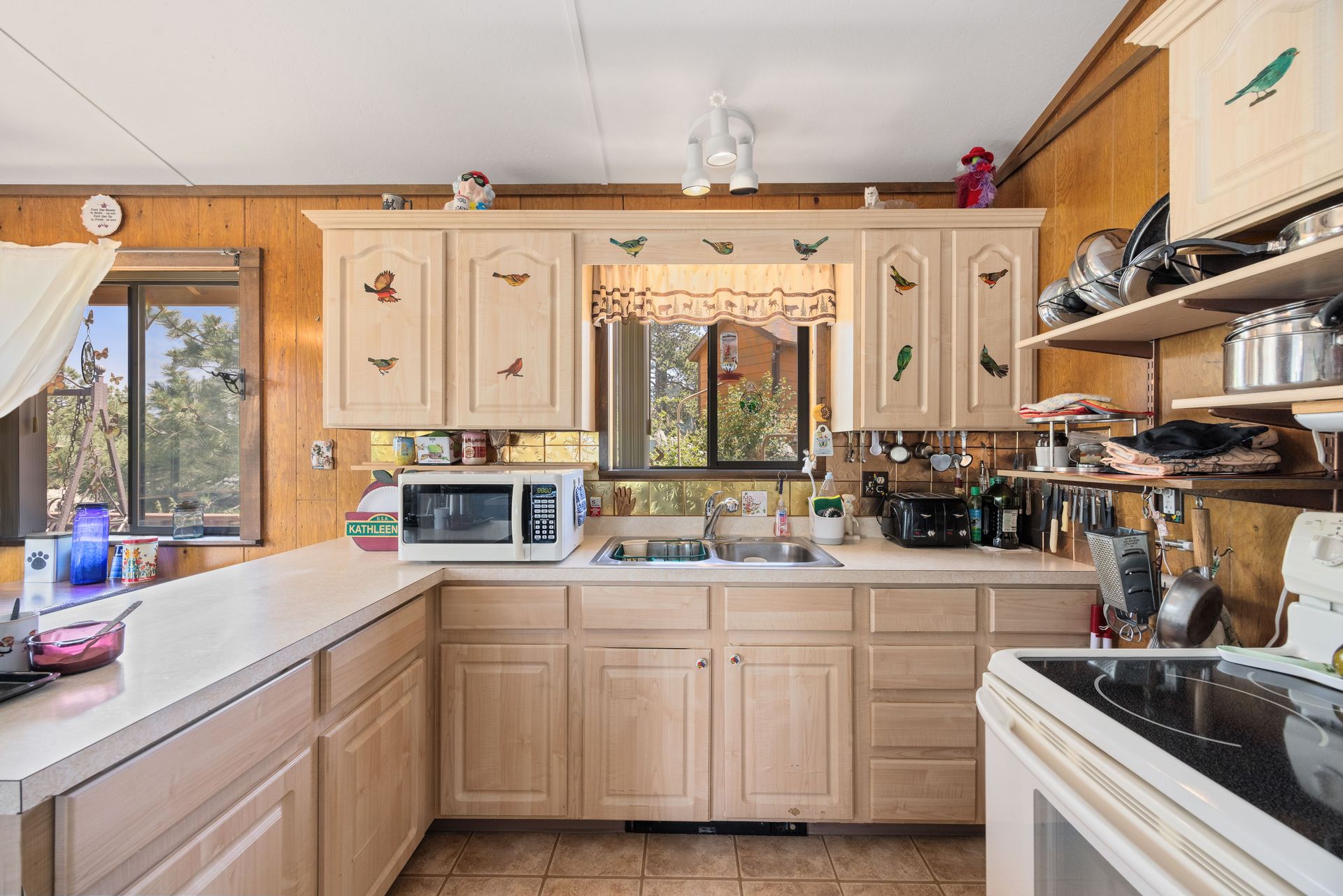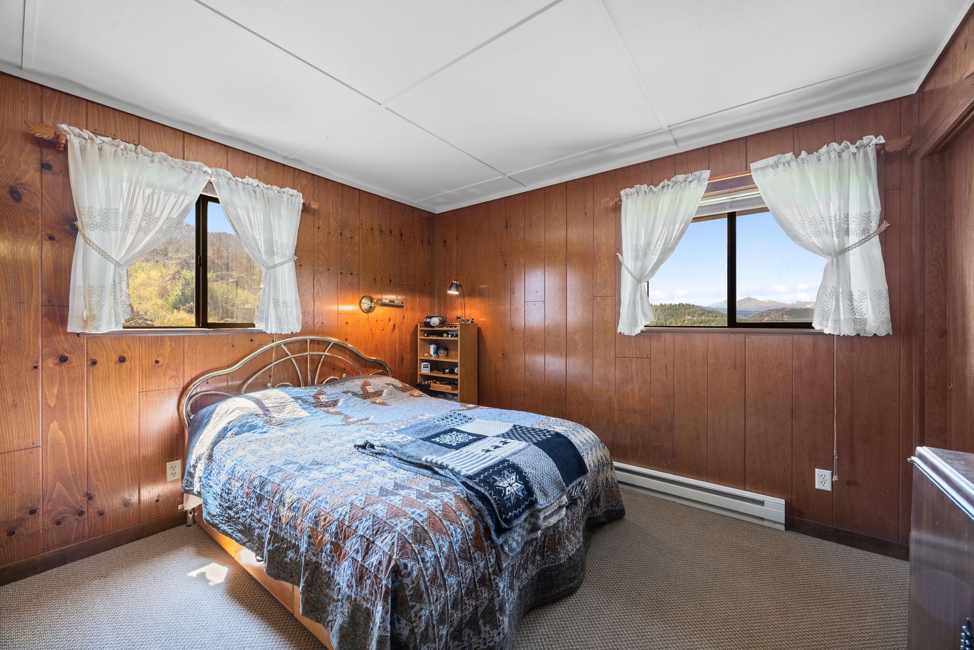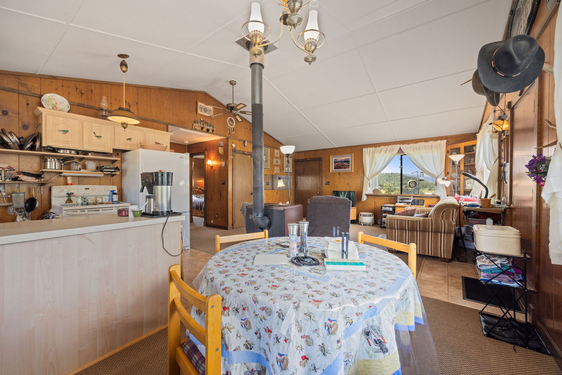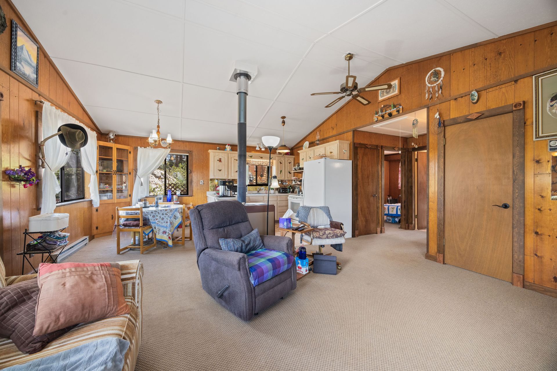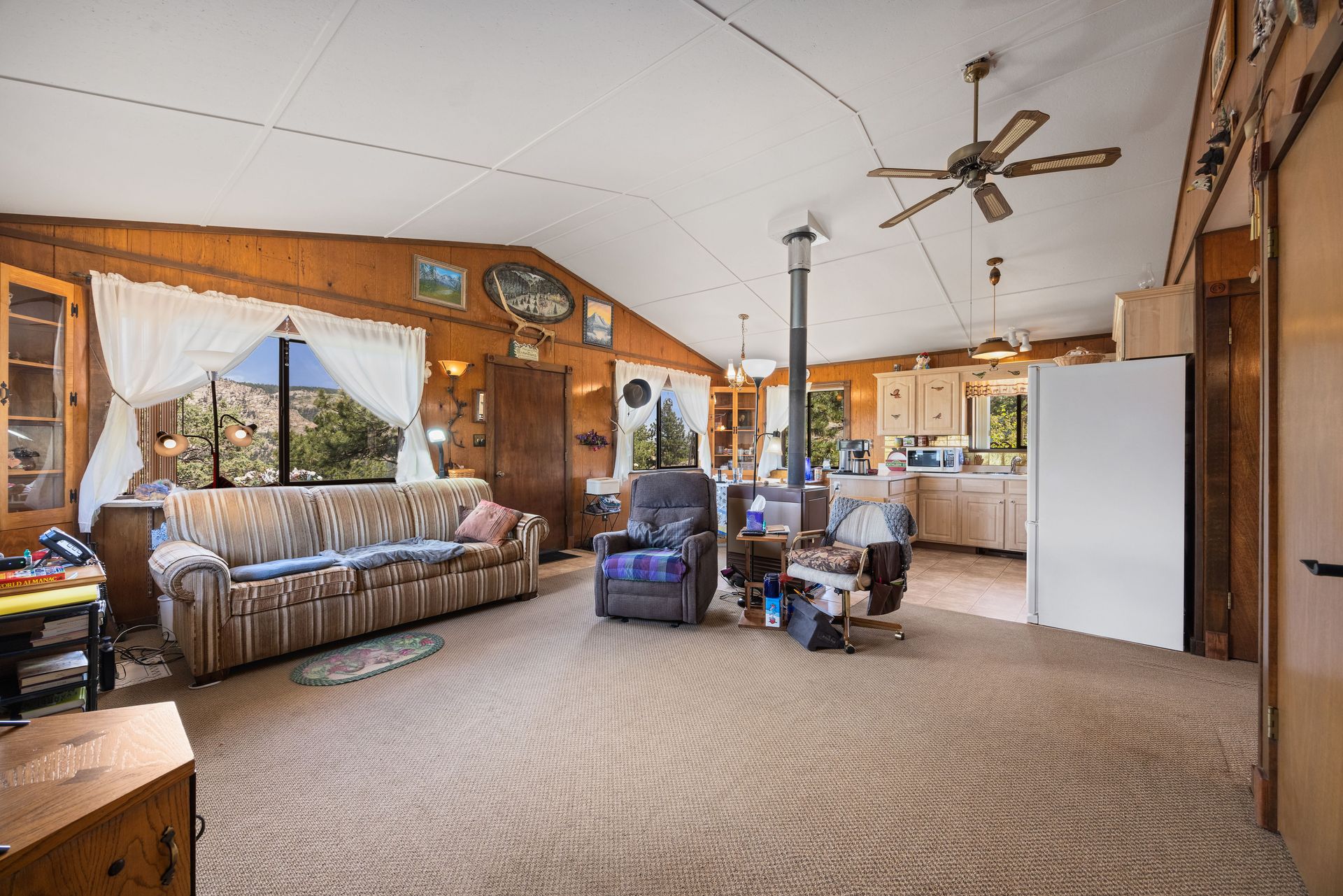 Perched high in the majestic Rocky Mountains, 760 Palisade Mountain Drive offers breathtaking views of Longs Peak, Storm Mountain, and the sweeping western horizon of Rocky Mountain National Park. Affectionately known as The Sun House, this cozy mountain cabin is perfect as a weekend getaway or a full-time residence. Set on a rare double lot totaling just over an acre, the property welcomes horses, ride down to the community lake, where you can enjoy quiet afternoons fishing or picnicking. A large, flat grassy area is ideal for yard games, gatherings, or parking. The land gently rolls into a wildflower-filled meadow with unique rock outcroppings. The cabin sits above it all, surrounded on 3 sides by a wrap-around deck designed to chase the sun. The views of the surrounding peaks and wildlife, and the sounds of hummingbirds in flight, create an immersive mountain experience. Inside, the warm and inviting interior features rustic pine plank walls and vaulted ceilings that create a sense of spaciousness and light. The open-concept living and dining area flows seamlessly into a functional kitchen, all centered around a wood-burning stove that radiates warmth on snowy winter nights. Two comfortable bedrooms and a full bath complete the single-level layout, providing an efficient living space. Ample storage is provided in the generous crawl space, tool shed/workshop, and woodshed. Three separate driveways offer convenient access and plenty of parking. Deep, good producing well and oversized septic system. The county allows for an additional dwelling-offering an incredible opportunity to live in the existing home while building your dream mountain retreat. At nearly 7,000 feet above sea level, Cedar Springs Estates feels like a true mountain sanctuary-peaceful, private, and surrounded by nature-yet close enough to the Front Range for an easy commute when needed. Whether you're seeking a tranquil escape, an adventure basecamp, or a place to expand your vision, The Sun House is ready to welcome you home.