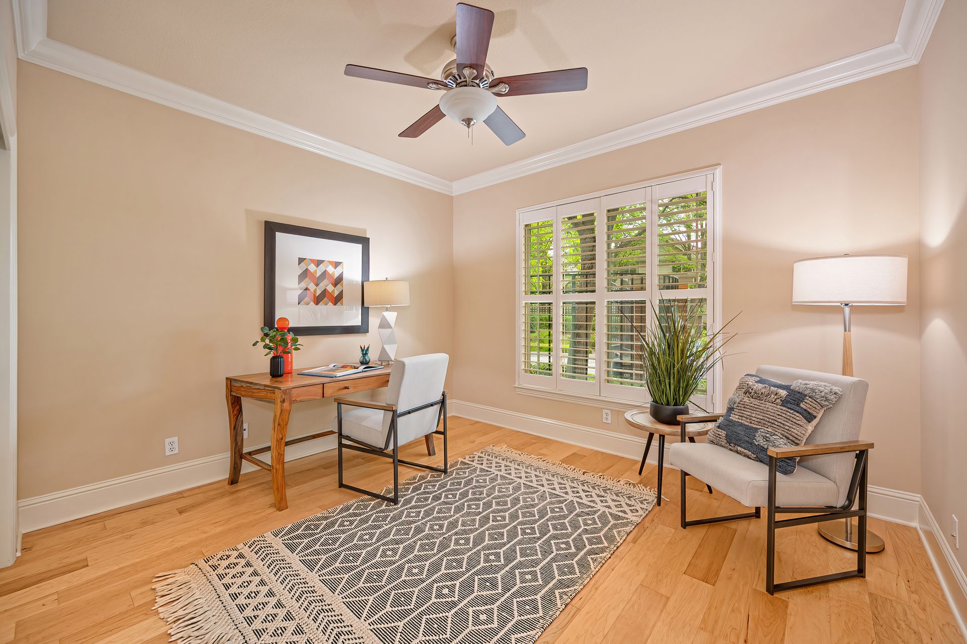 You’ll be amazed when you enter inside to this Riverlake home to find an updated and feature rich five bedroom three bath Marina Cove half plex with lakefront views and access. Note the freshly painted interior, high ceilings, and striking crown molding. The first floor features a spacious family room with a cozy fireplace, separate formal dining, kitchen, and full bath adjacent to a bedroom/office. Prep your meals in the u-shaped kitchen with a casual dining area, lots of counter workspace, loads of newly refinished cabinetry, and a high-quality gas stove with a pot filler faucet and GE Monogram fridge, oven, microwave and dishwasher. Serve your guests in the formal dining room complete with a built-in buffet for food service plus dinnerware display and storage. You’ll find mostly new hardwood in the family room, downstairs bedroom, and stairs plus the upstairs hallway along with newly installed carpeting in the four upstairs bedrooms, including the primary ensuite with its spa-like bath and a private balcony overlooking the grassy lawn below and serene lake view. The remaining three large bedrooms and laundry equipped with a deep sink complete the upstairs. Not to be forgotten is the two-car garage. Don’t miss this move-in ready home on River Lake! It’s a jewel.