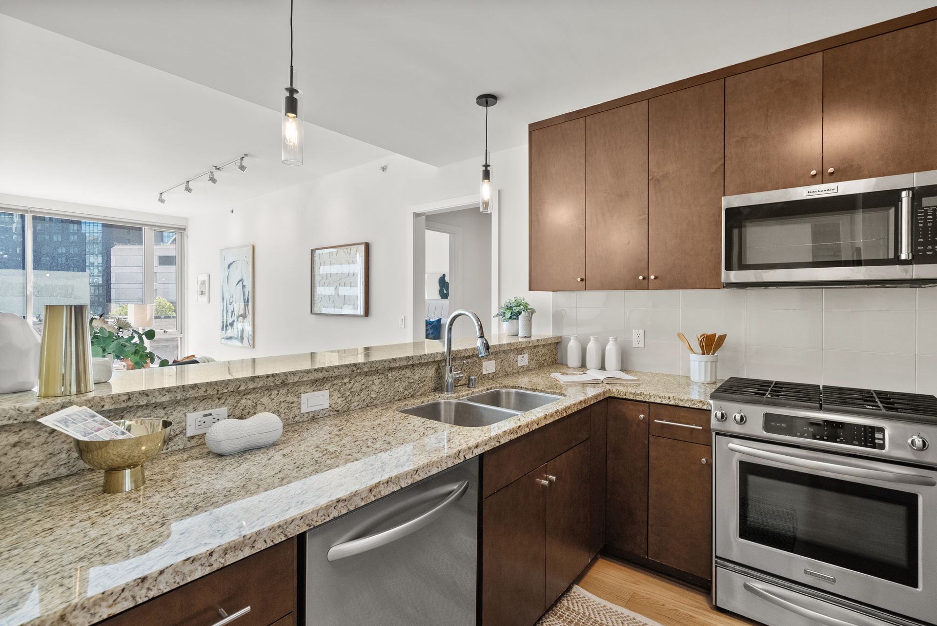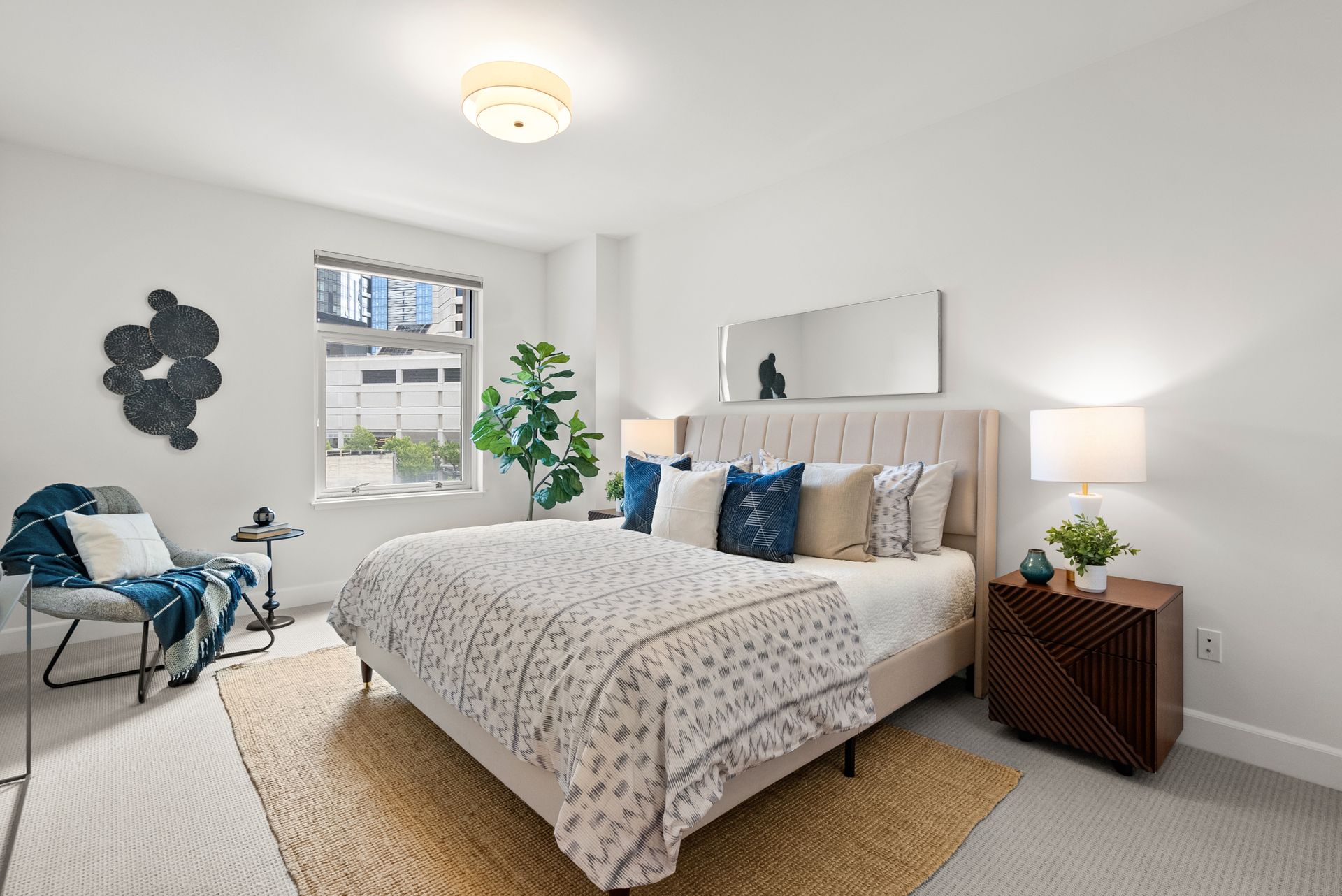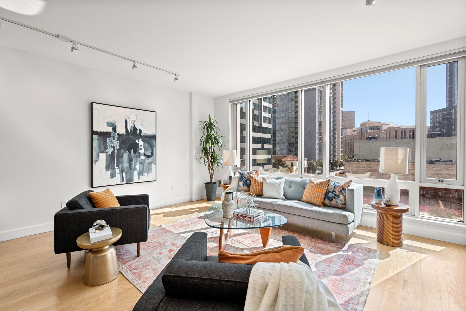 Chic and spacious 1BR/1BA condo in the heart of San Francisco’s Van Ness Corridor. This modern home features floor-to-ceiling windows, high ceilings, and beautiful hardwood floors. The open layout includes a bright living area with city outlooks and a sleek open kitchen with gas range, pantry, and breakfast bar flowing into a large dining space—ideal for entertaining. The bedroom offers a walk-in closet, along with additional in-unit closets. The bathroom boasts a clean, modern design with a shower over an oversized soaking tub. Enjoy the convenience of in-unit laundry, two extra storage units (one on the same floor), and deeded parking. Pet-friendly building includes concierge, fitness center, and rooftop deck. Located steps from Hayes Valley dining, shops, and cultural landmarks like SF Jazz Center and the Ballet, with easy access to public transportation. A stylish urban retreat in one of the city’s most dynamic neighborhoods.